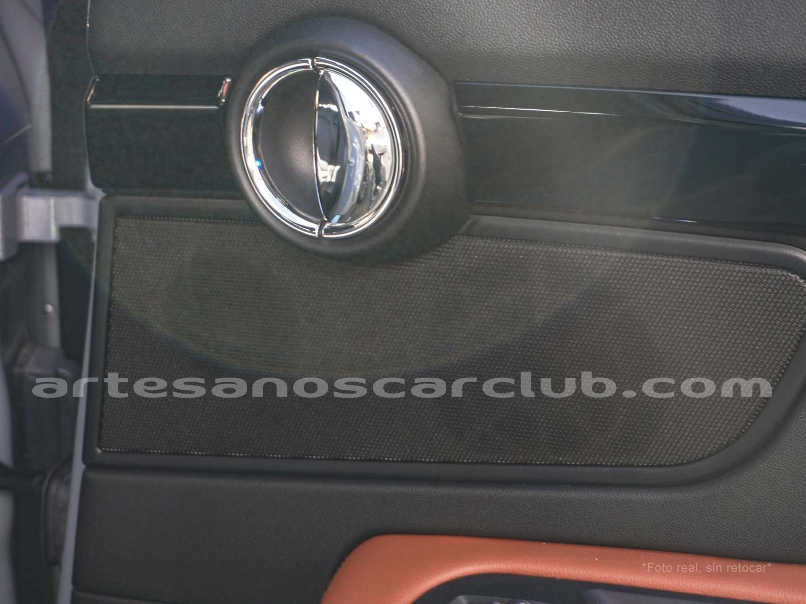 Anillos cromados en manija interior de puertas y parlantes.
