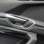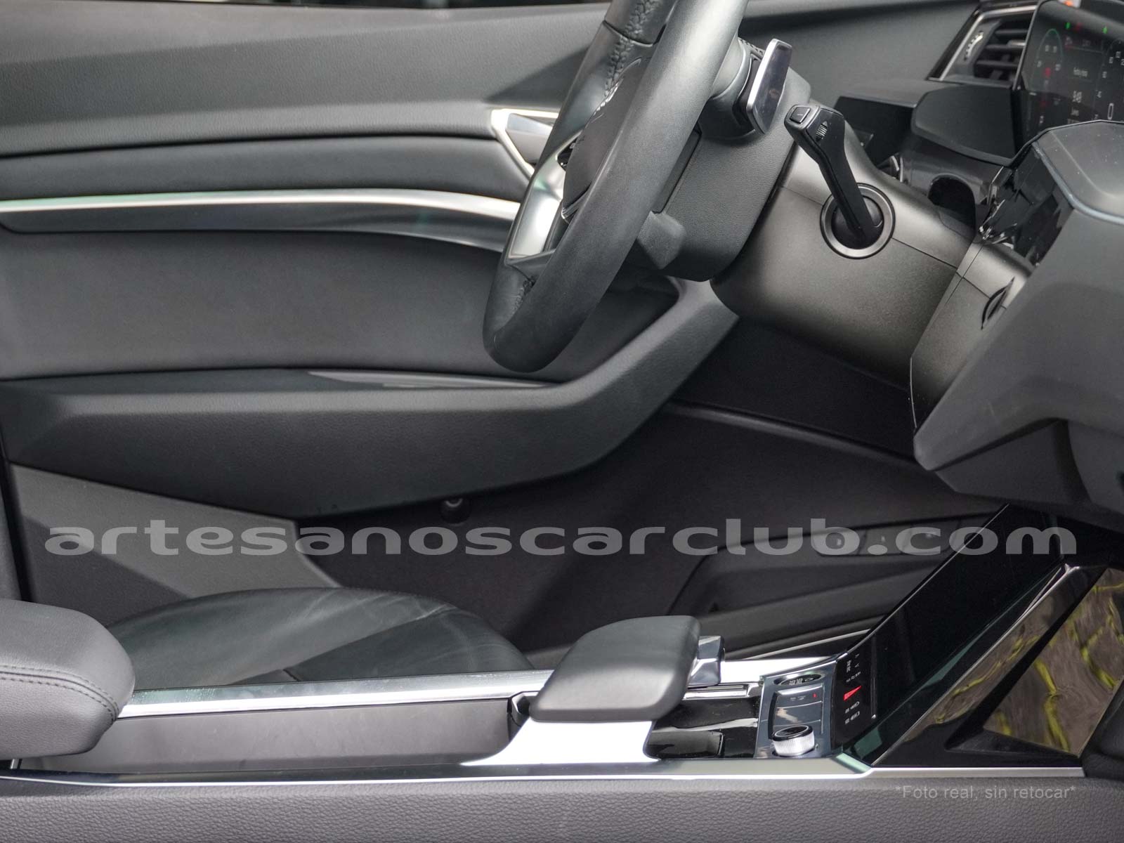 Decoraciones de cintura media de interior de cabina en piel negra con moldura de aluminio satinado.