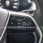 Volante de 4 radios multifunción en piel negra con detalles en aluminio y piano negro.