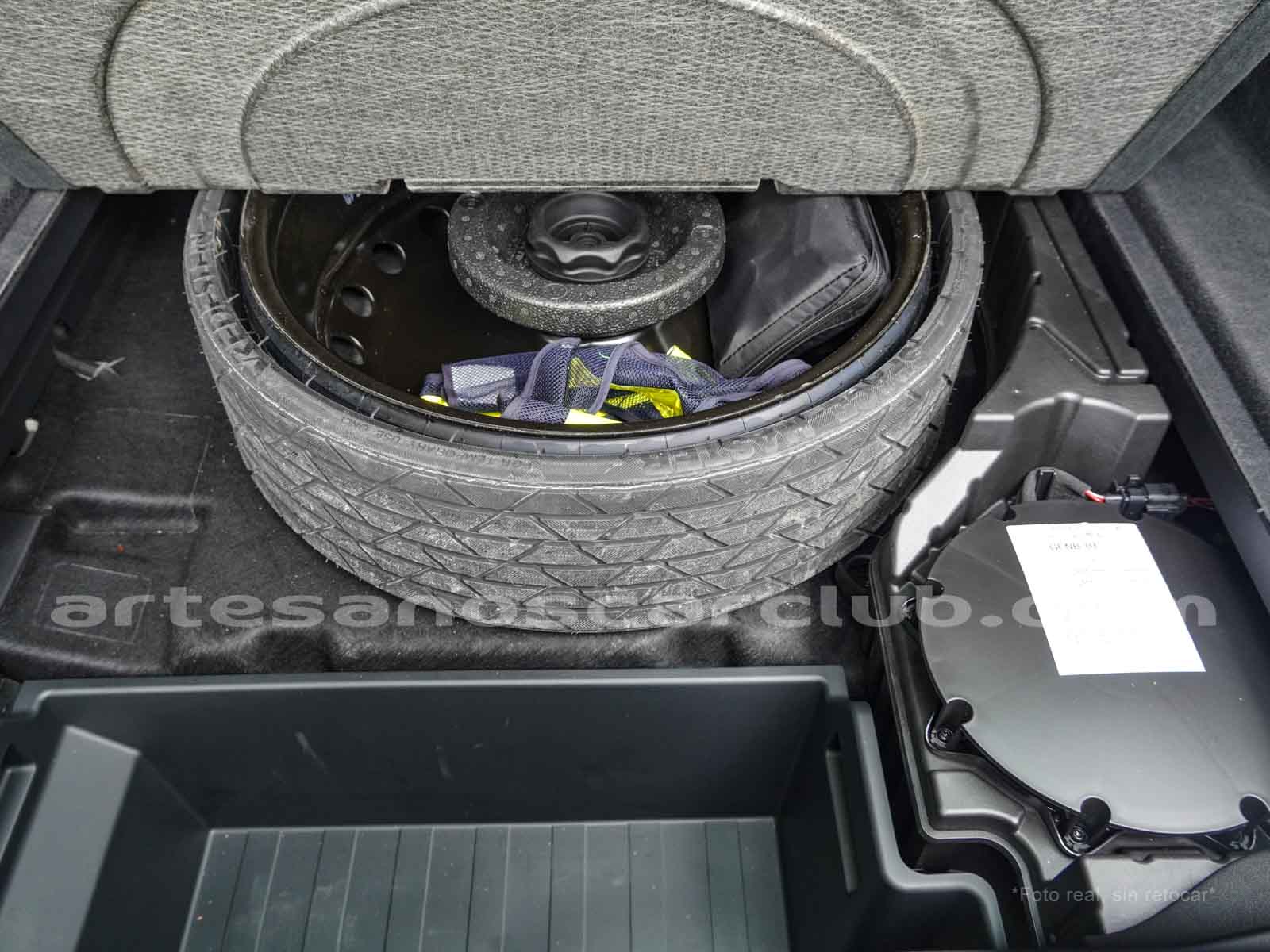 Rueda de repuesto oculta bajo piso interno baúl.