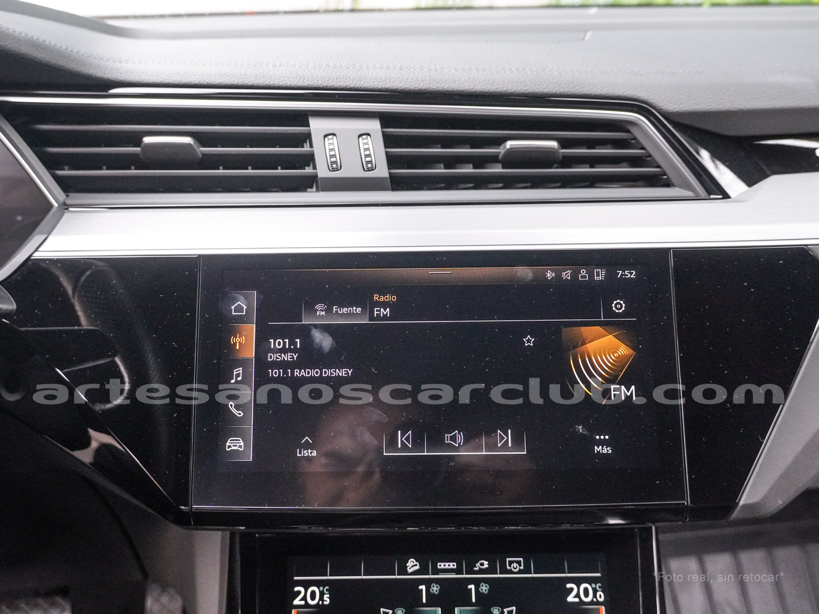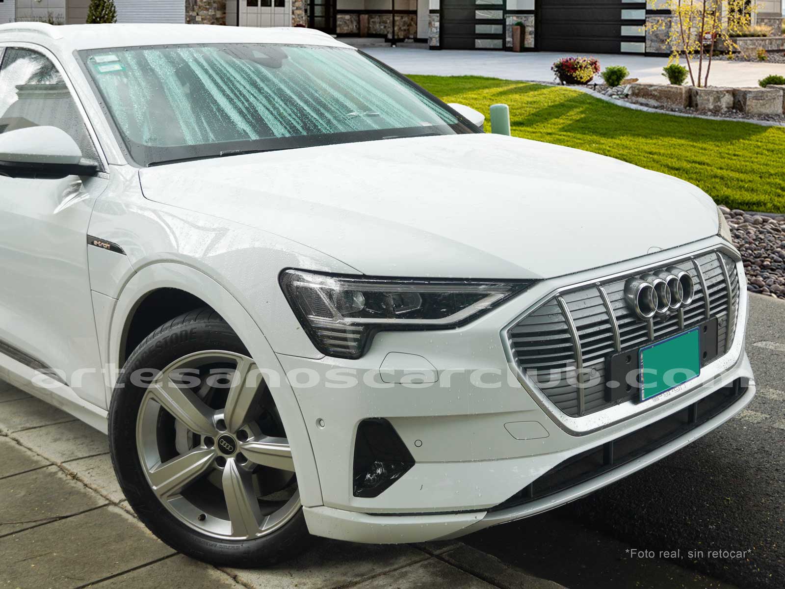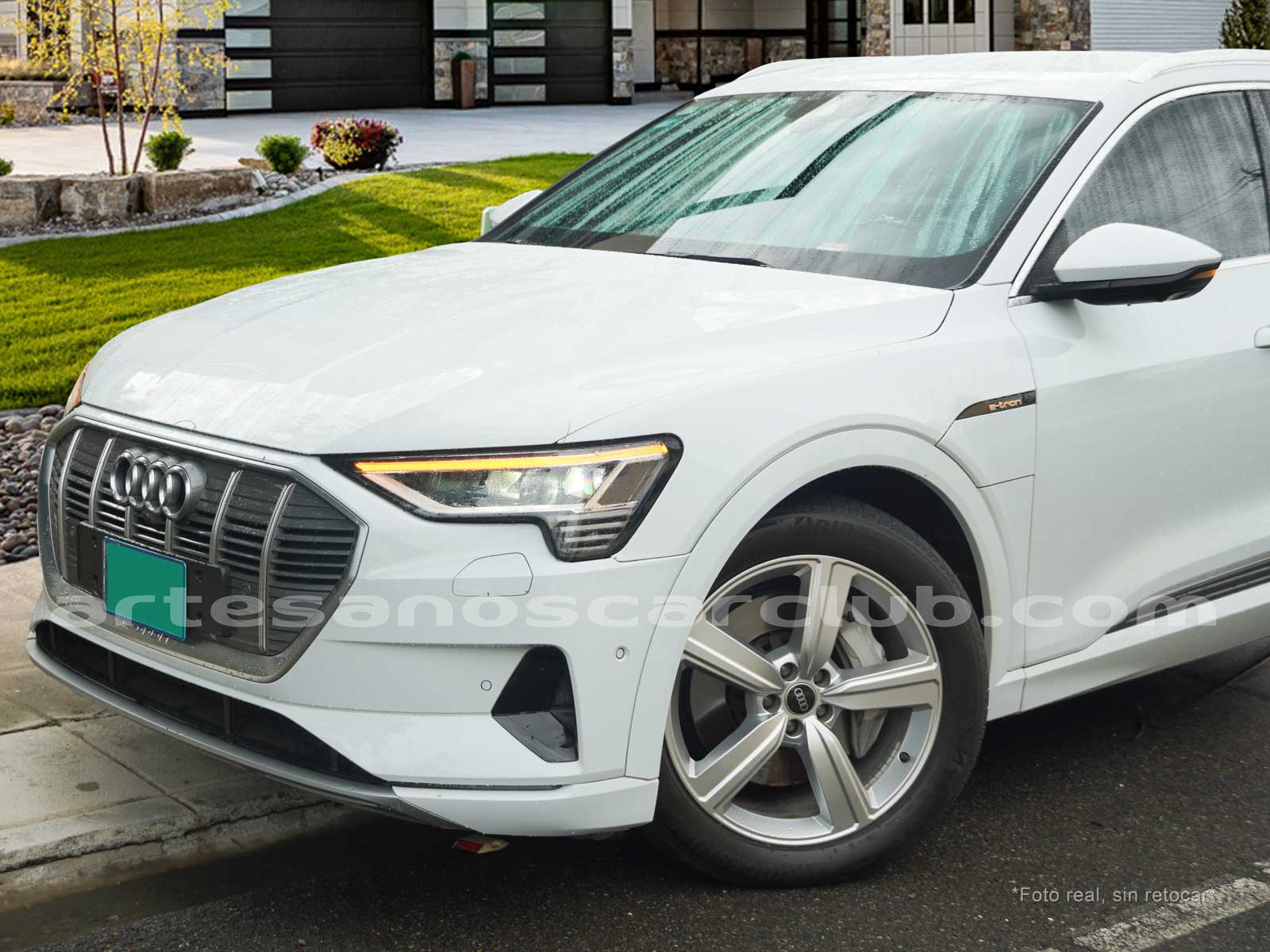 • Emblema E-Tron en guardabarros delanteros incrustados en tapas de recarga de batería y parrilla frontal.