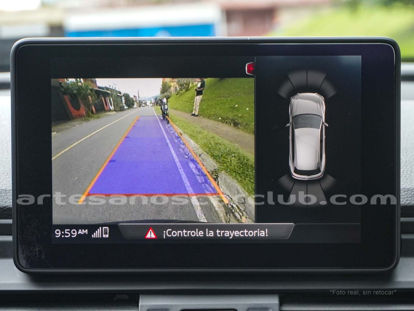 Cámara para reversa con guías de dirección con sensores de parqueo delanteros y traseros.
