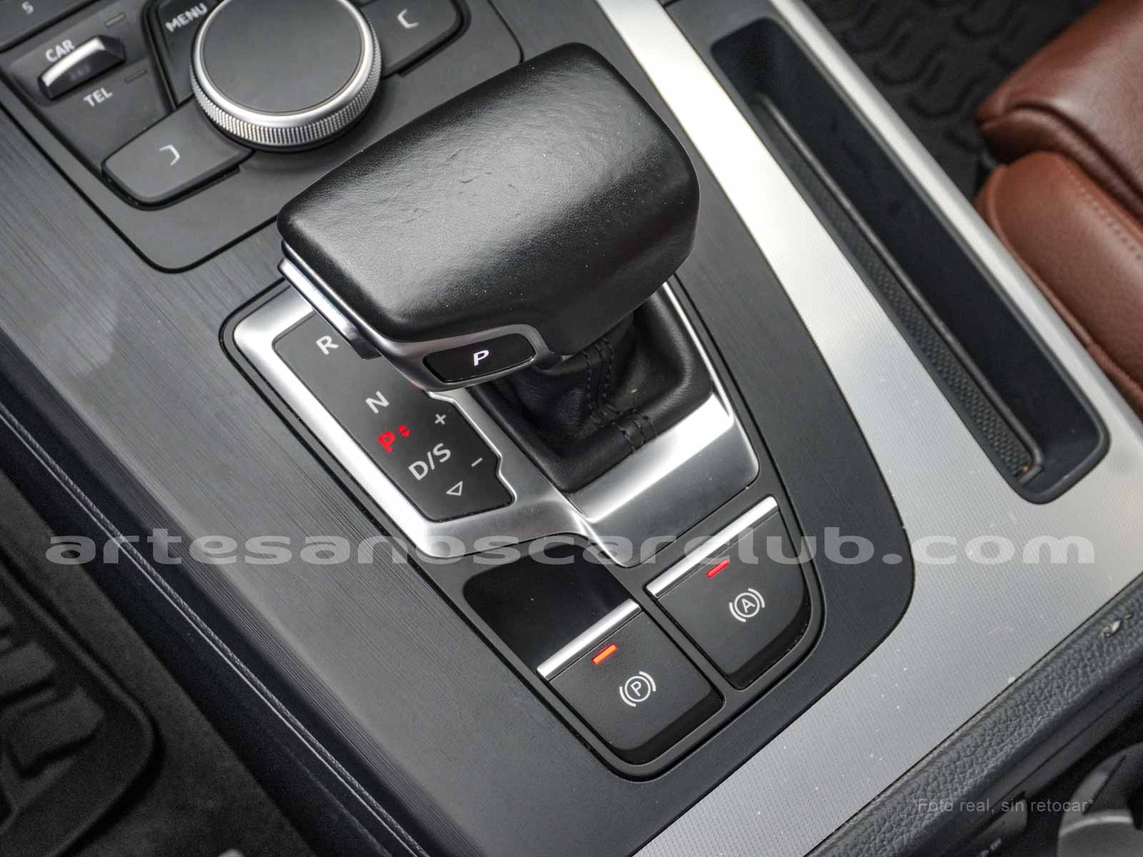 Palanca para cambios en piel y detalles en aluminio satinado.