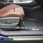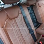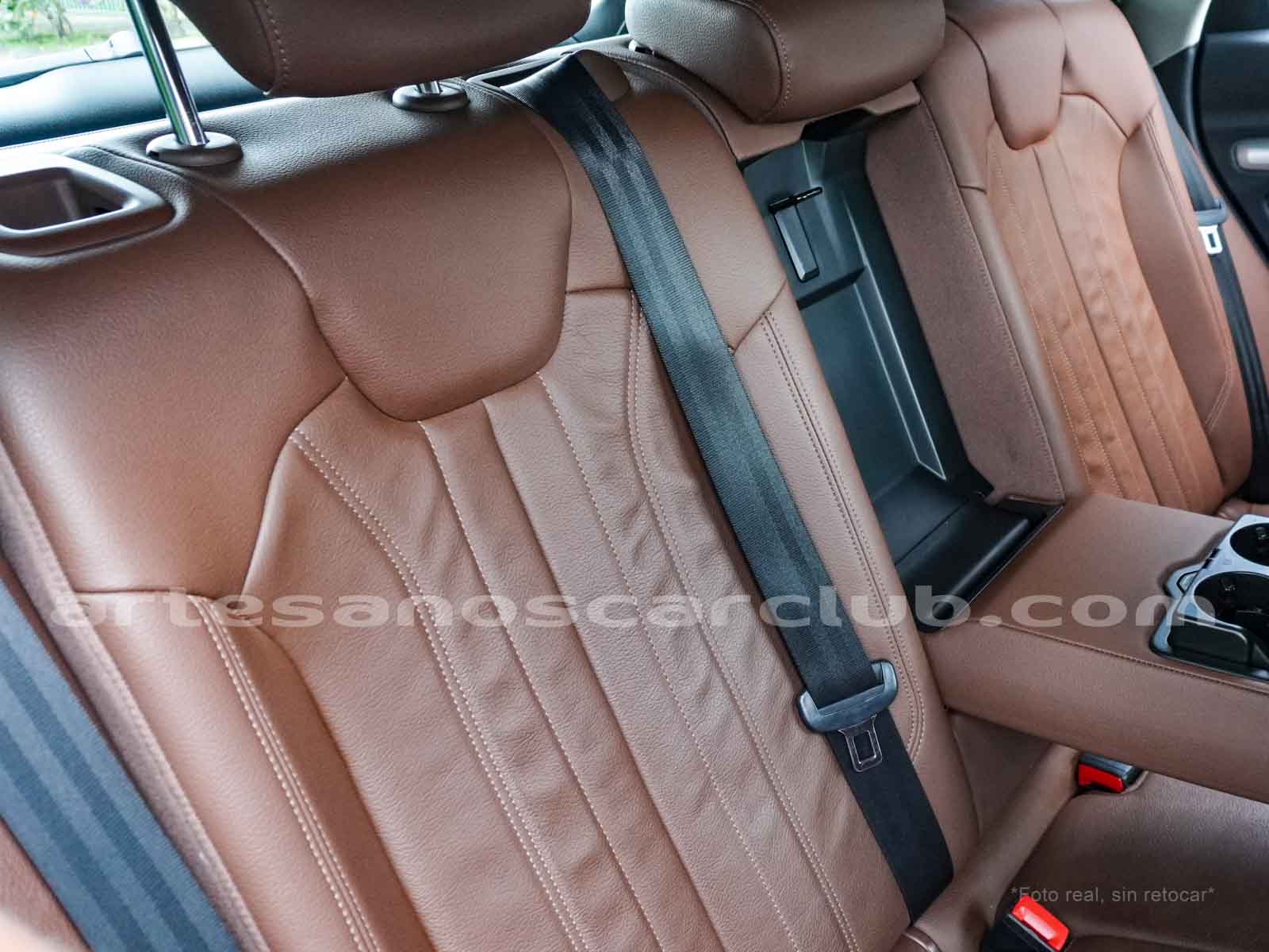 Sillas en piel marrón «Cognac» con negro en otras áreas con costuras de alto contraste dobles del mismo color con extensores de muslos.