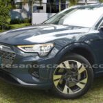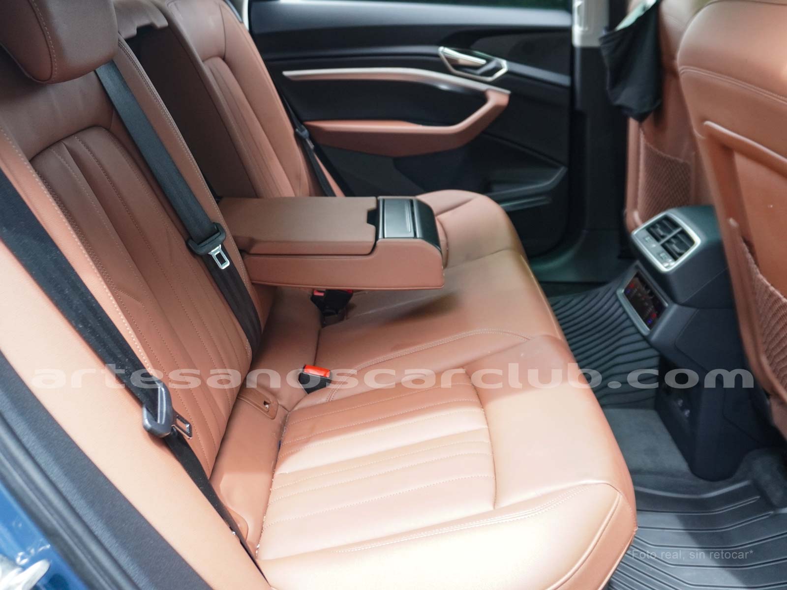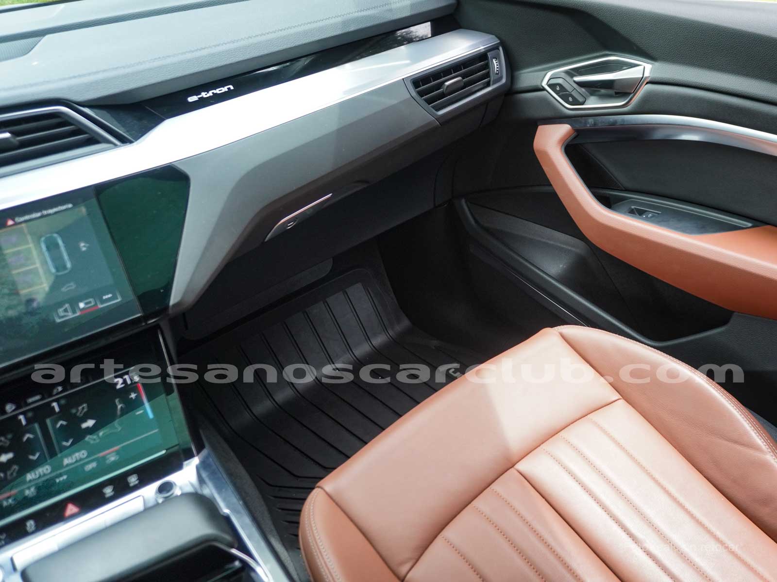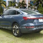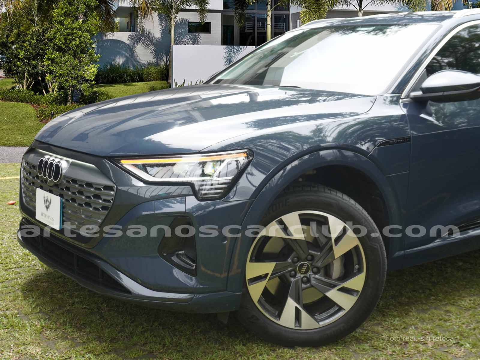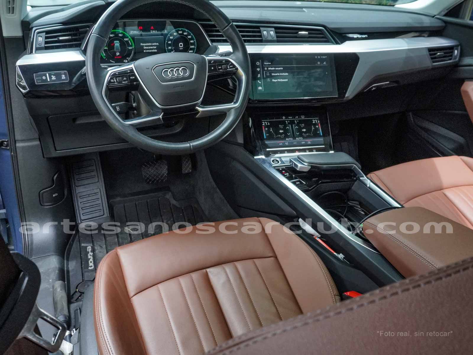 Emblema E-Tron en guardabarros delanteros integrados en tapas de recarga de batería y parrilla frontal.