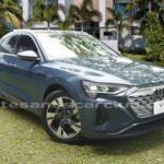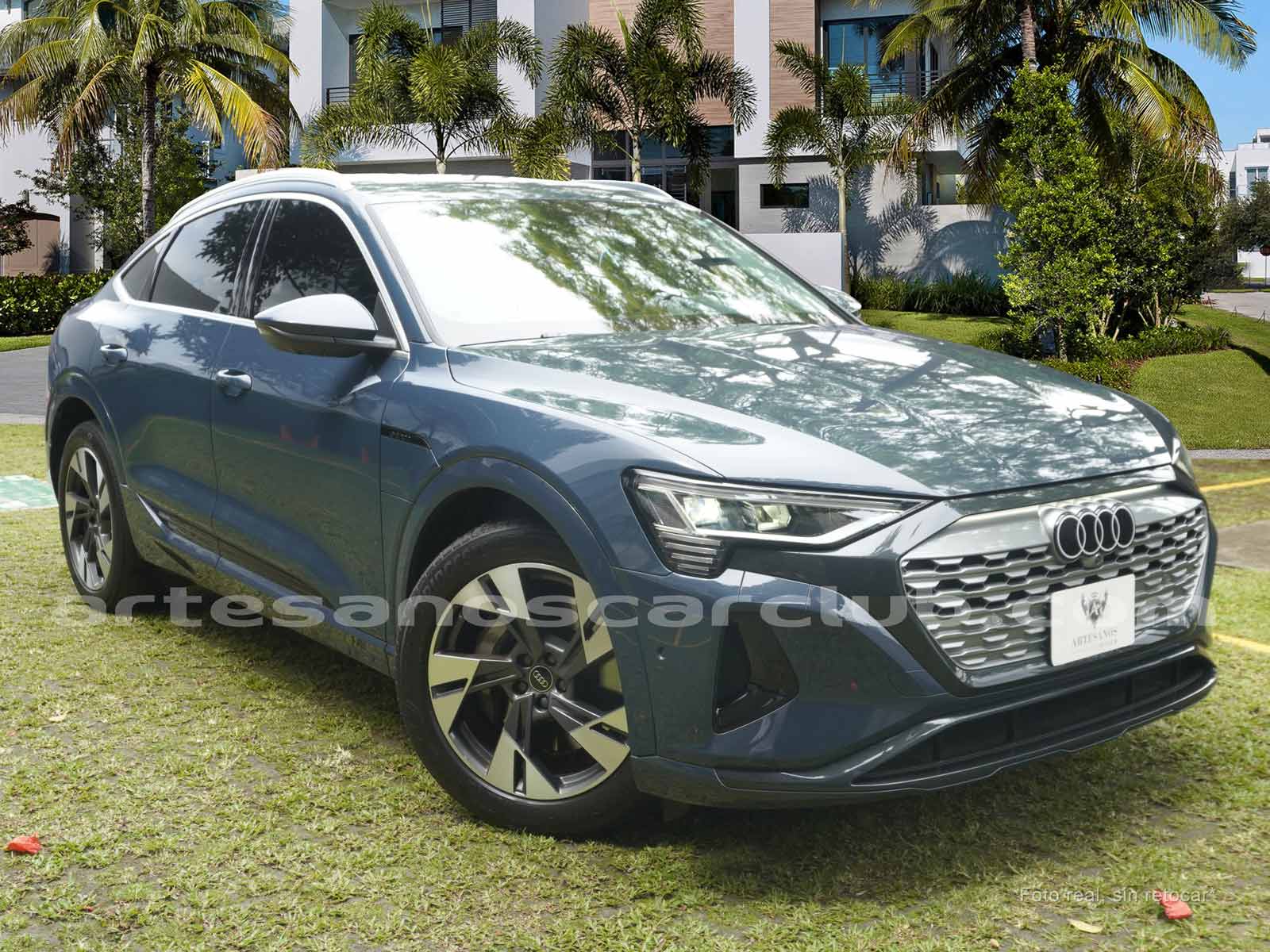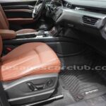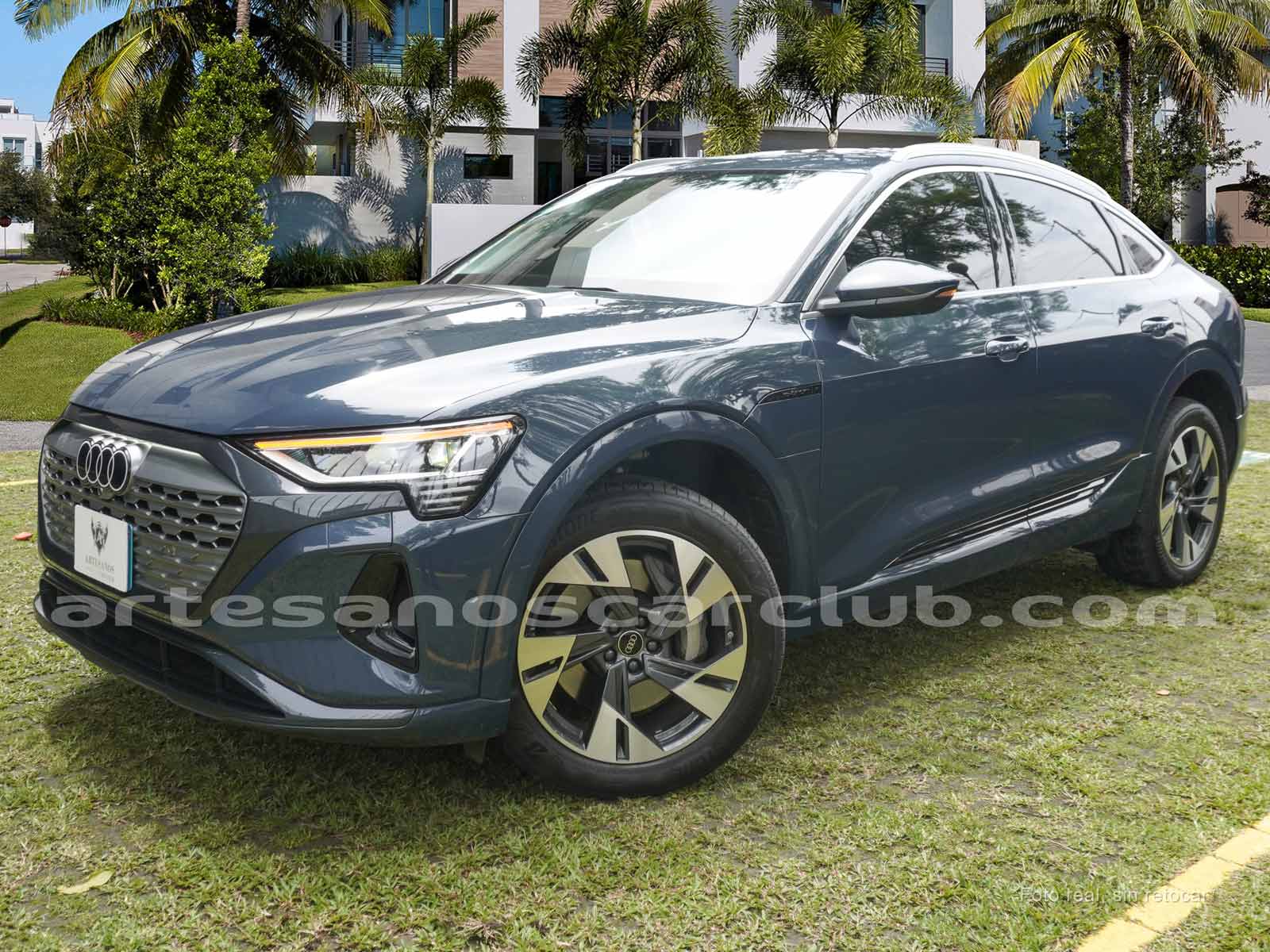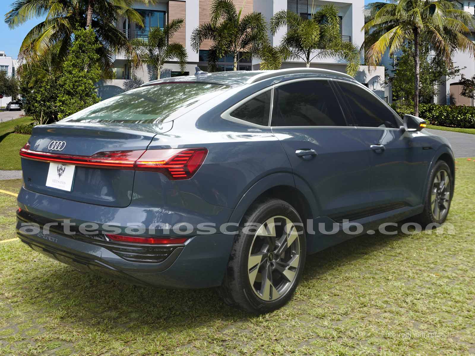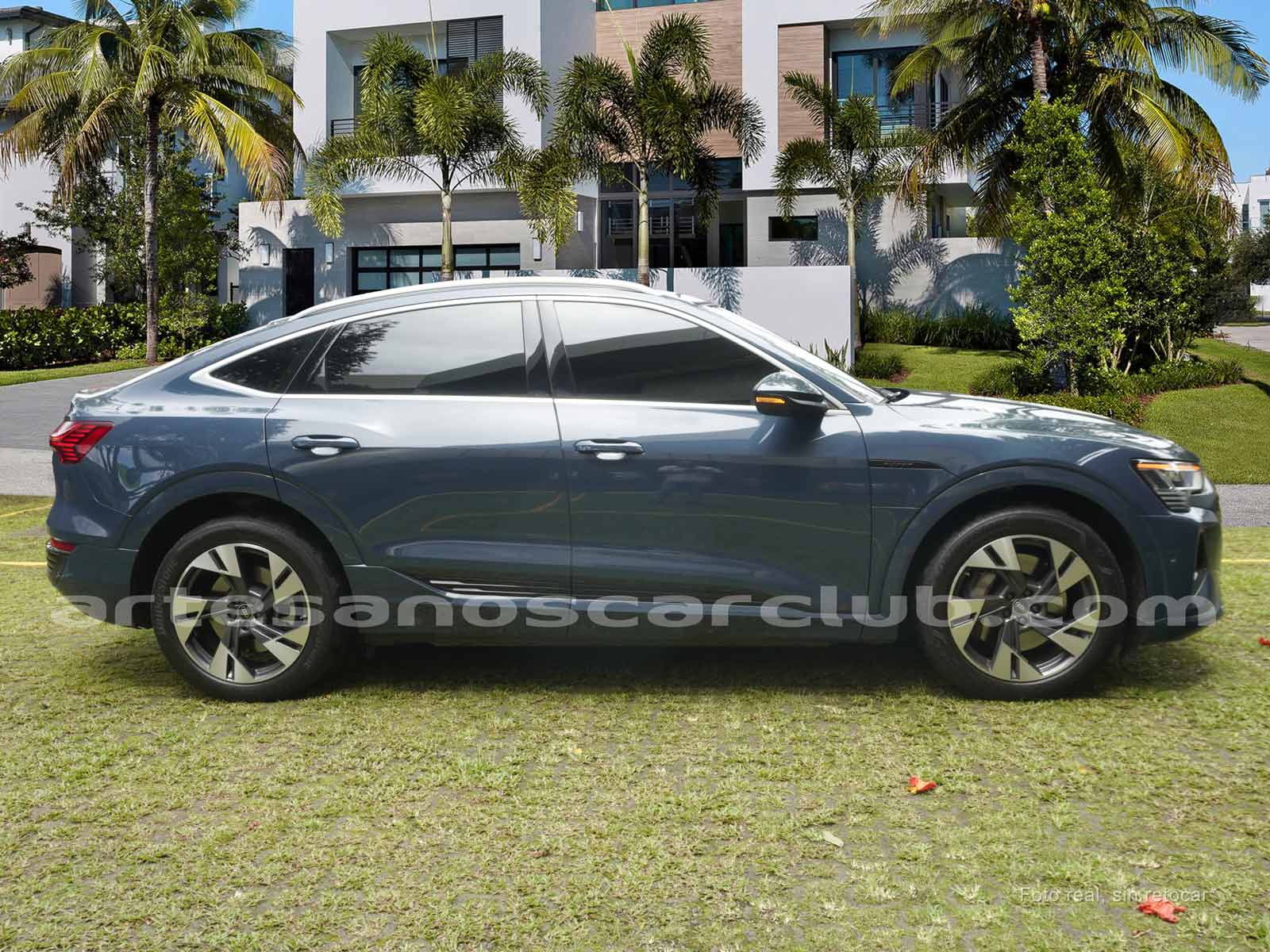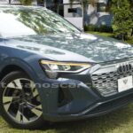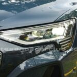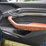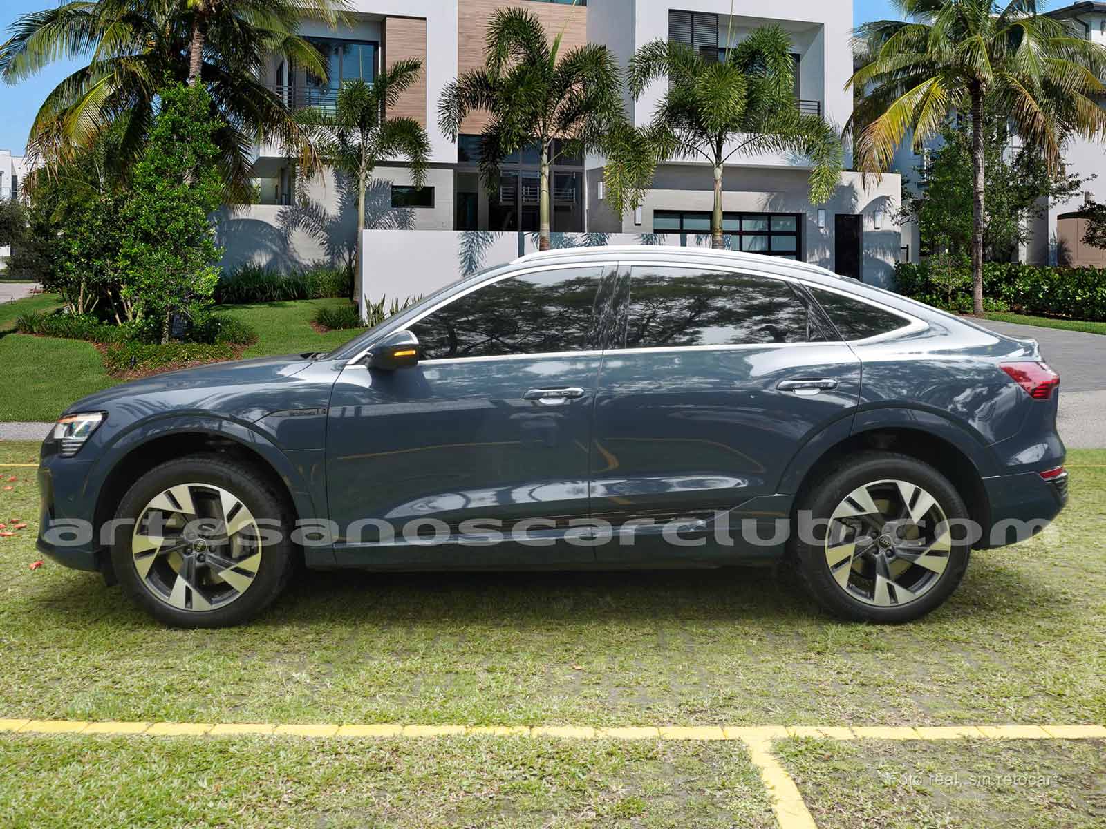 Emblema E-Tron en guardabarros delanteros integrados en tapas de recarga de batería y parrilla frontal.