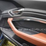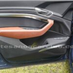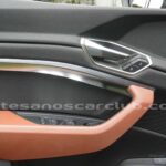 Decoraciones de cintura media de interior de cabina en negro y texturizado en piel marrón «Okapi Brown», con moldura de aluminio satinada iluminada.