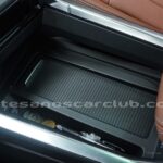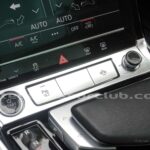 Teclados de mandos en consola central en aluminio satinado y piano negro brillante.
