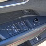 Decoraciones de cintura media de interior de cabina en piel negra con texturizado negro y moldura de aluminio satinado.
