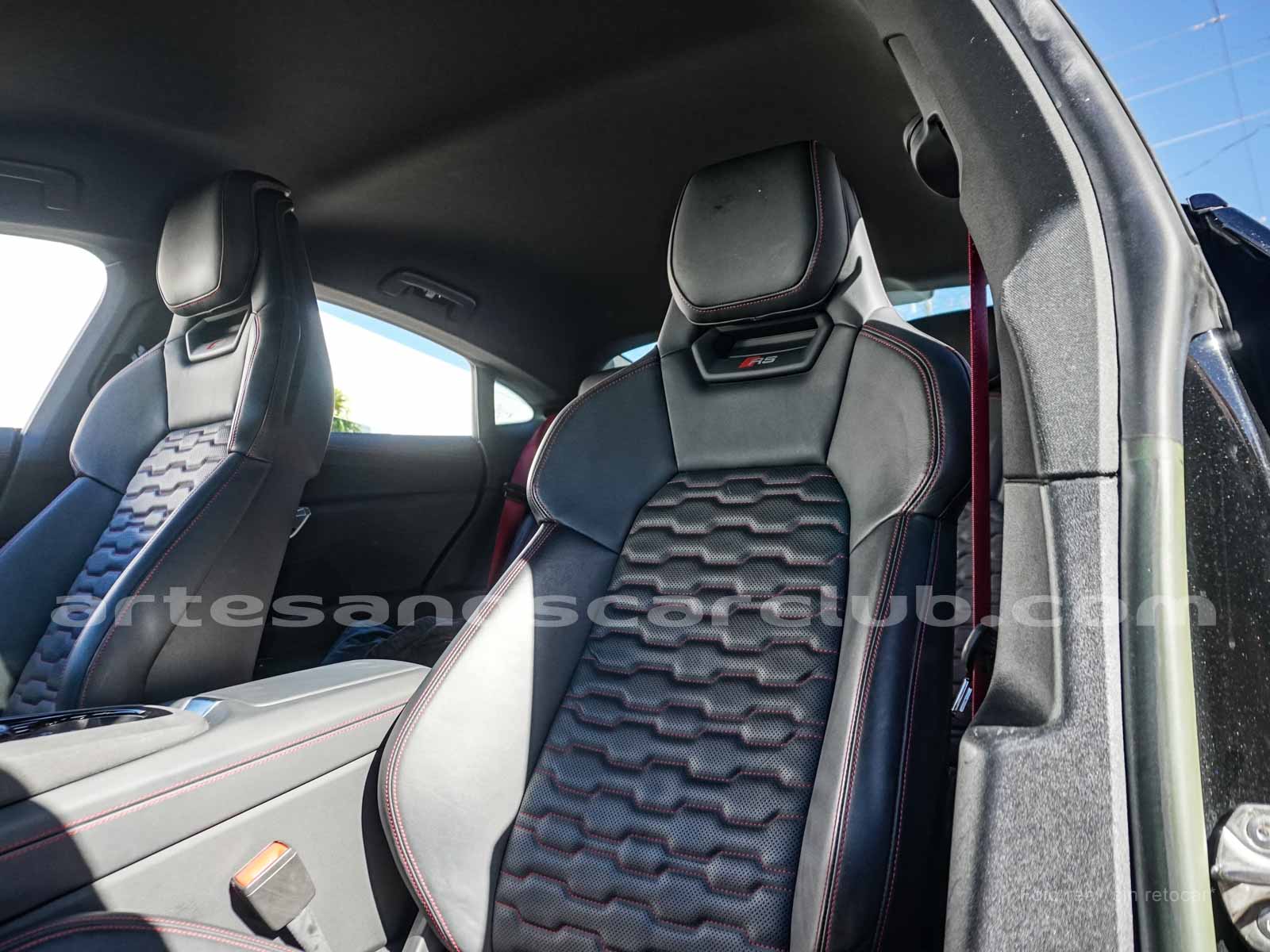 Sillas deportivas en combinación de cuero perforado con diseño de panal, colores de equipamiento interior – tapizado asientos: Audi Exclusive, tablero instrumentos: Negro-Negro, moqueta: Negro, revestimiento interior del techo: color negro.