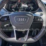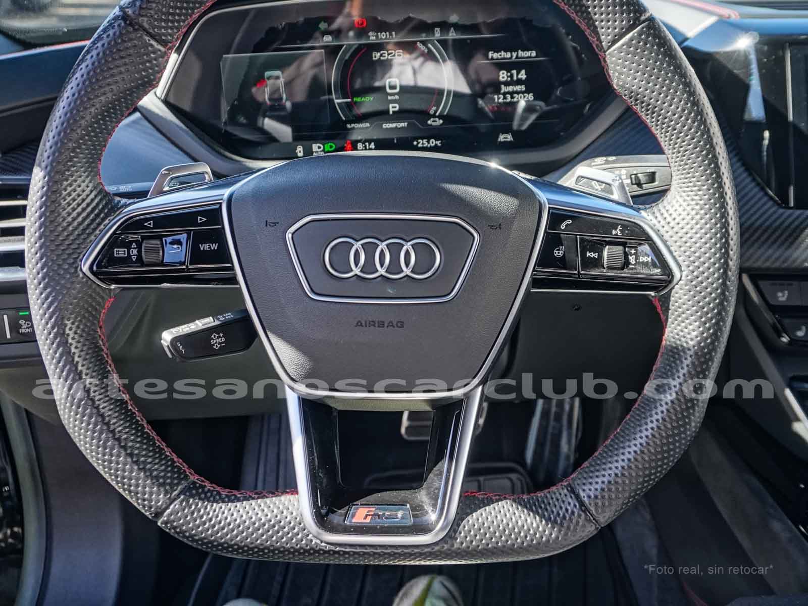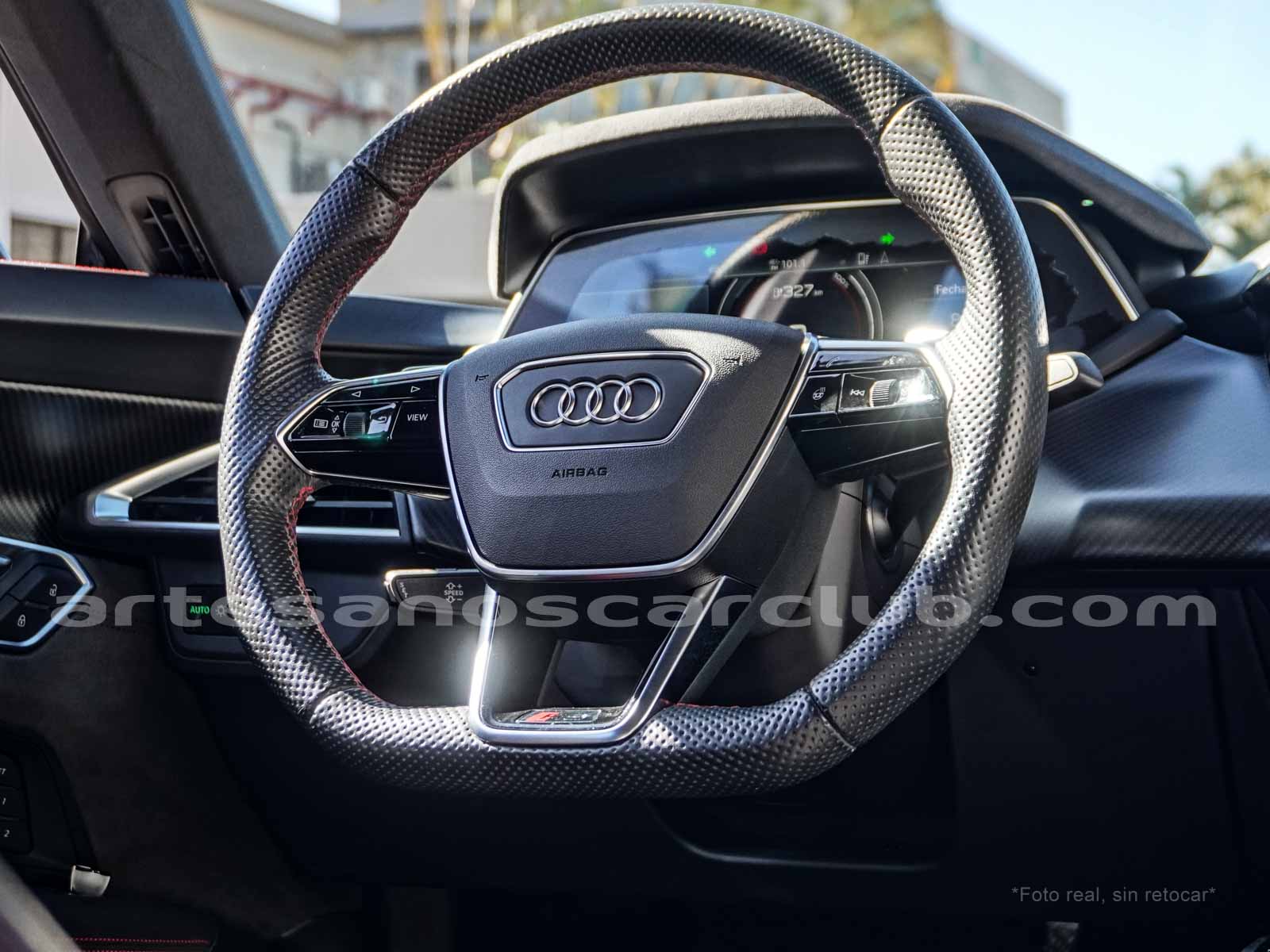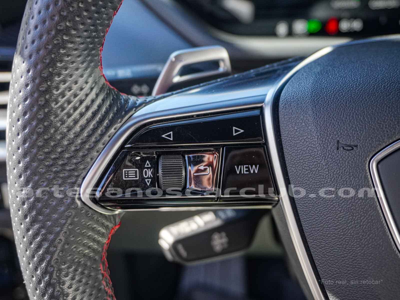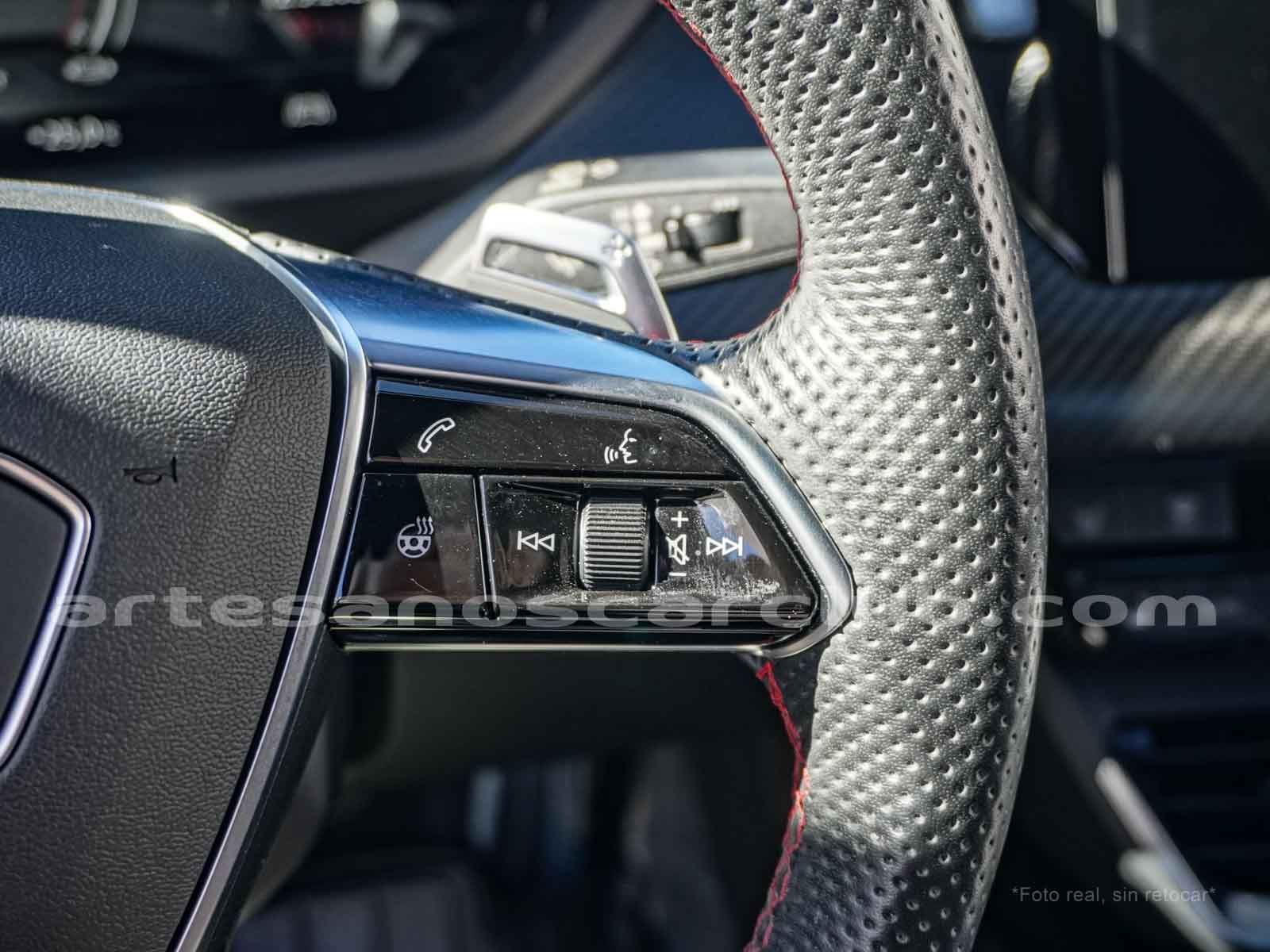 Volante en cuero negro con costura de alto contraste rojas, Audi exclusive.