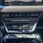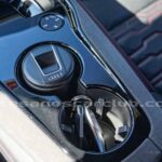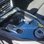 Teclados de mandos en consola central en aluminio satinado y piano negro brillante.
