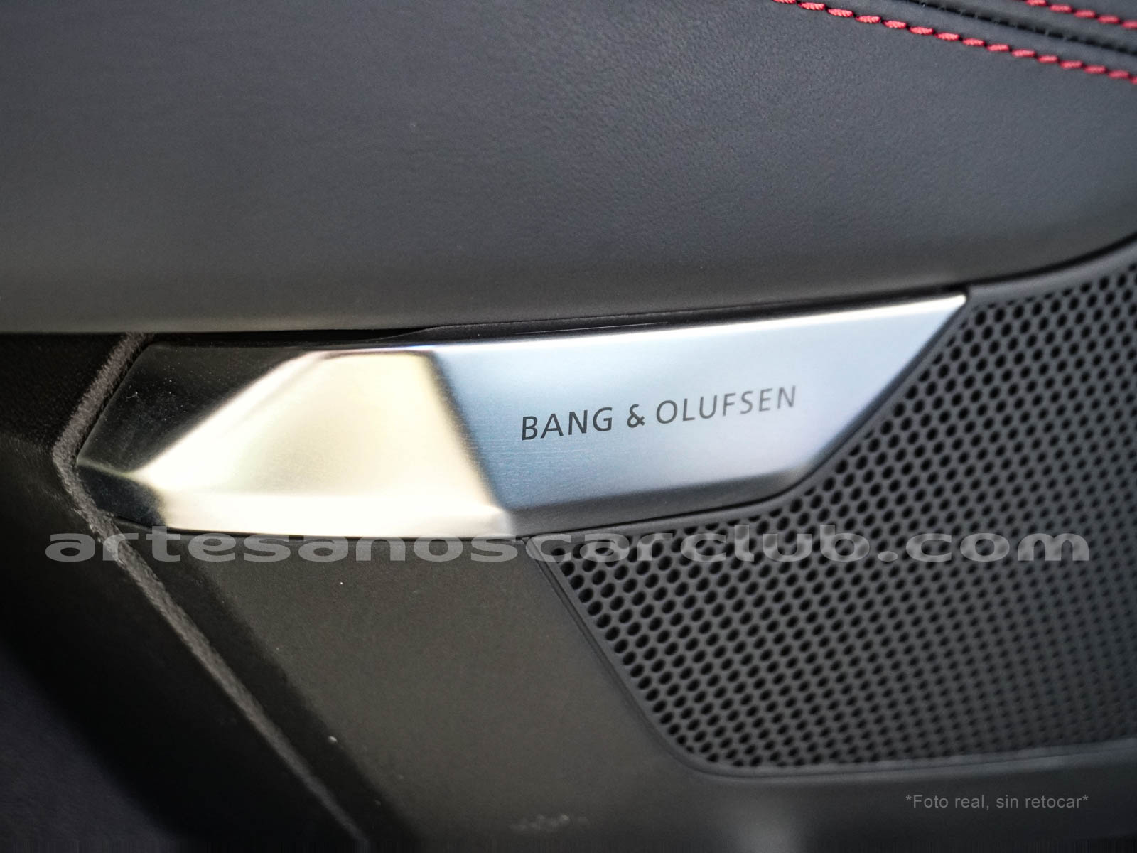 Moldura decorativa en aluminio satinado con inscripción BANG & OLUFSEN en parlantes.