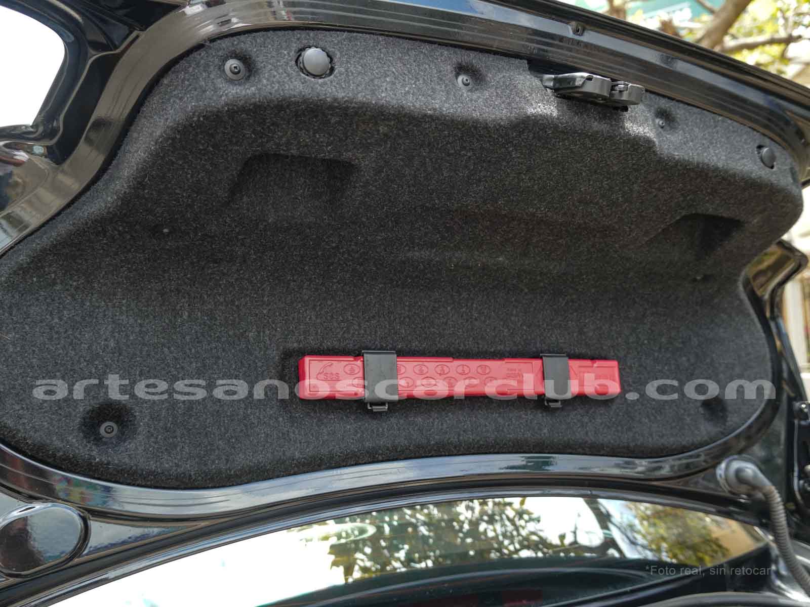 Antena de radio exterior tipo espiga en guardabarro trasero izquierdo.