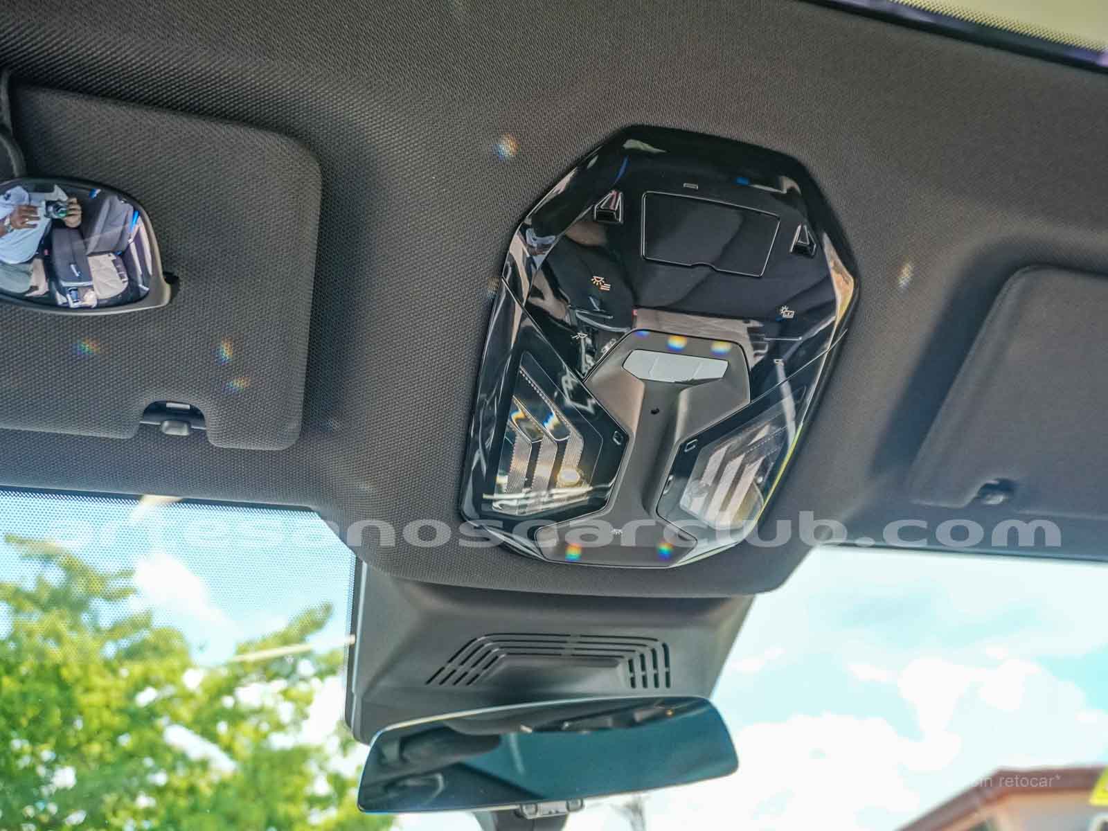 • Luces principales con tecnología lumínica «Led Laser Hexagonales» (BMW Laserlight código: 5AZ) con luz autoadaptable con un alcance de hasta 600 m en el modo de luz de carretera, con detalles de abrazaderas azules decorativas.