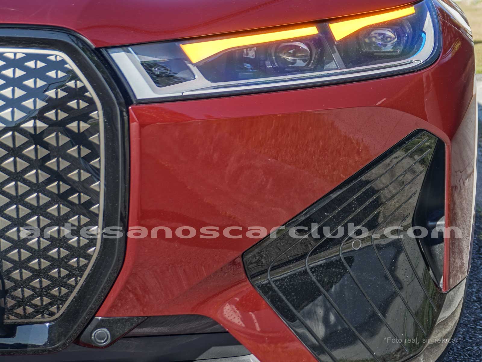 Luces principales con tecnología lumínica «Led Laser Hexagonales» (BMW Laserlight código: 5AZ) con luz autoadaptable con un alcance de hasta 600 m en el modo de luz de carretera, con detalles de abrazaderas azules decorativas.