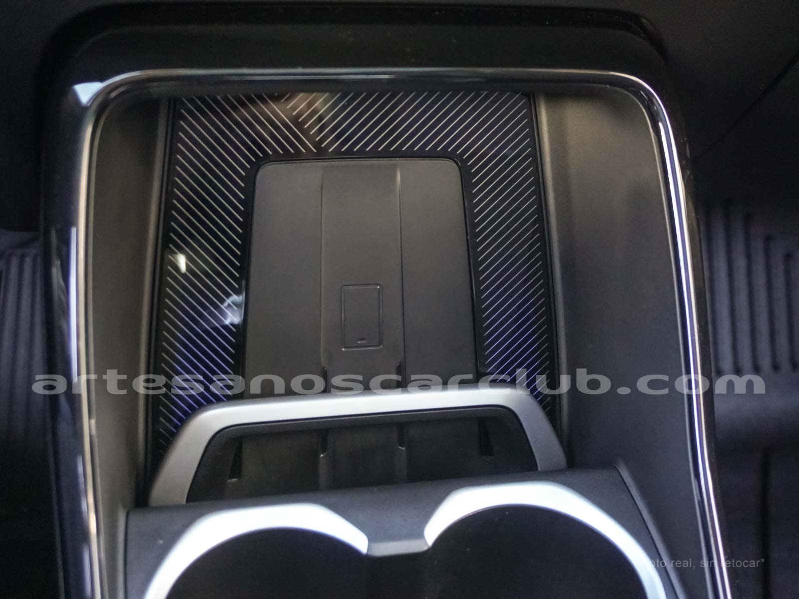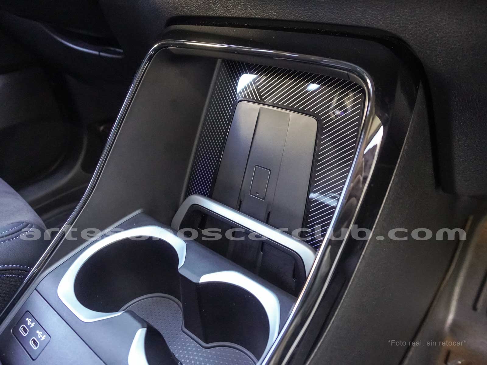 Cargador de teléfono inalámbrico en consola central.