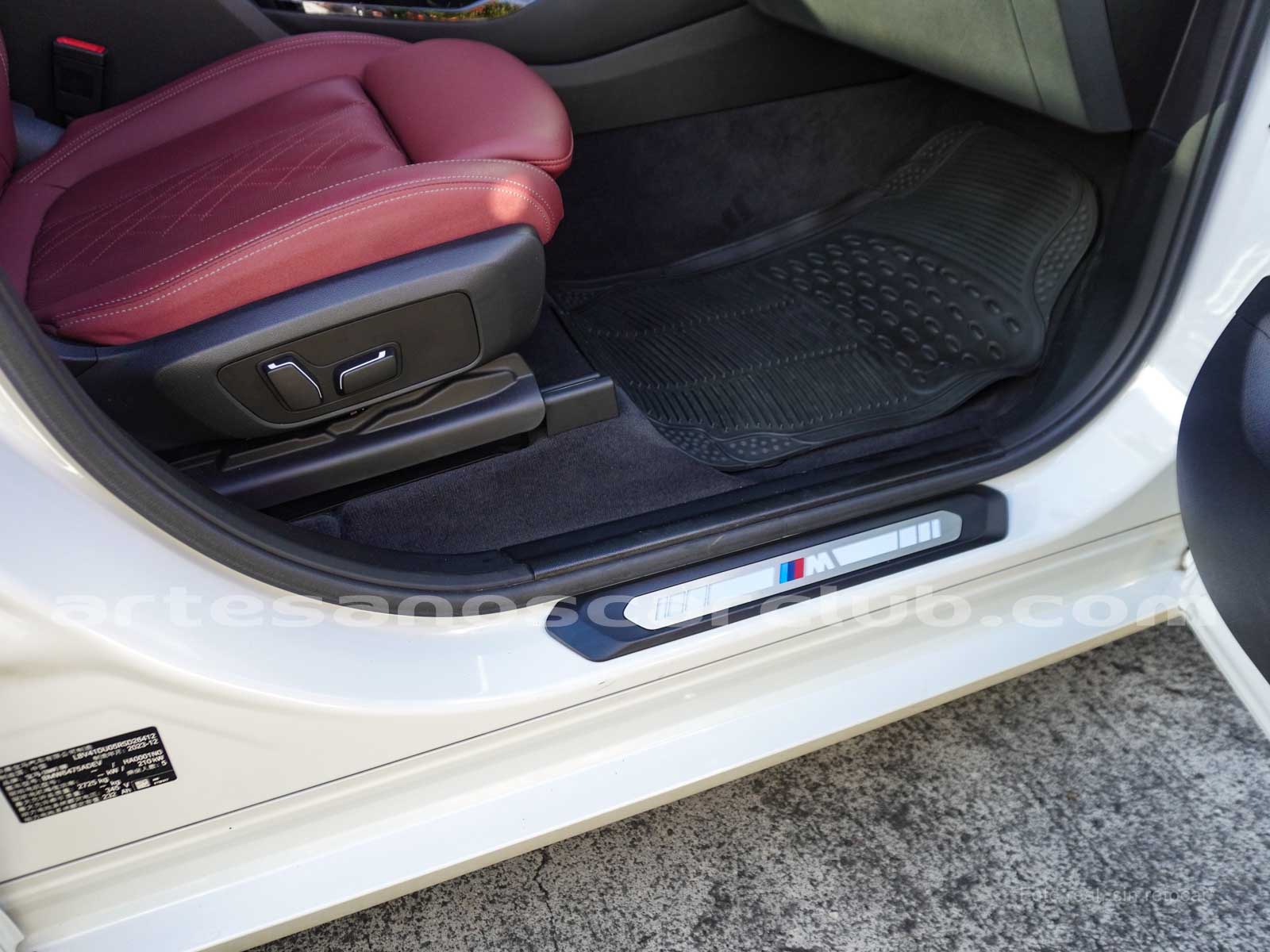 Molduras de ingreso a cabina en acero con inscripción «M» retroiluminadas.