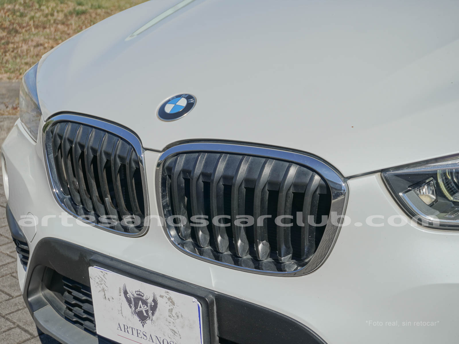 Parrilla frontal con marco cromado.