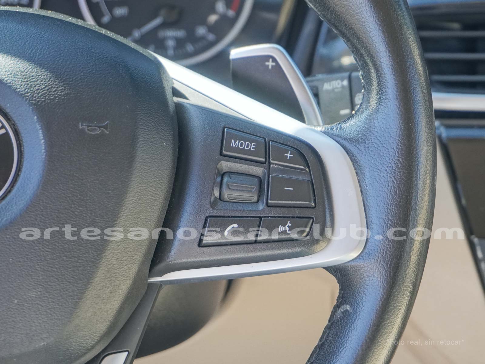 Volante multifunción de 3 radios y con piel negra WALKNAPPA con detalles en aluminio satinado.