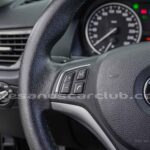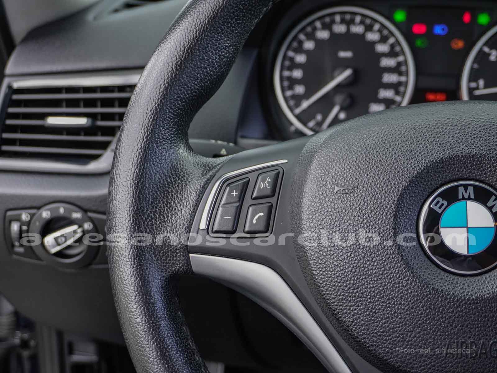 Volante de 3 radios multifunción en piel negra con detalles en aluminio.