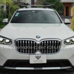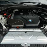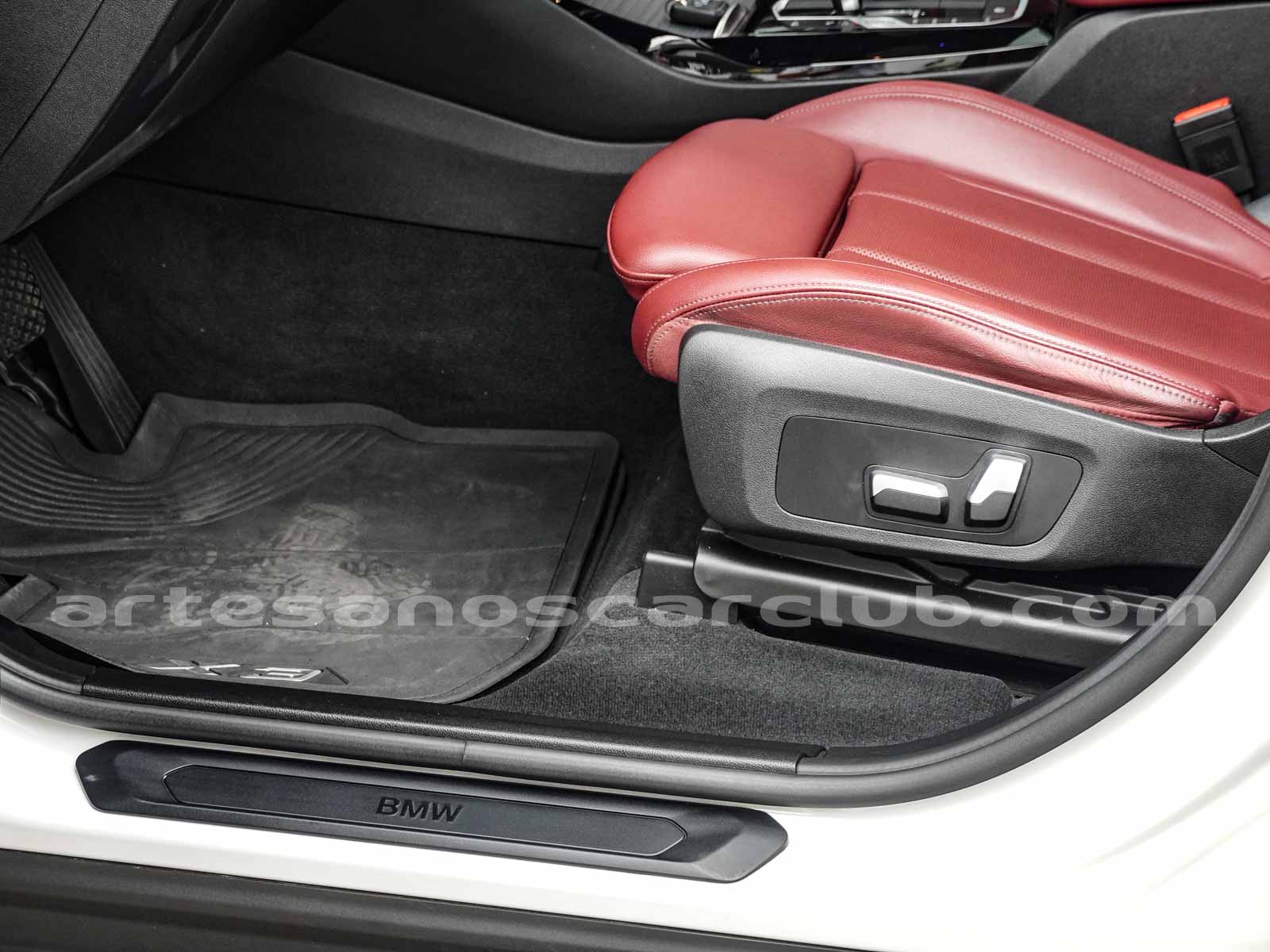 Molduras de ingreso a cabina en plástico negro con inscripción «BMW».