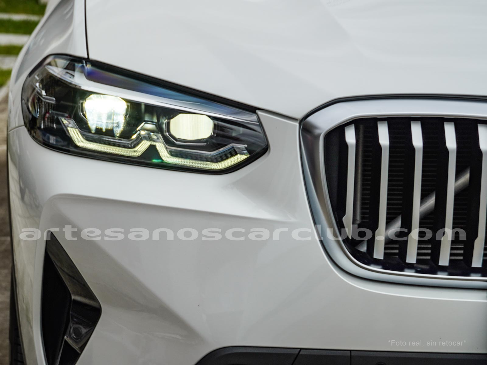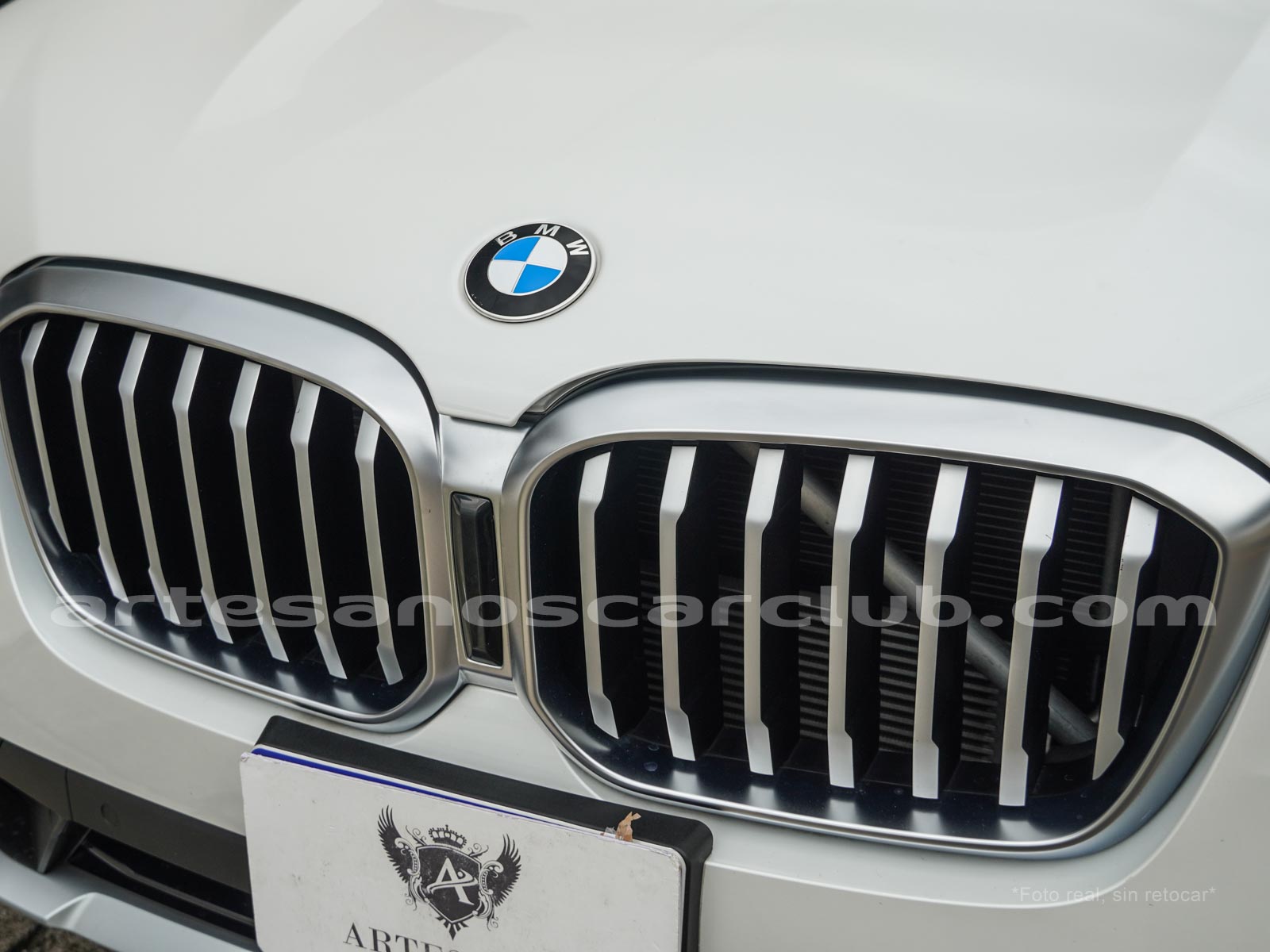 Parrilla frontal con 8 líneas verticales exclusivas con detalles en aluminio satinado y marco en aluminio satinado.