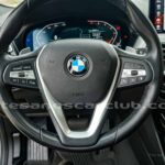 Volante de 4 radios multifunción en piel negra con detalles en aluminio y botonería negra.