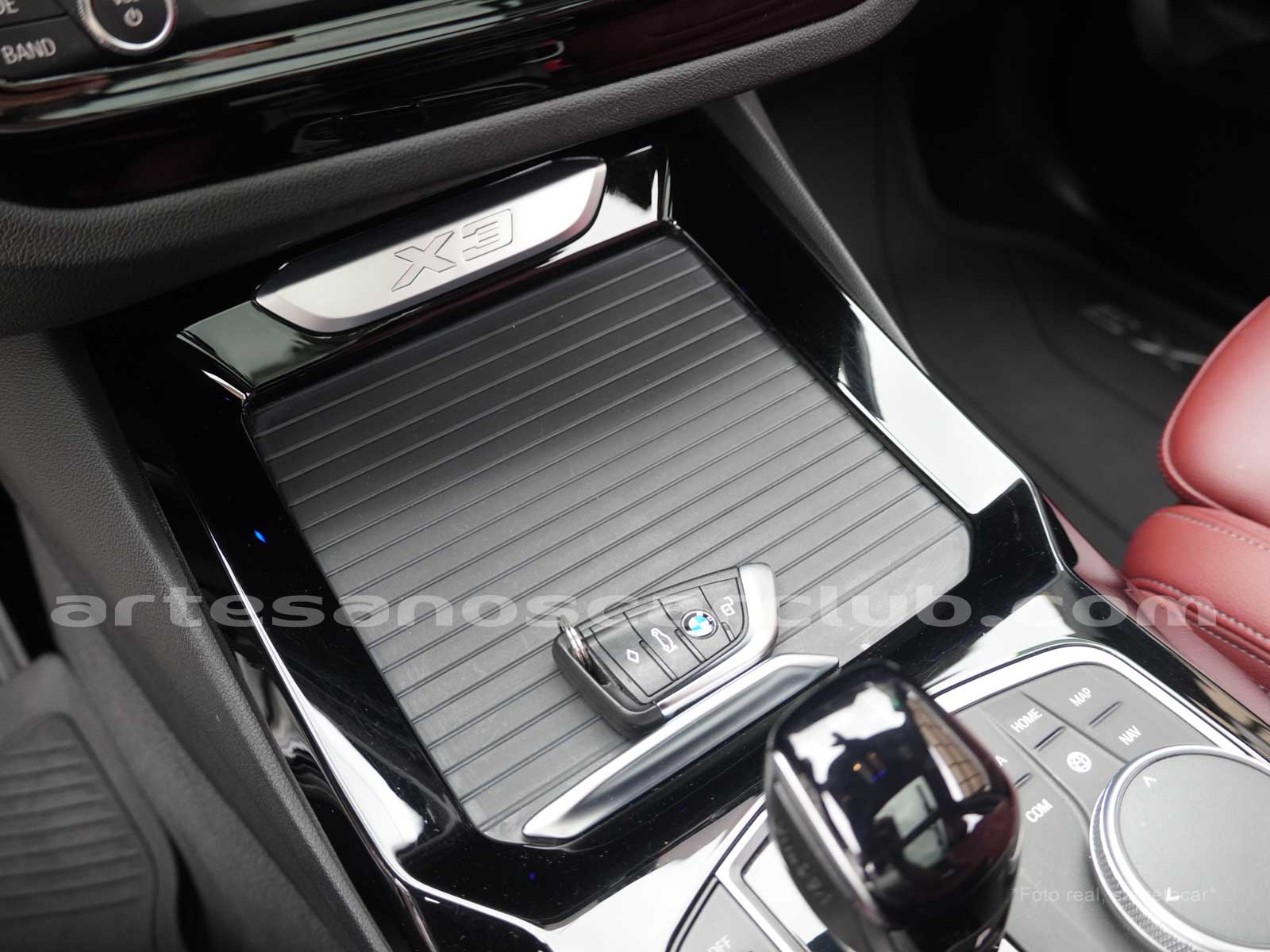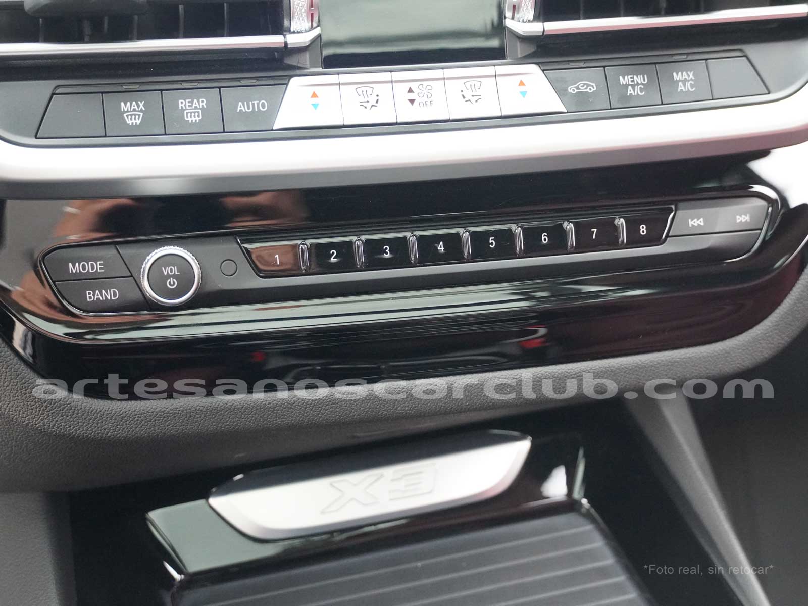 Molduras internas de puertas y consola central en aluminio OxidSilver con inscripción X3.