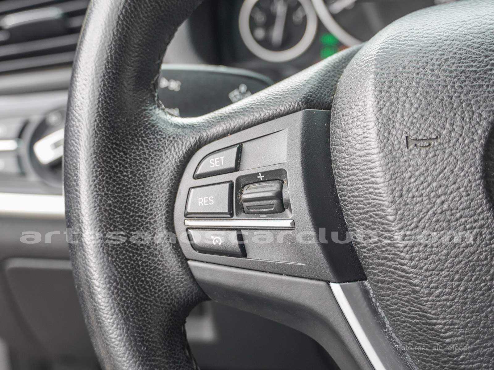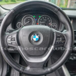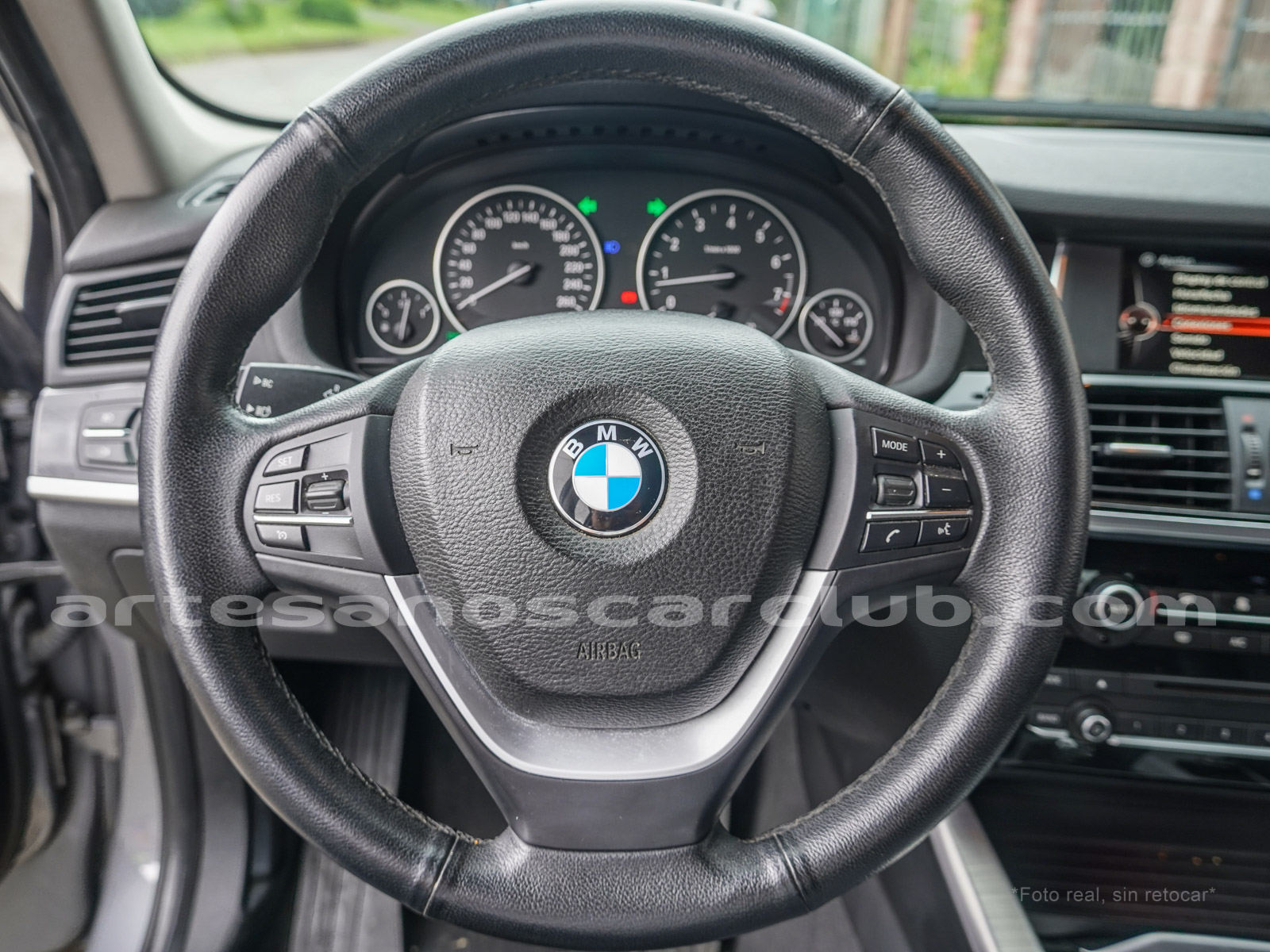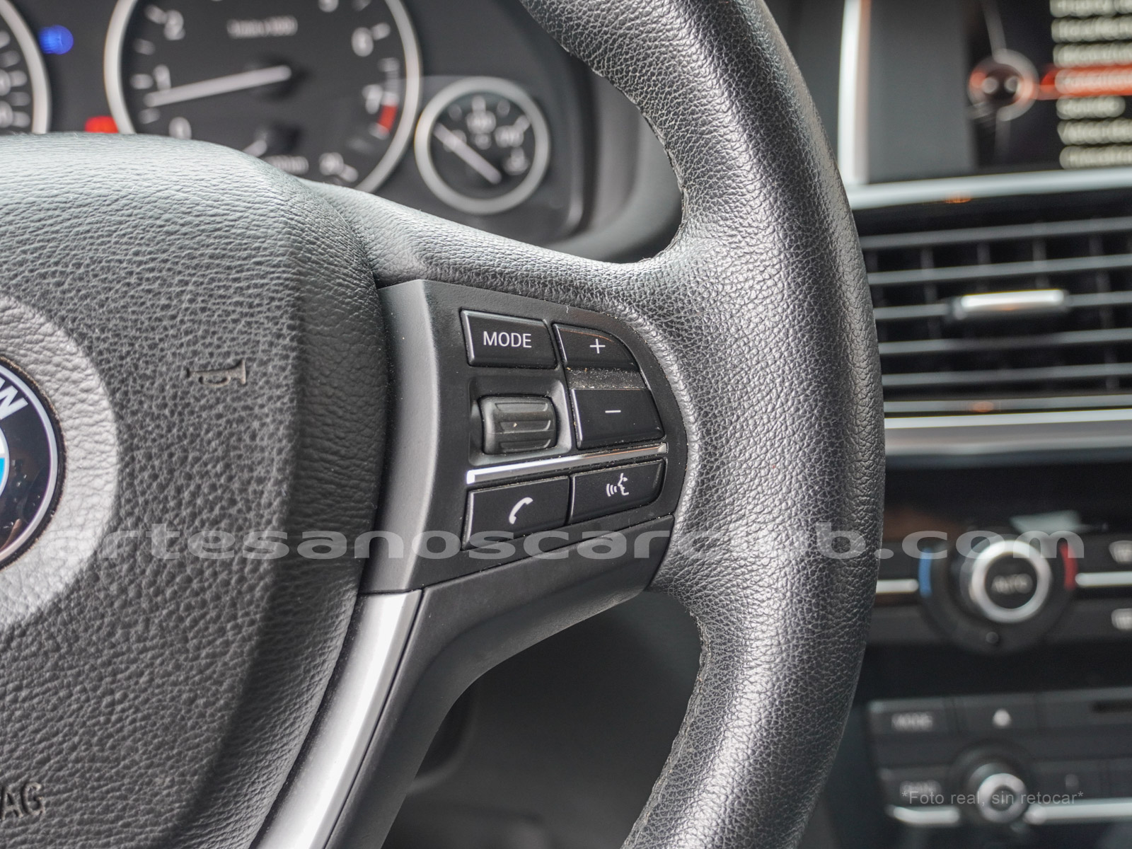 Volante de 3 radios multifunción en piel negra con detalles en aluminio.