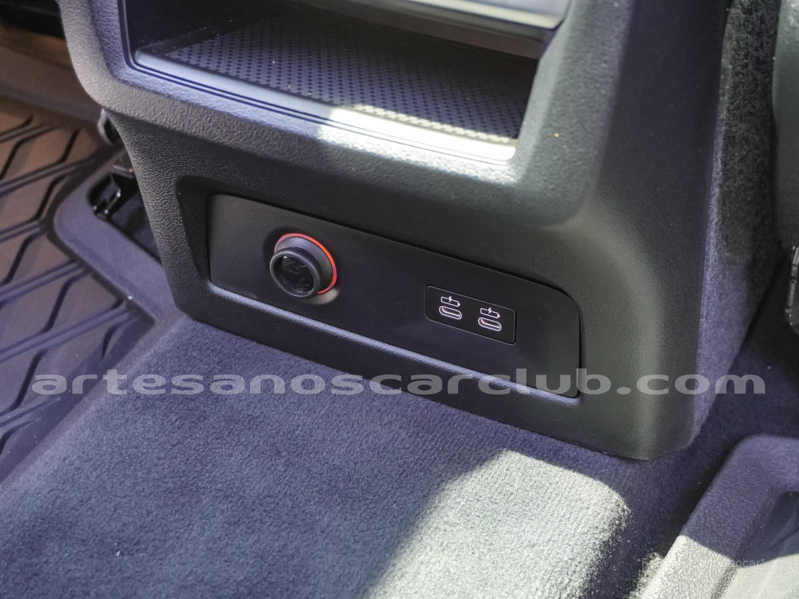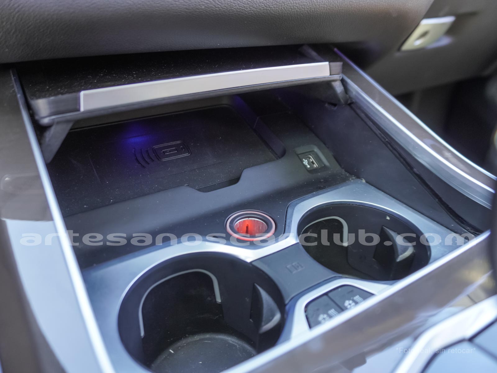 Consola central delantera con bodega y tapa, con conectores multimedia.