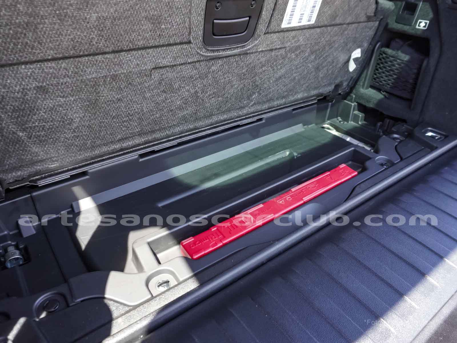 Espacio para guardar el cubre equipaje bajo el piso del baúl.