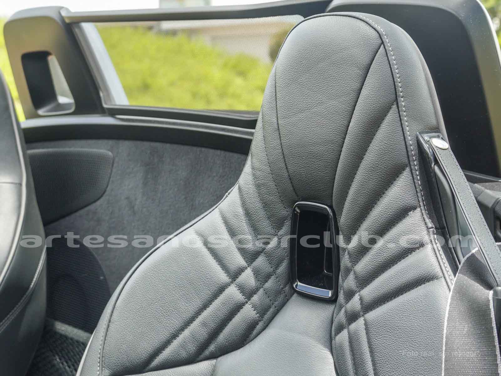 Palanca de cambios en piano black con decoraciones en aluminio satinado.
