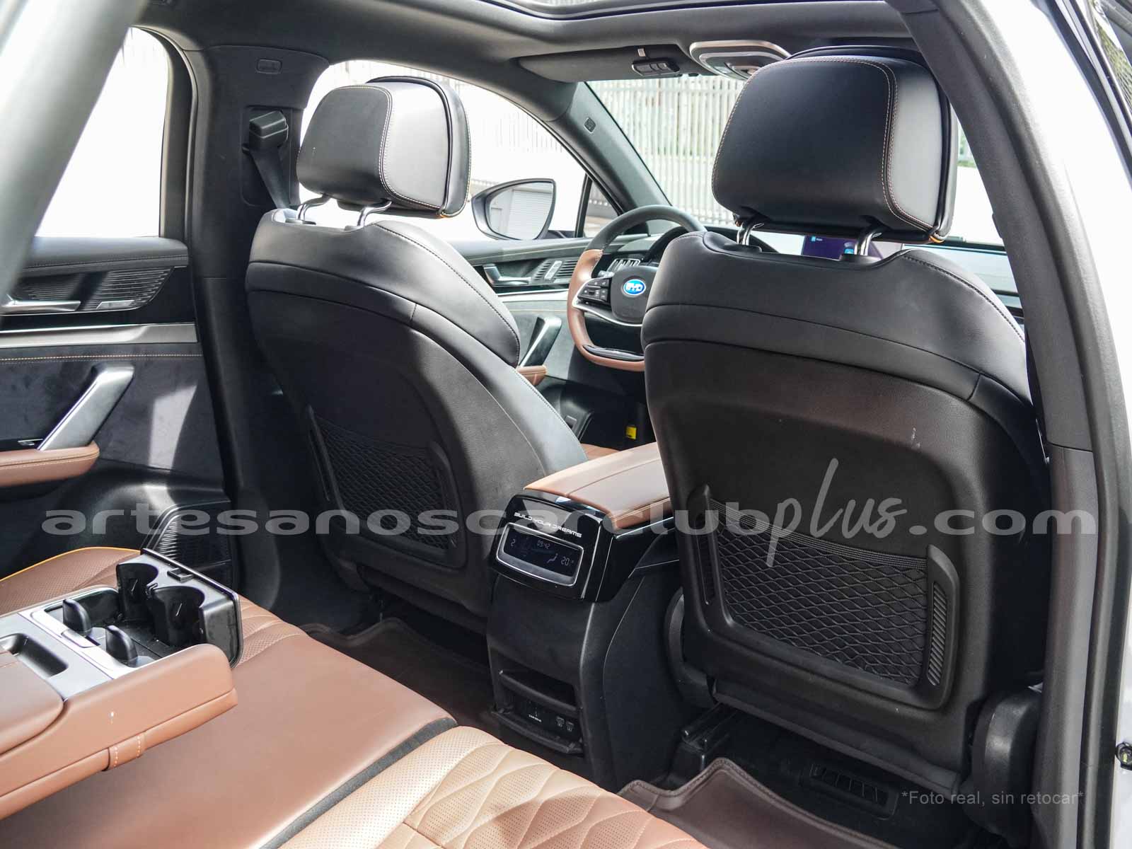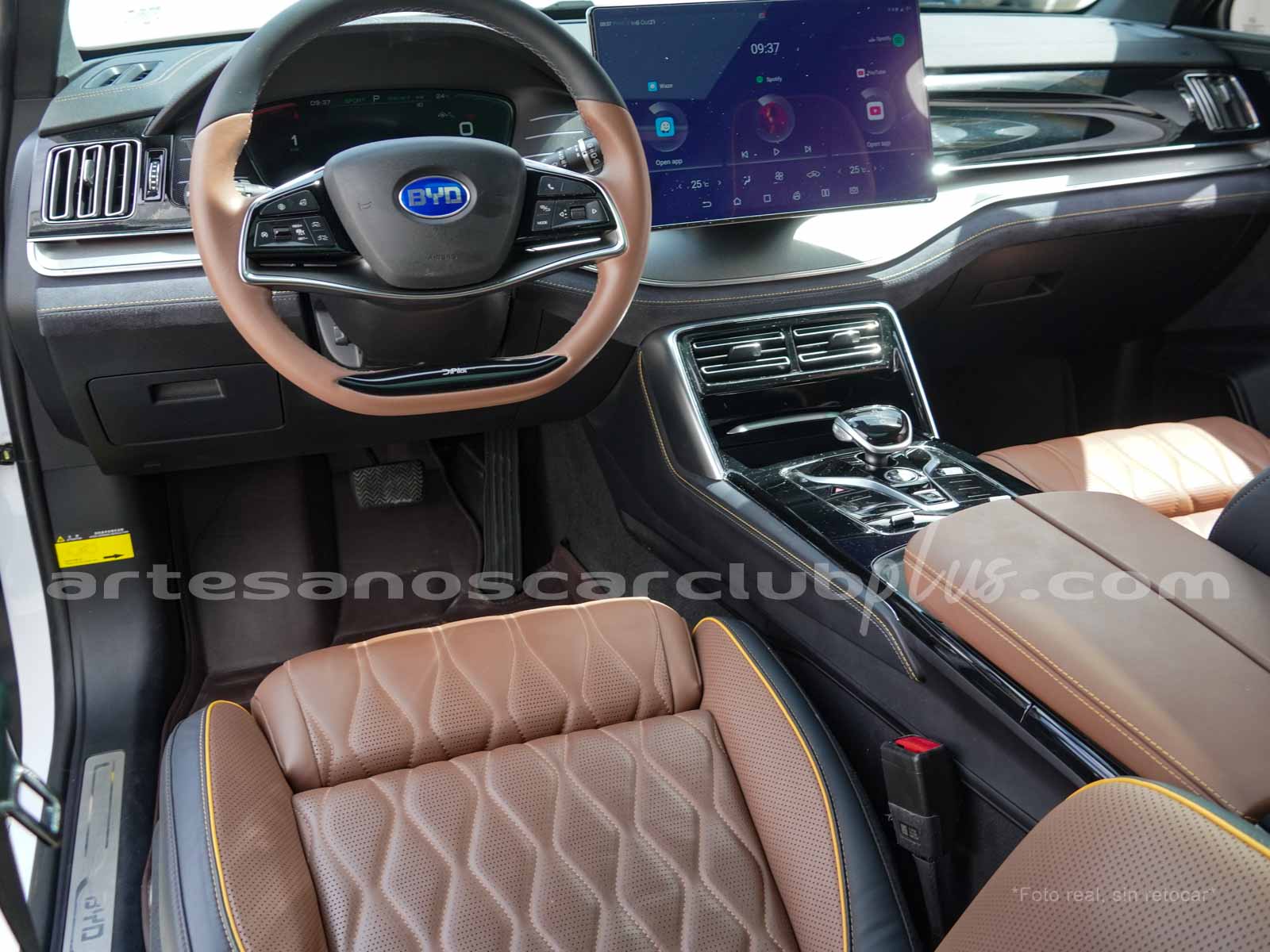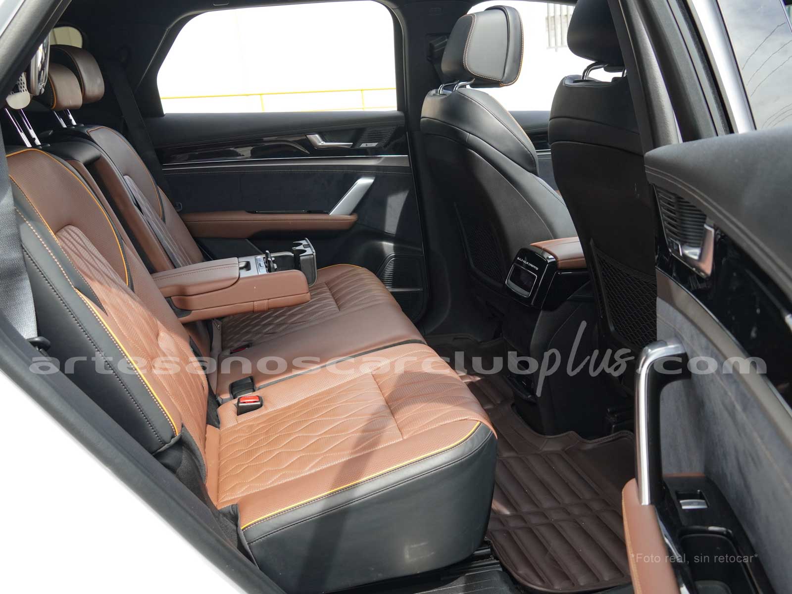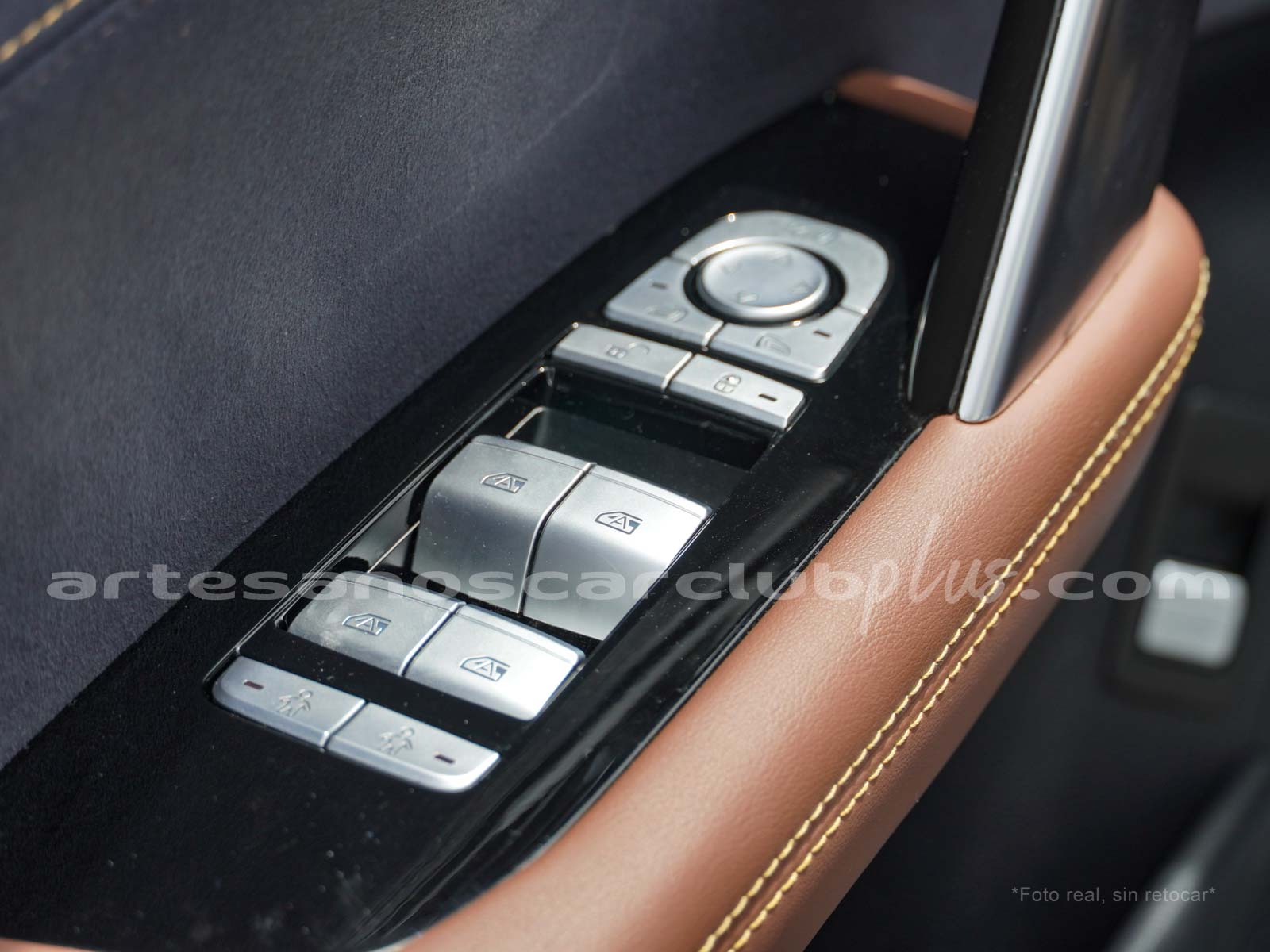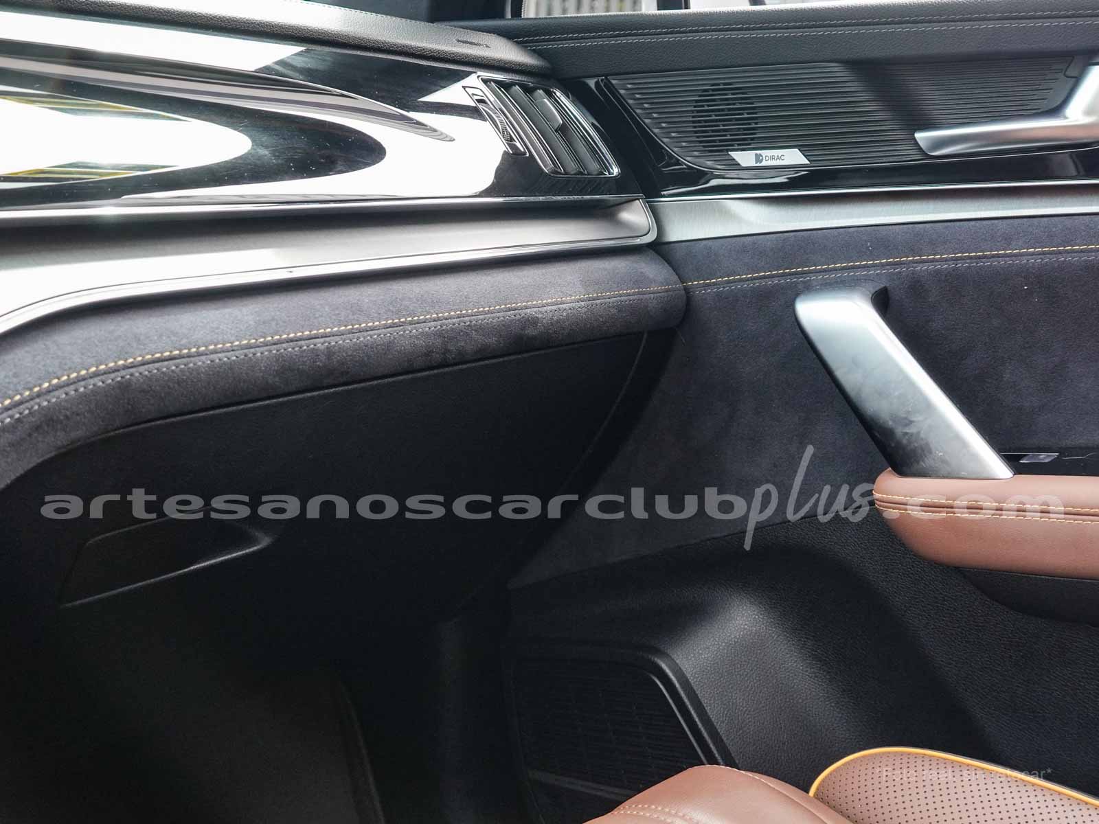 - Dash y cintura media en color negro y marrón con áreas decorativas en piano negro brillante, con acabados en microfibra negra de alto contraste.