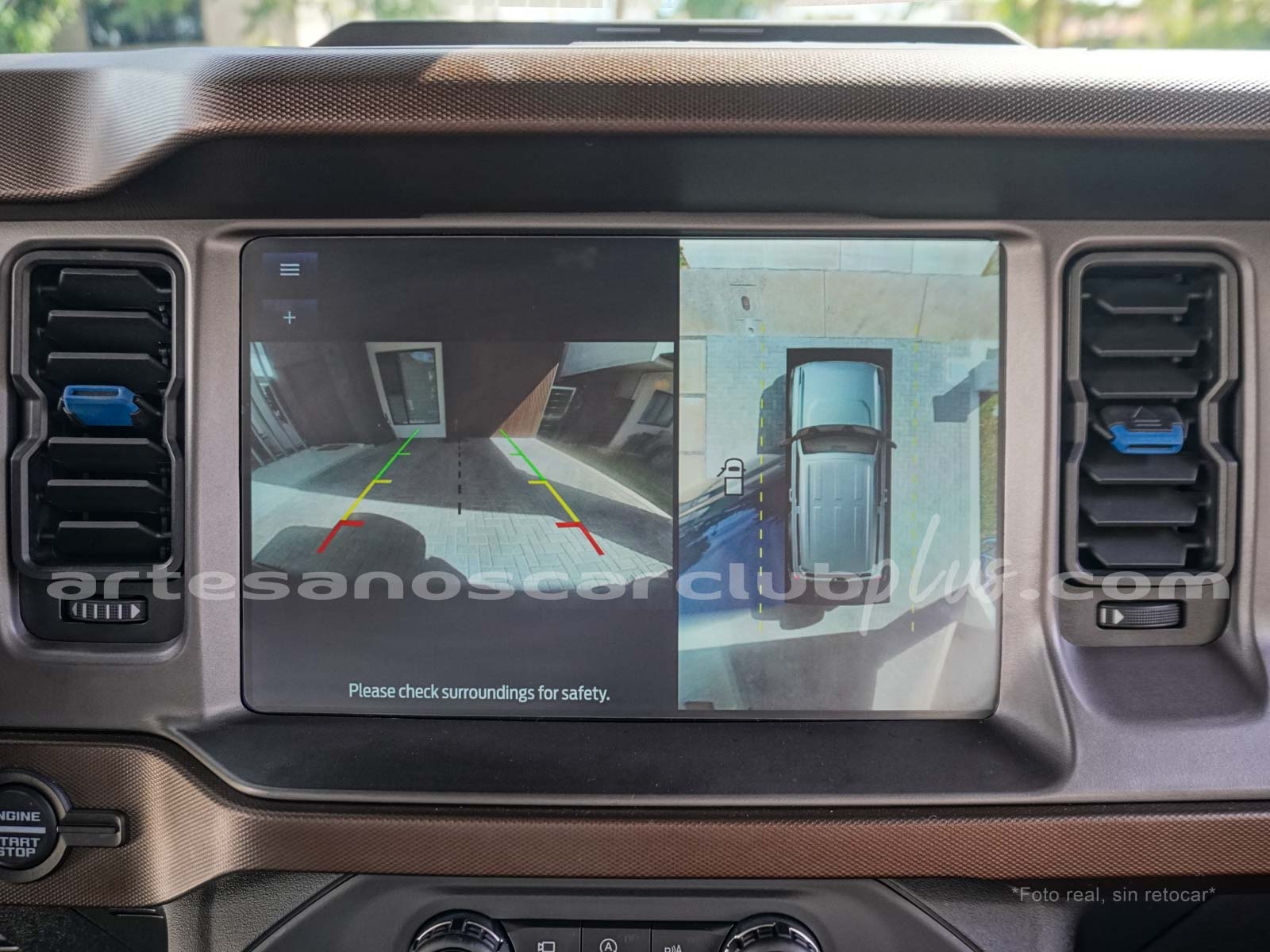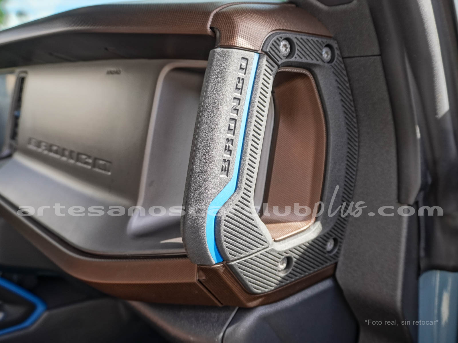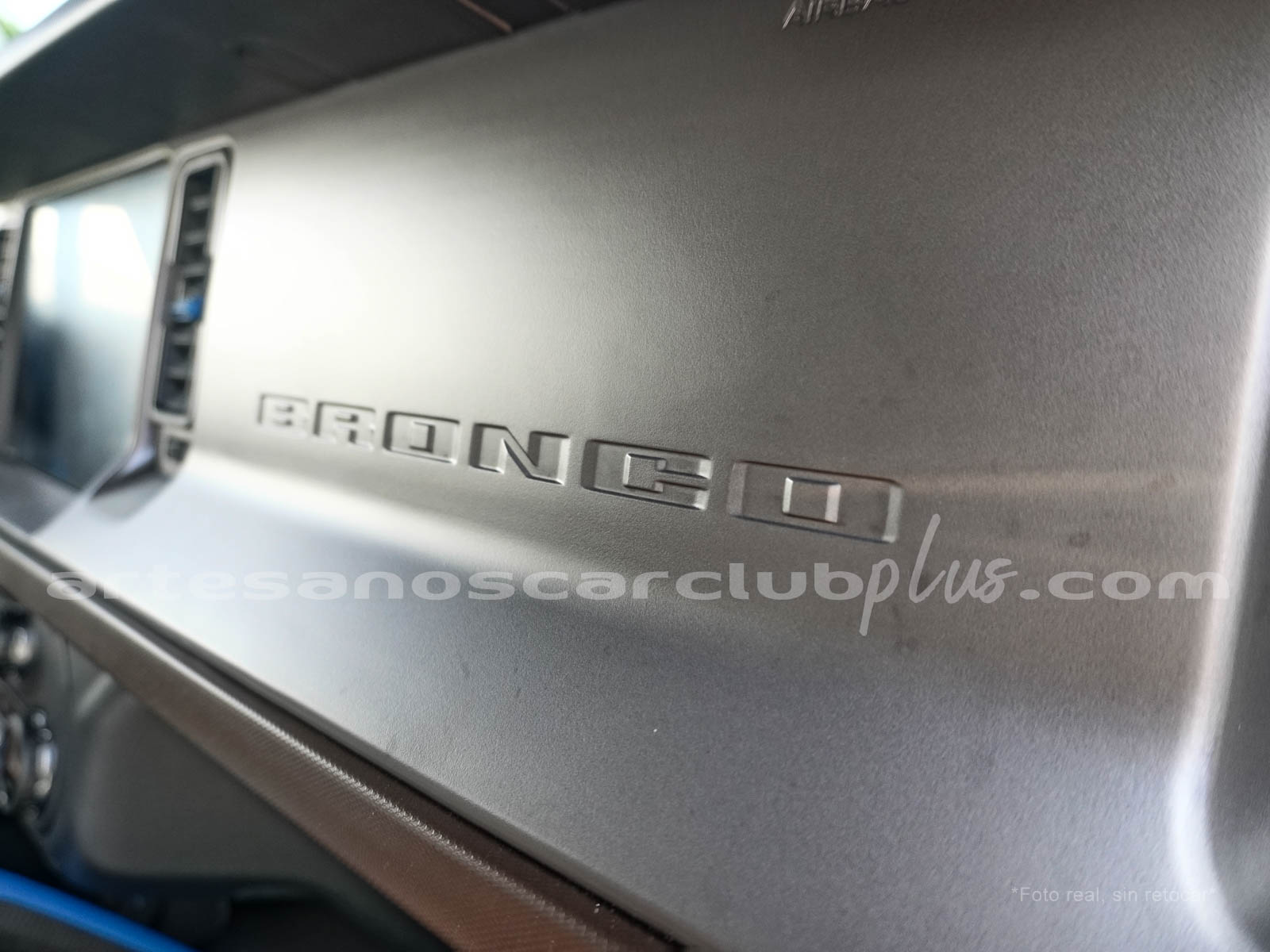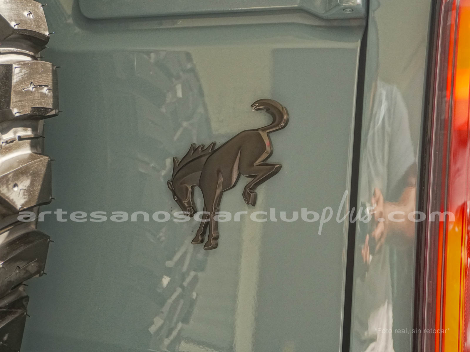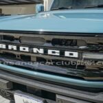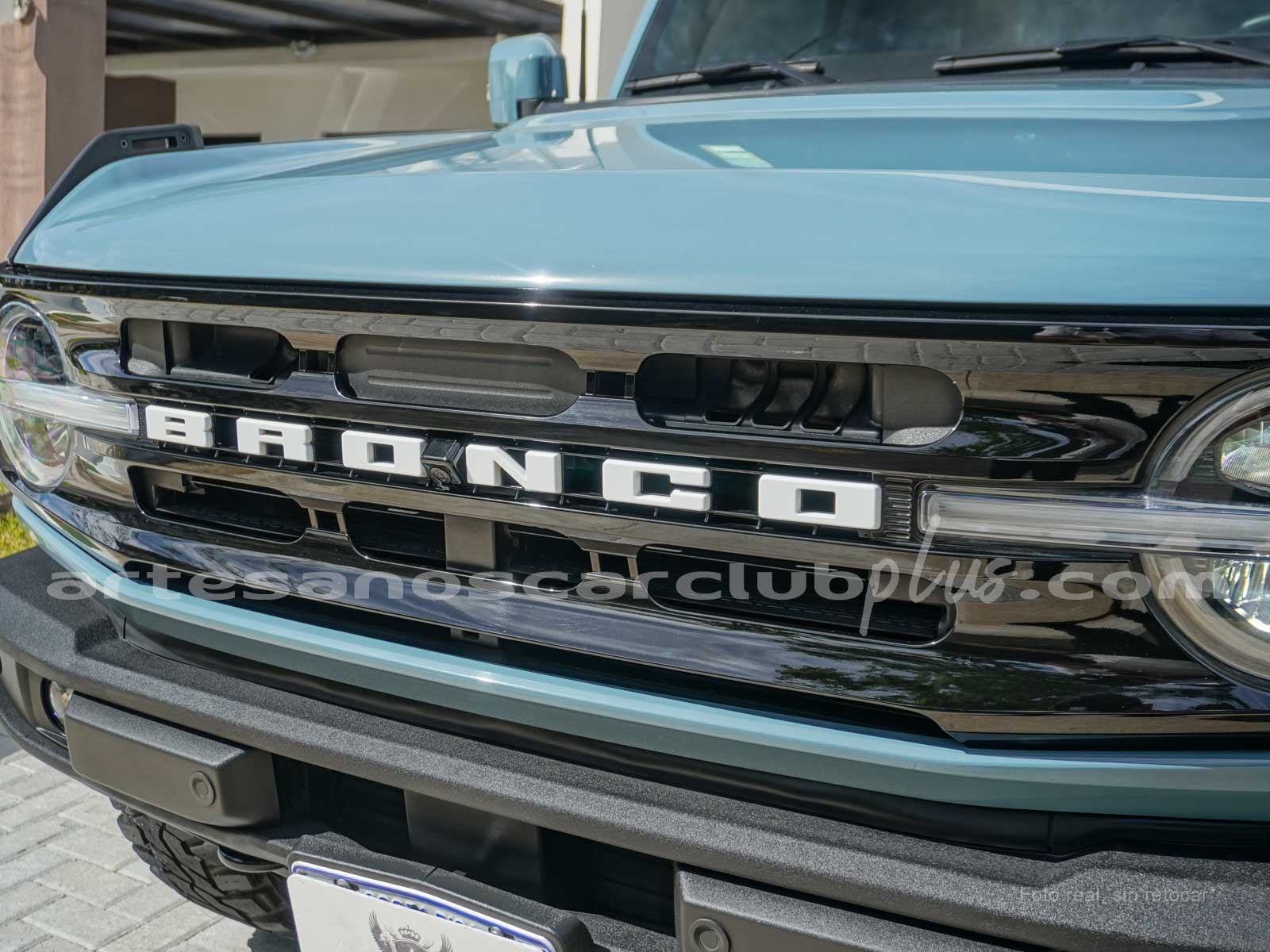 Parrilla frontal con marco negro y malla negra con inscripción de gran formato BRONCO.