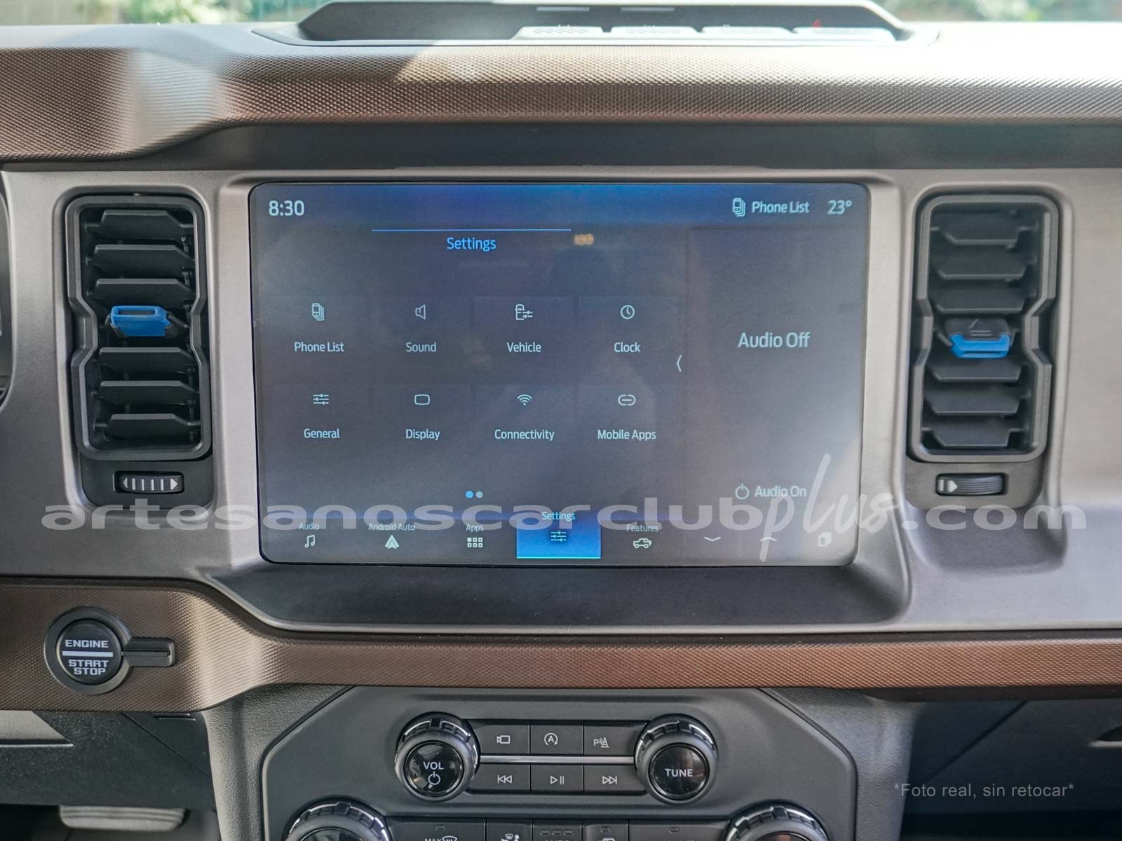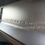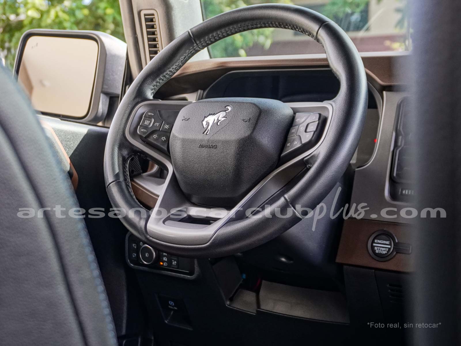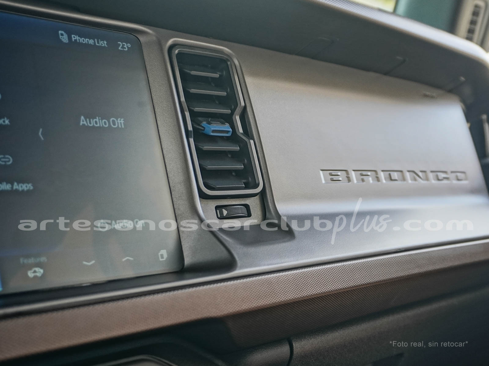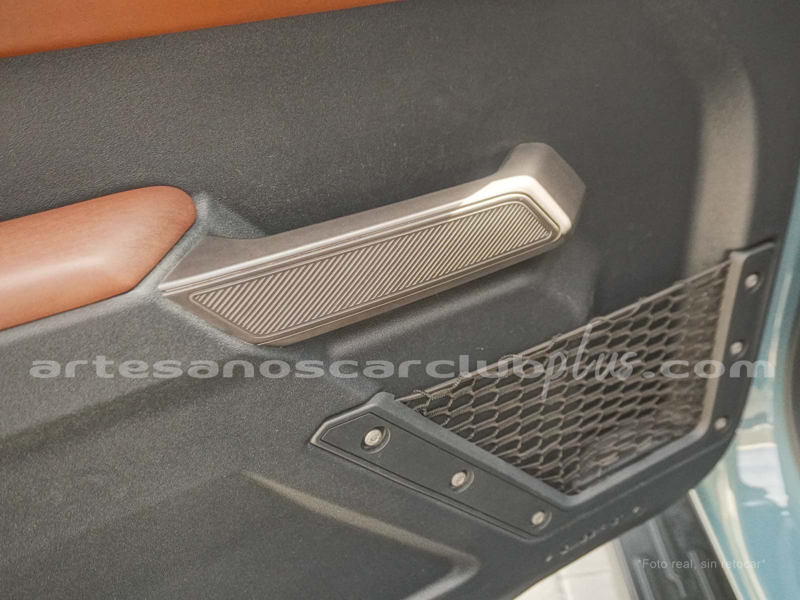 Parrilla frontal con marco negro y malla negra con inscripción de gran formato BRONCO.
