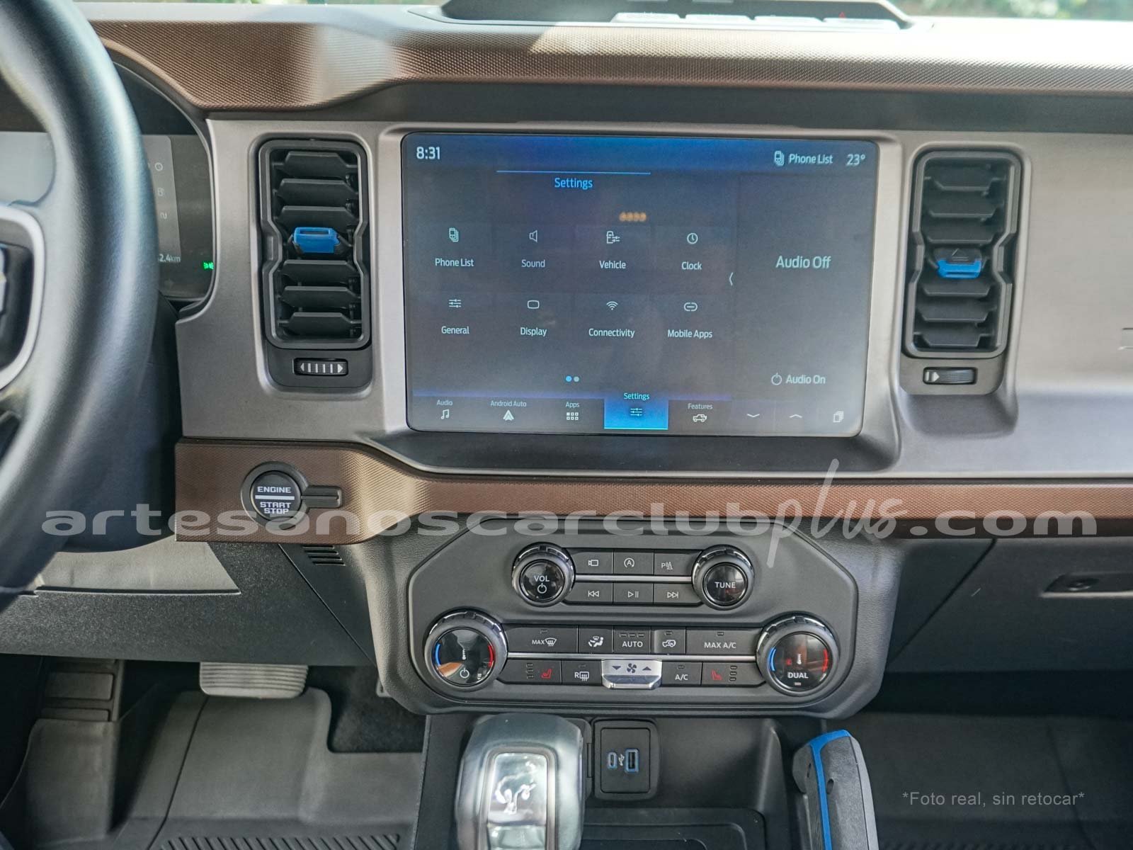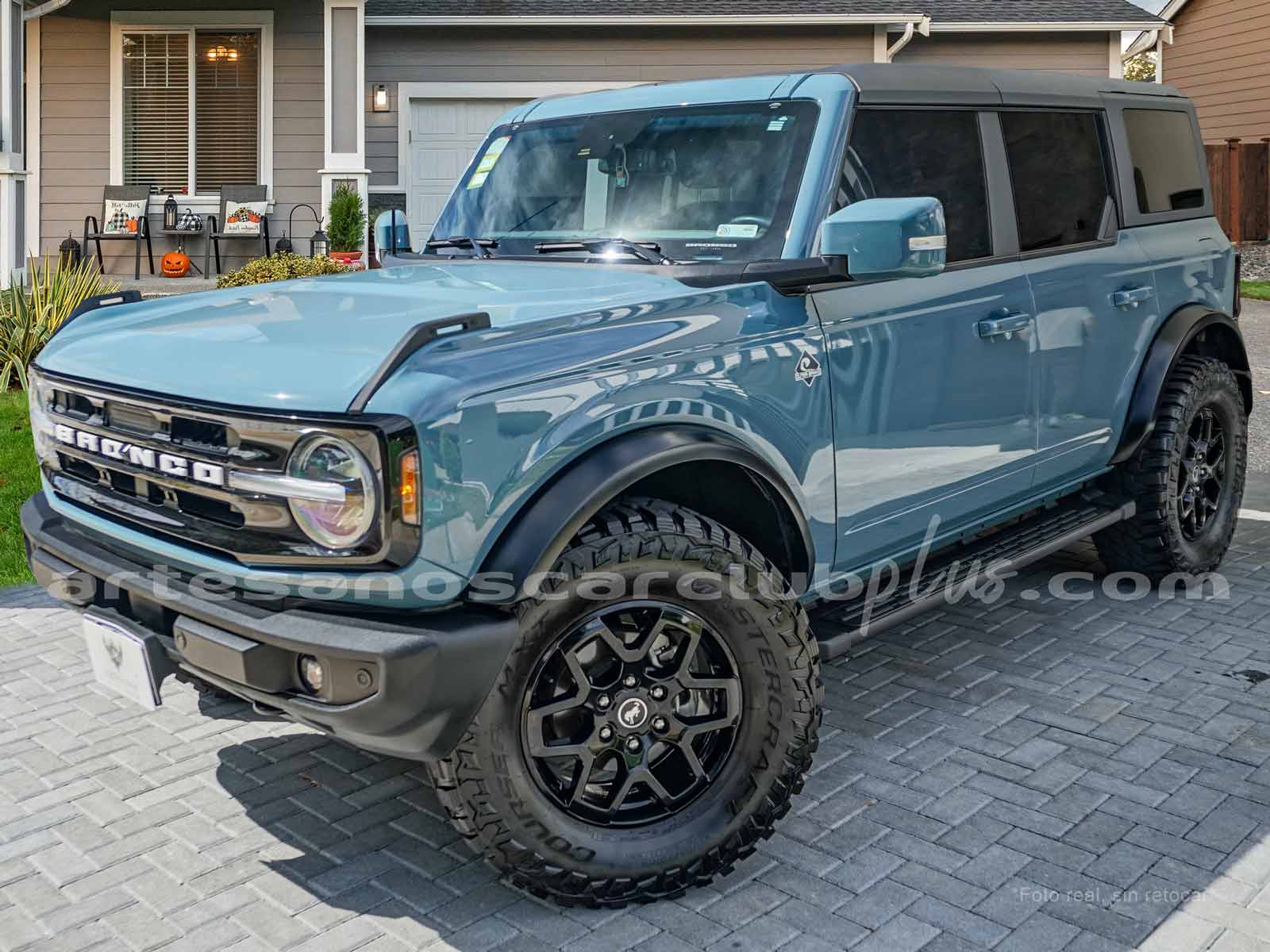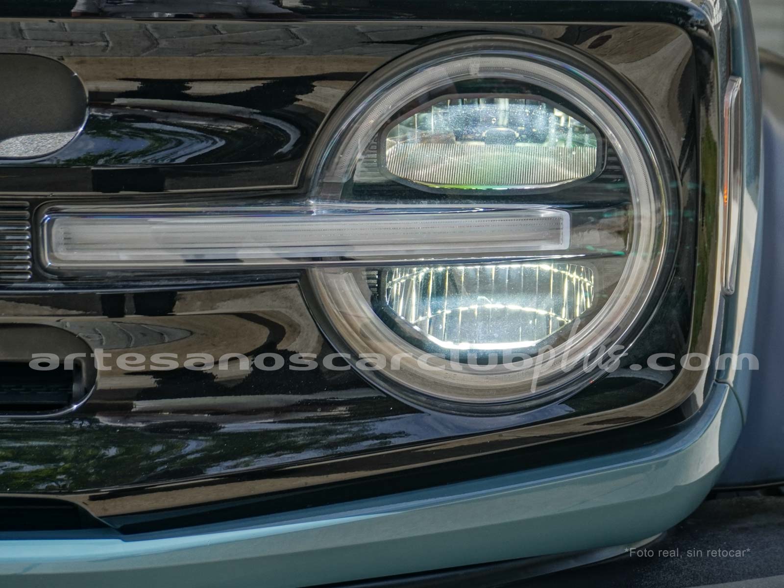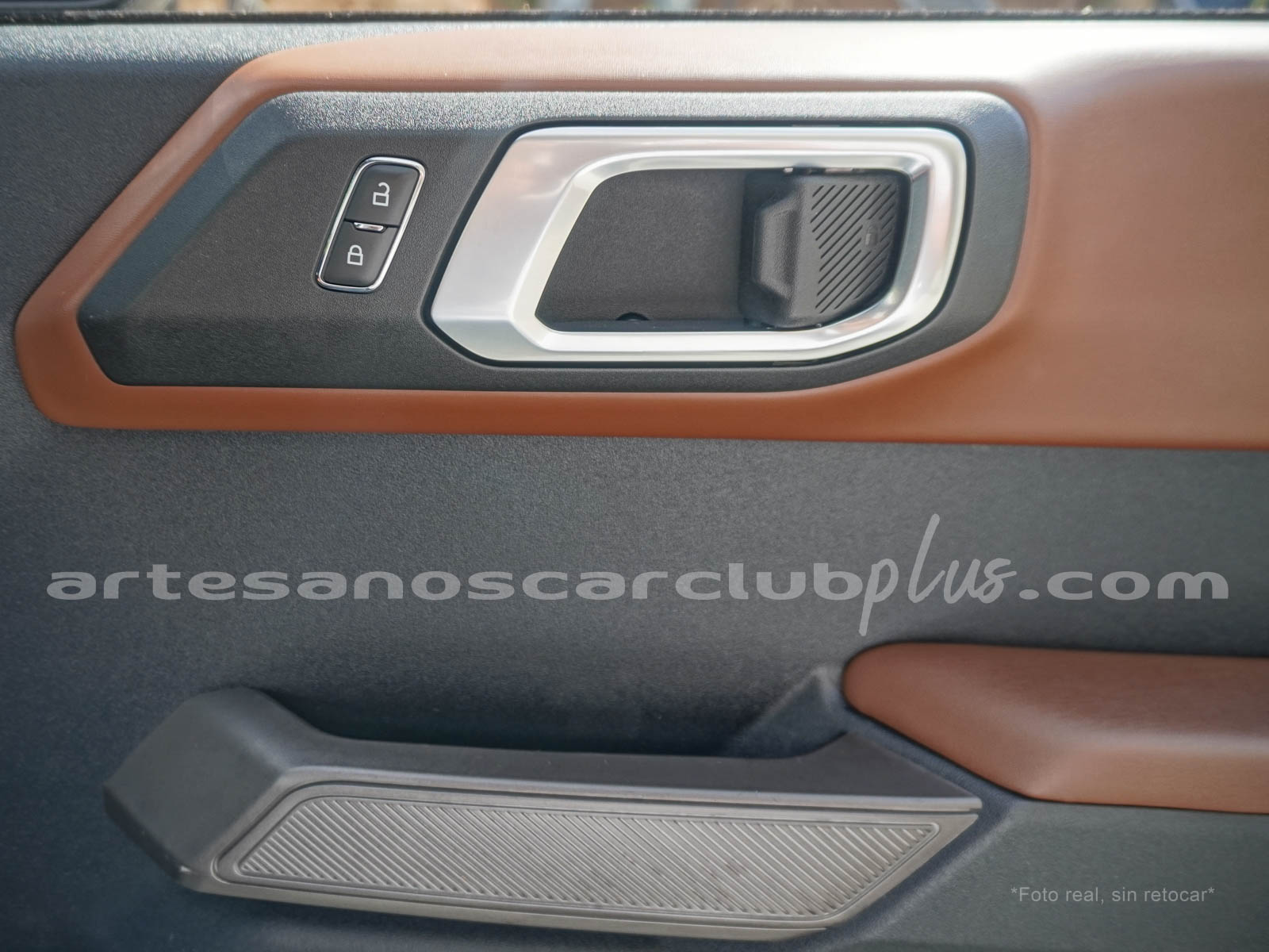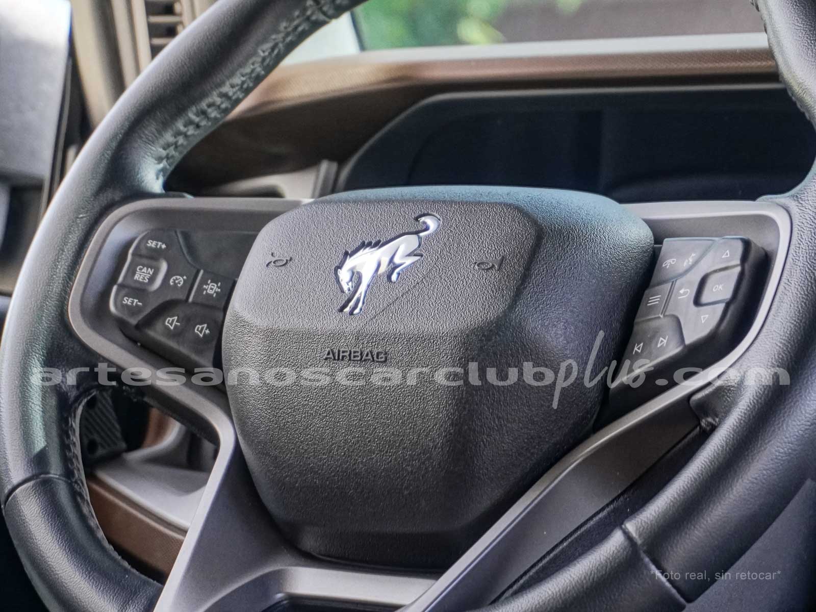 Parrilla frontal con marco negro y malla negra con inscripción de gran formato BRONCO.