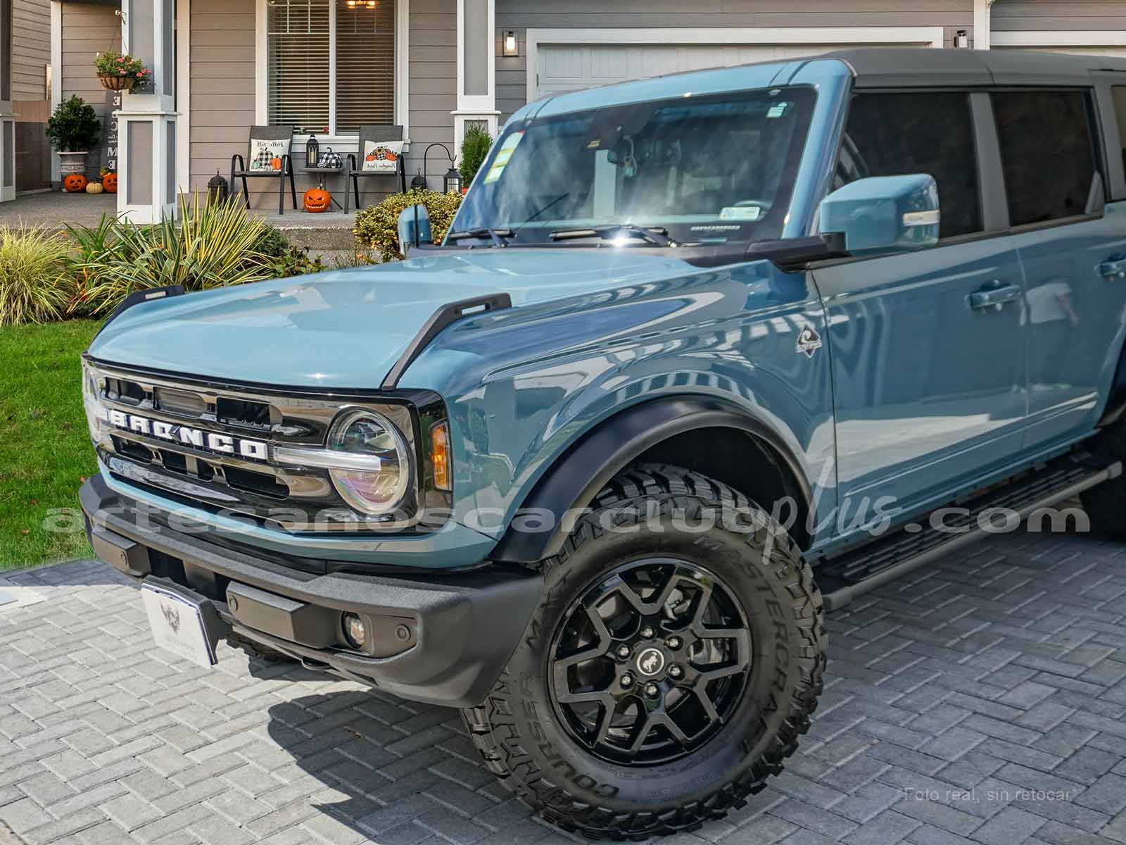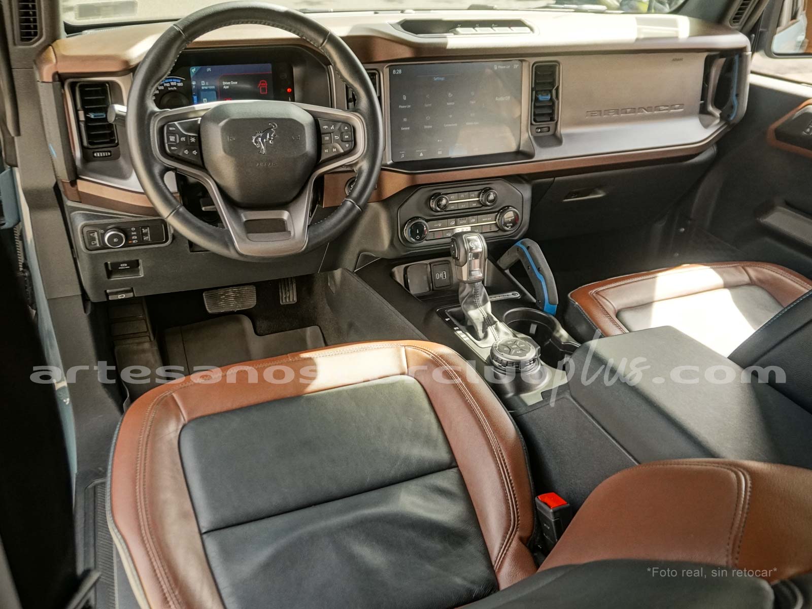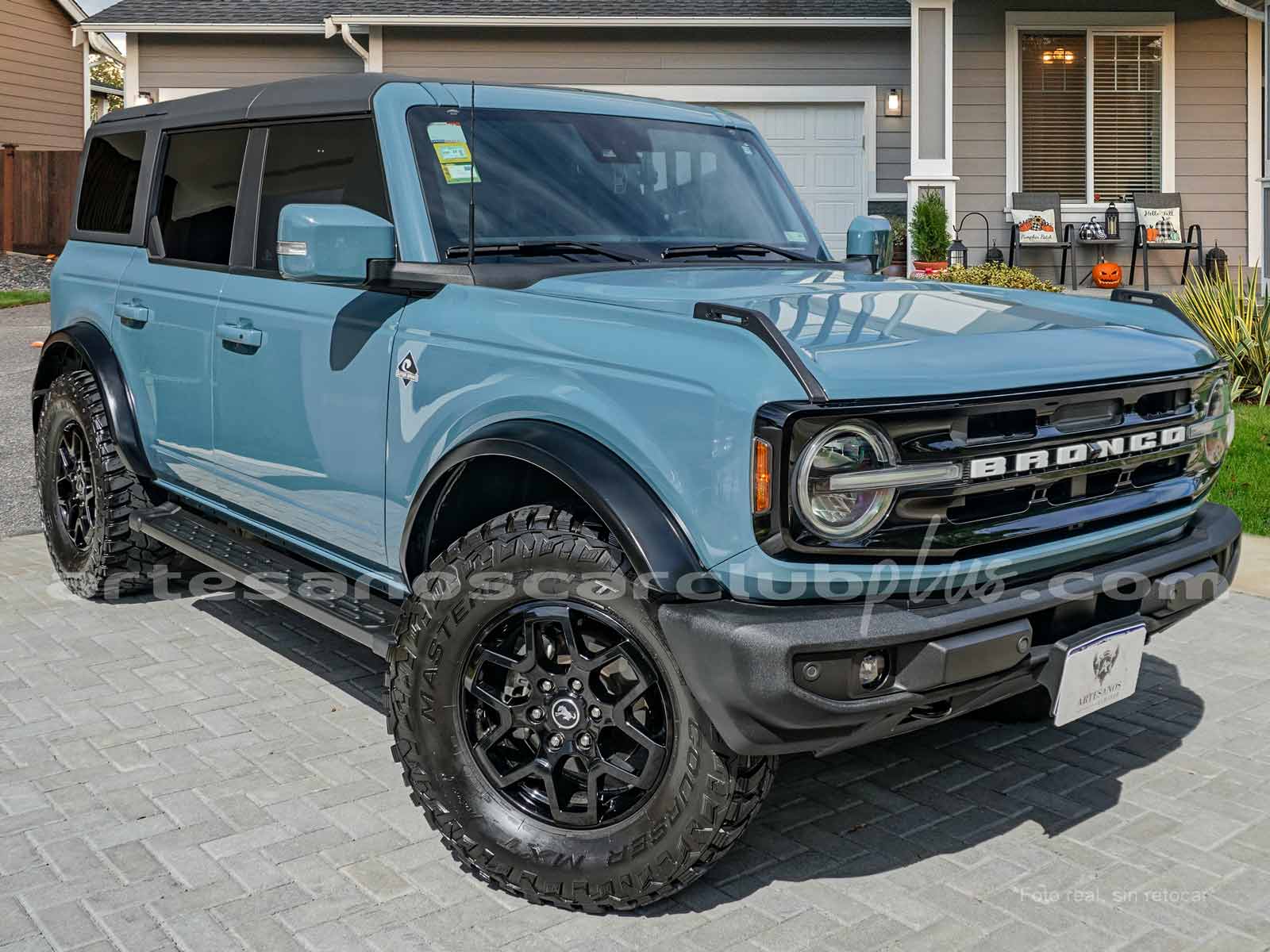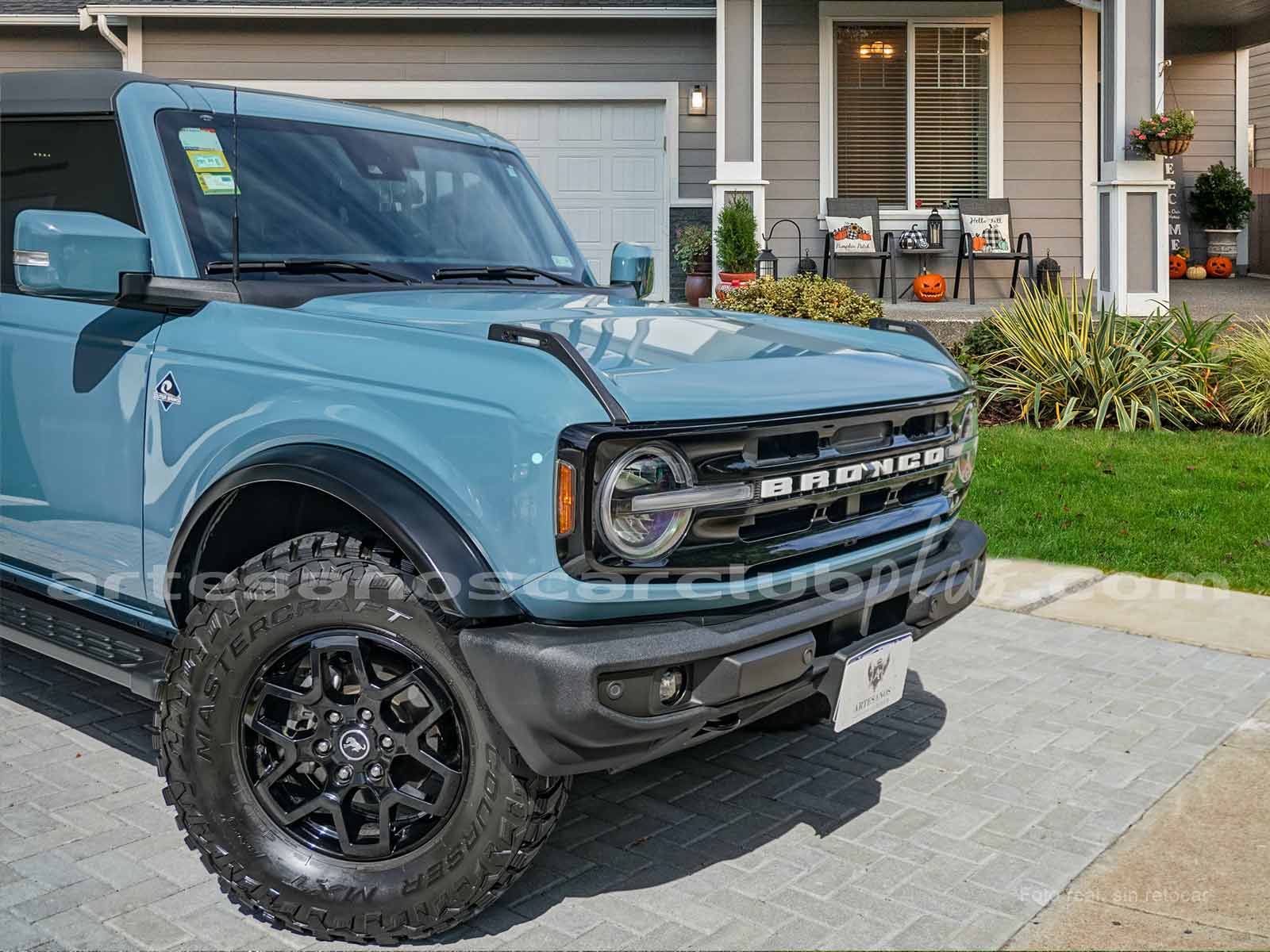 Parrilla frontal con marco negro y malla negra con inscripción de gran formato BRONCO.