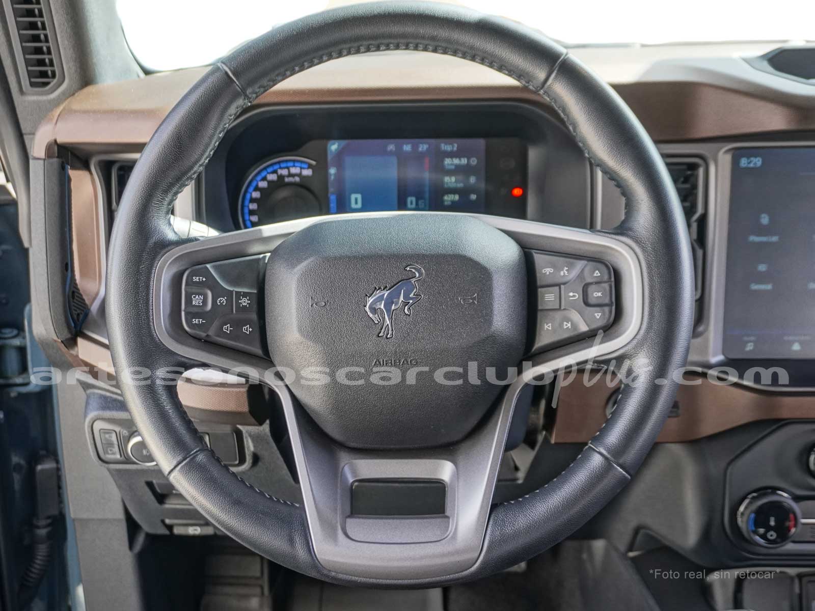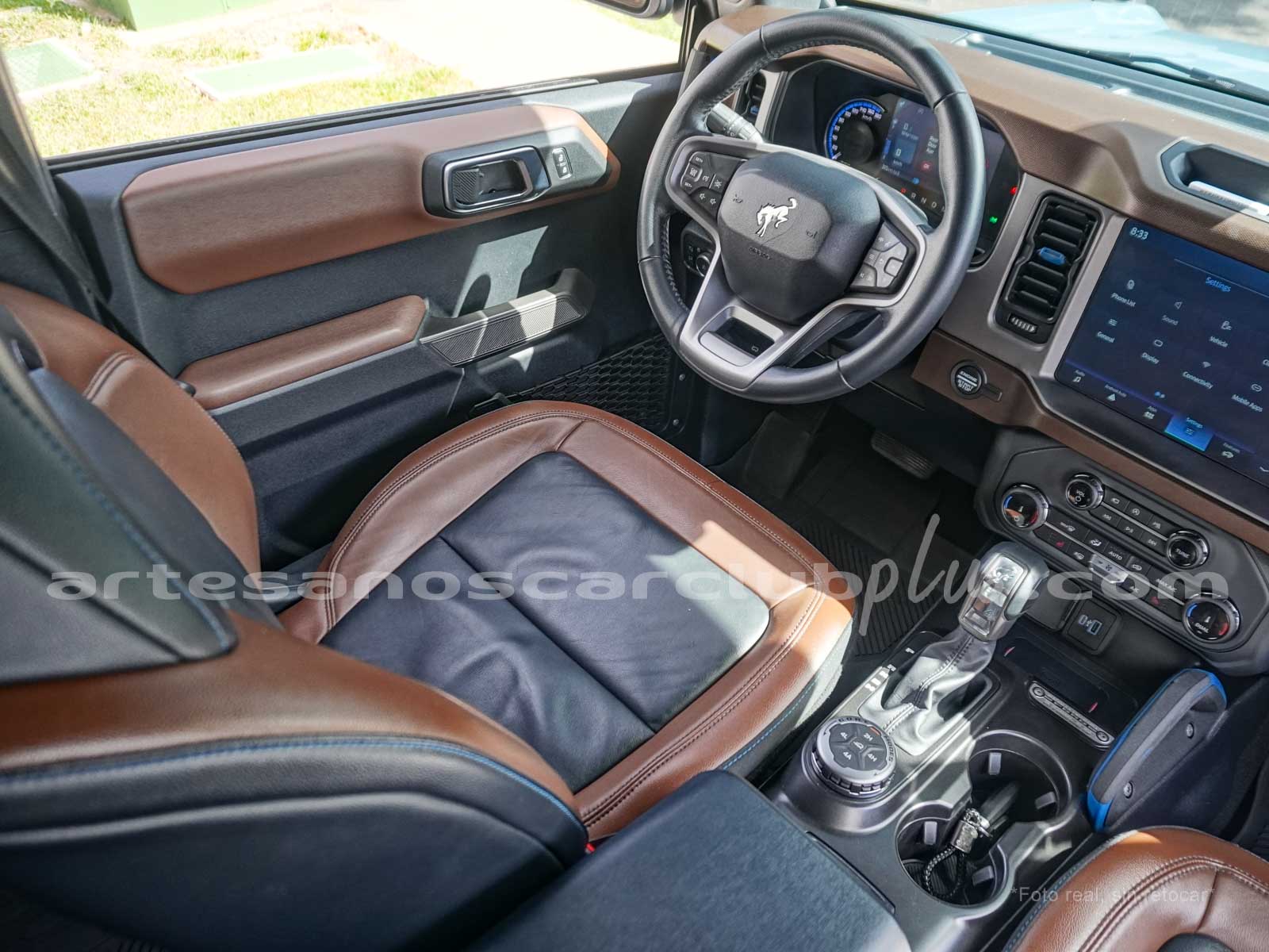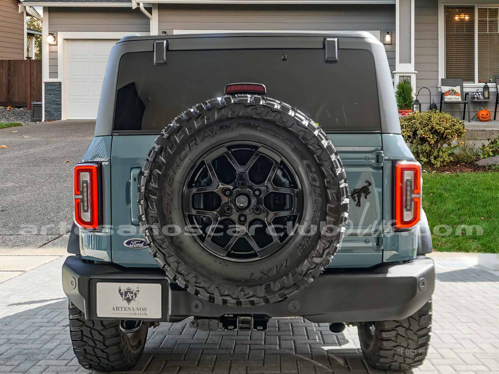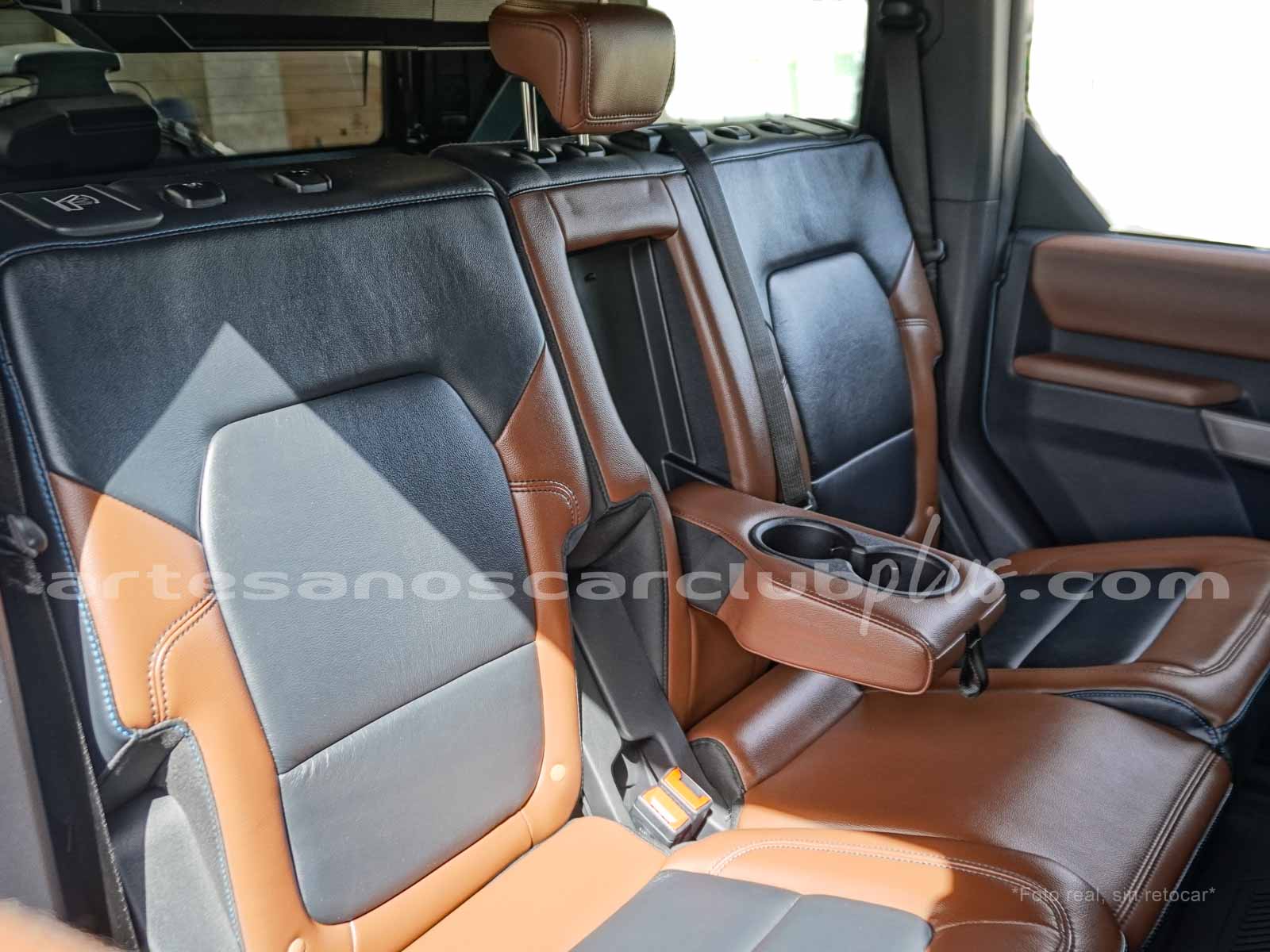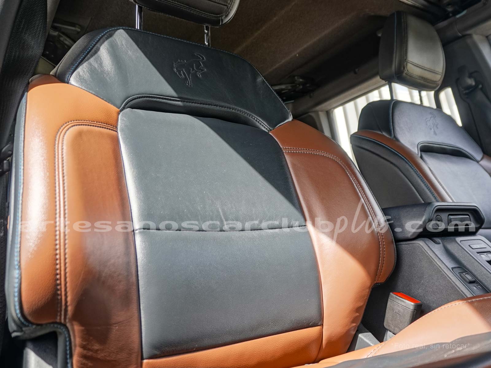 Parrilla frontal con marco negro y malla negra con inscripción de gran formato BRONCO.