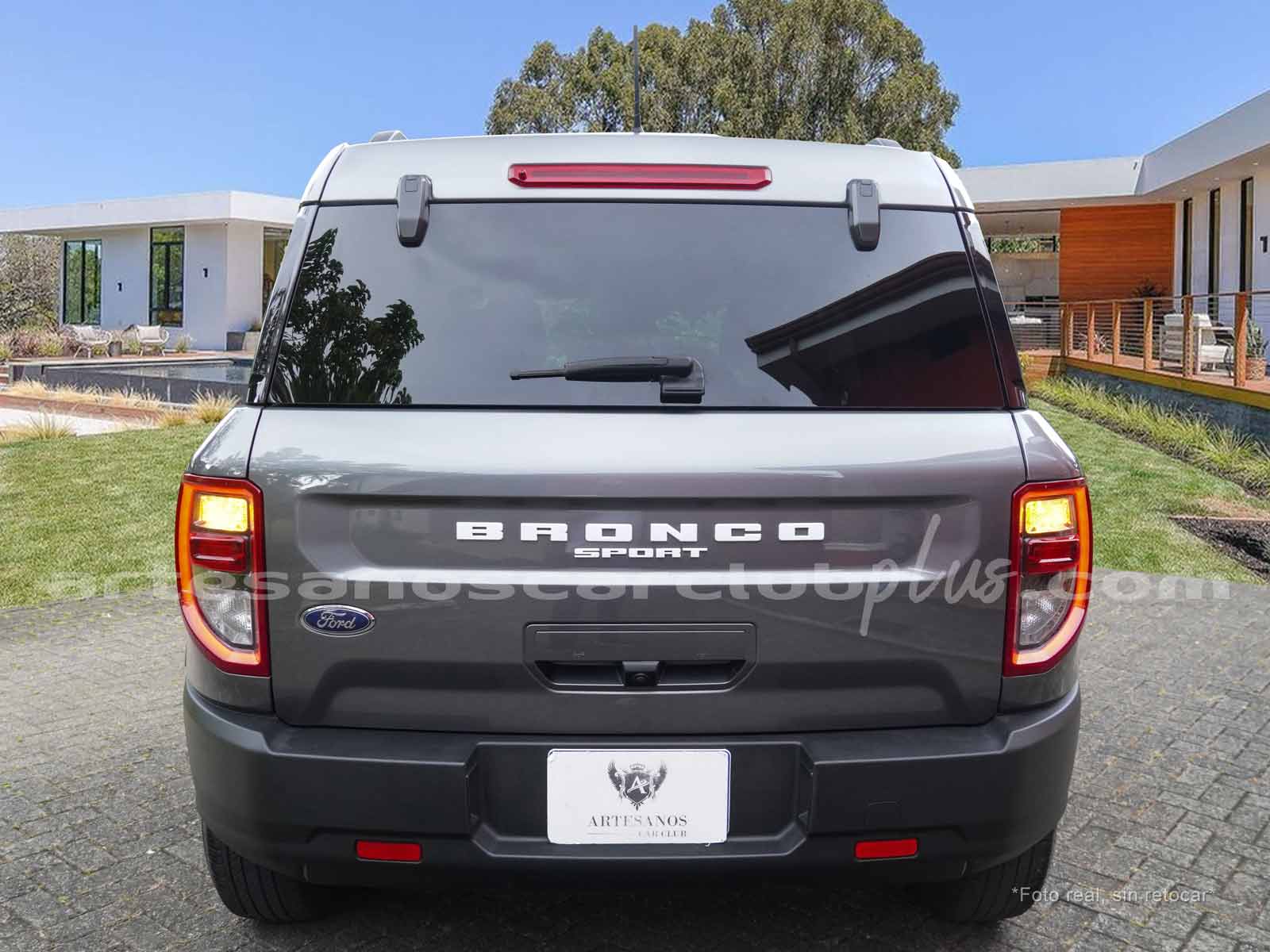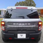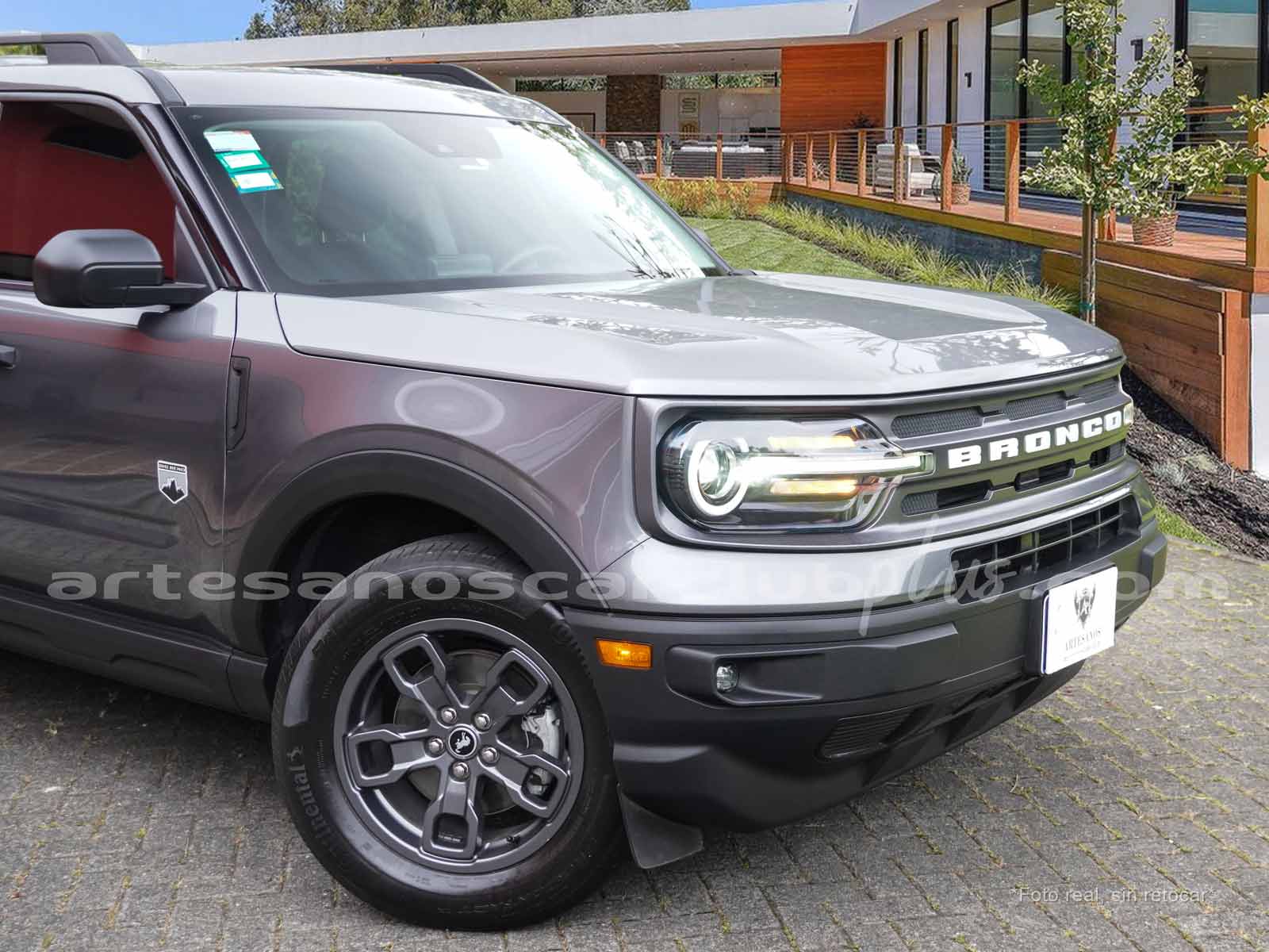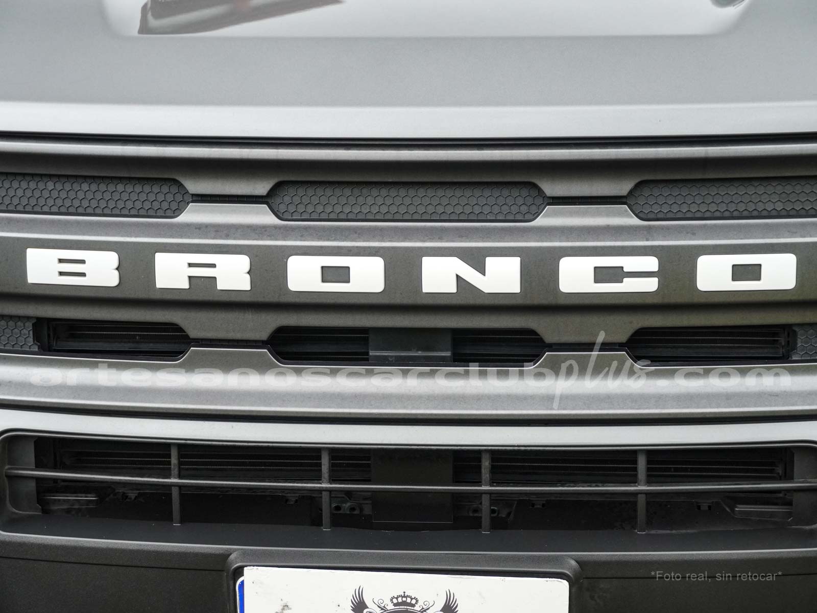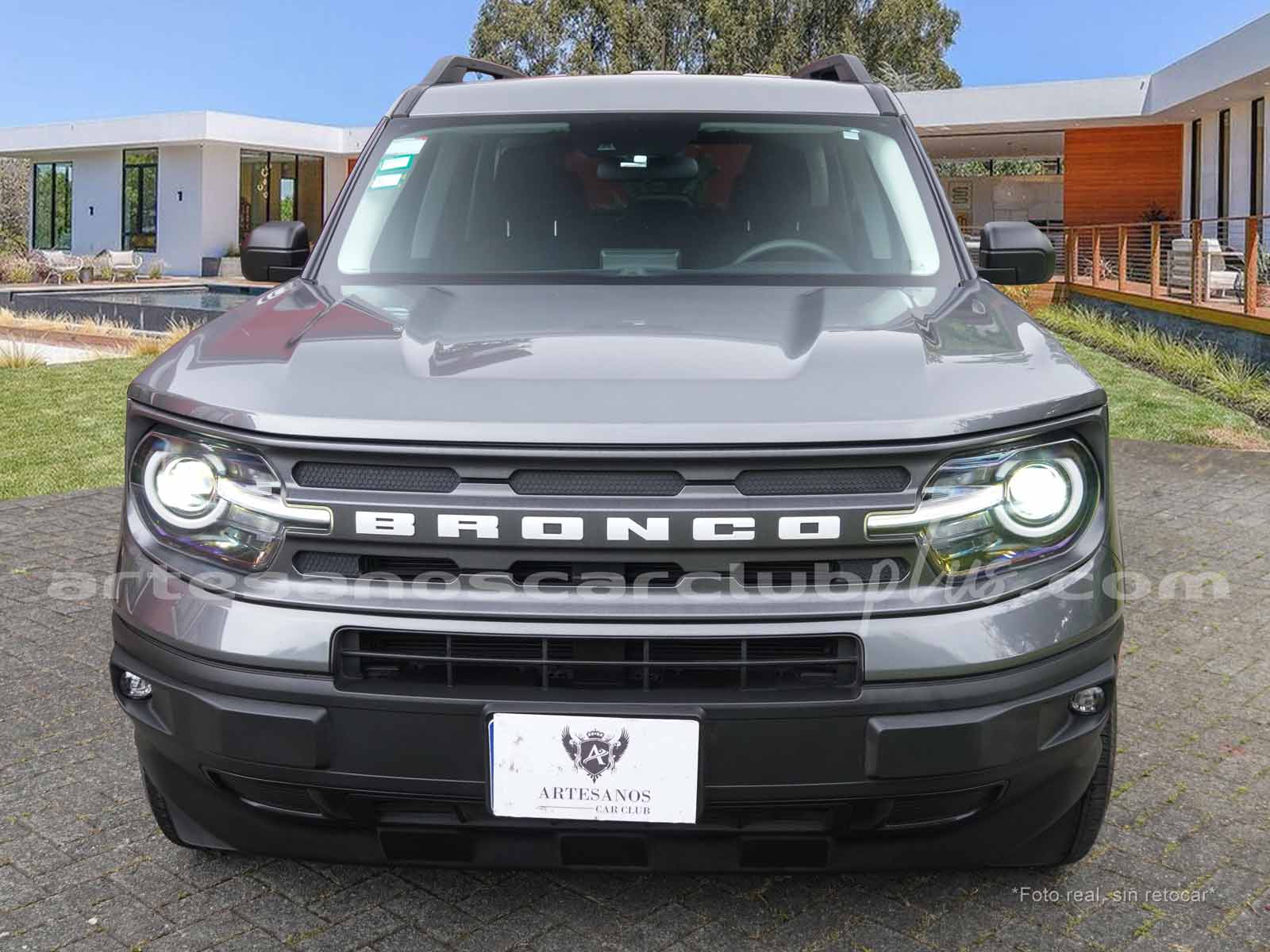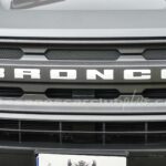 - Parrilla frontal con marco negro y malla negra con inscripción de gran formato BRONCO.