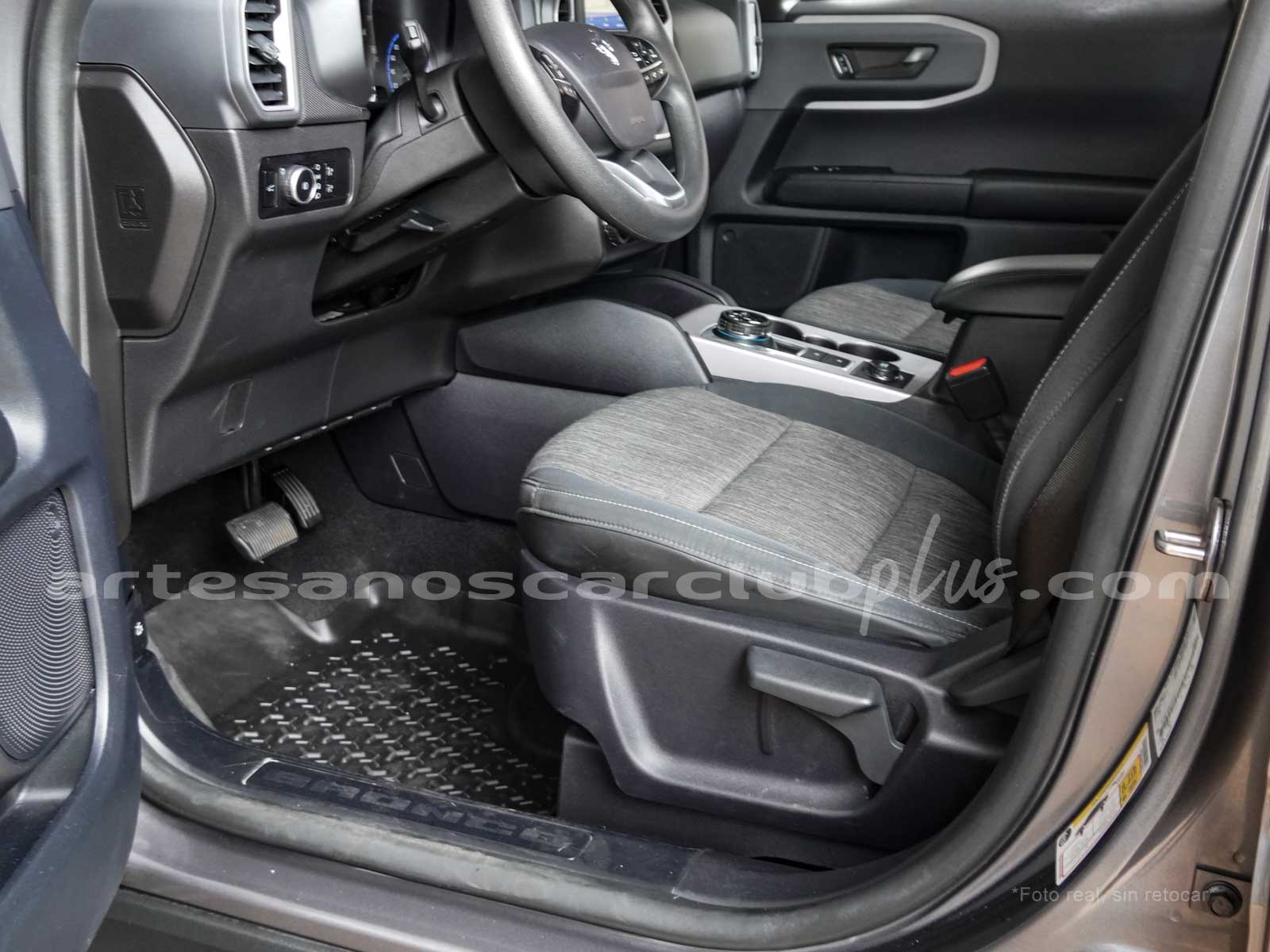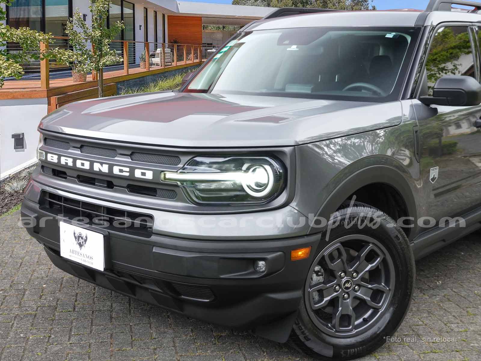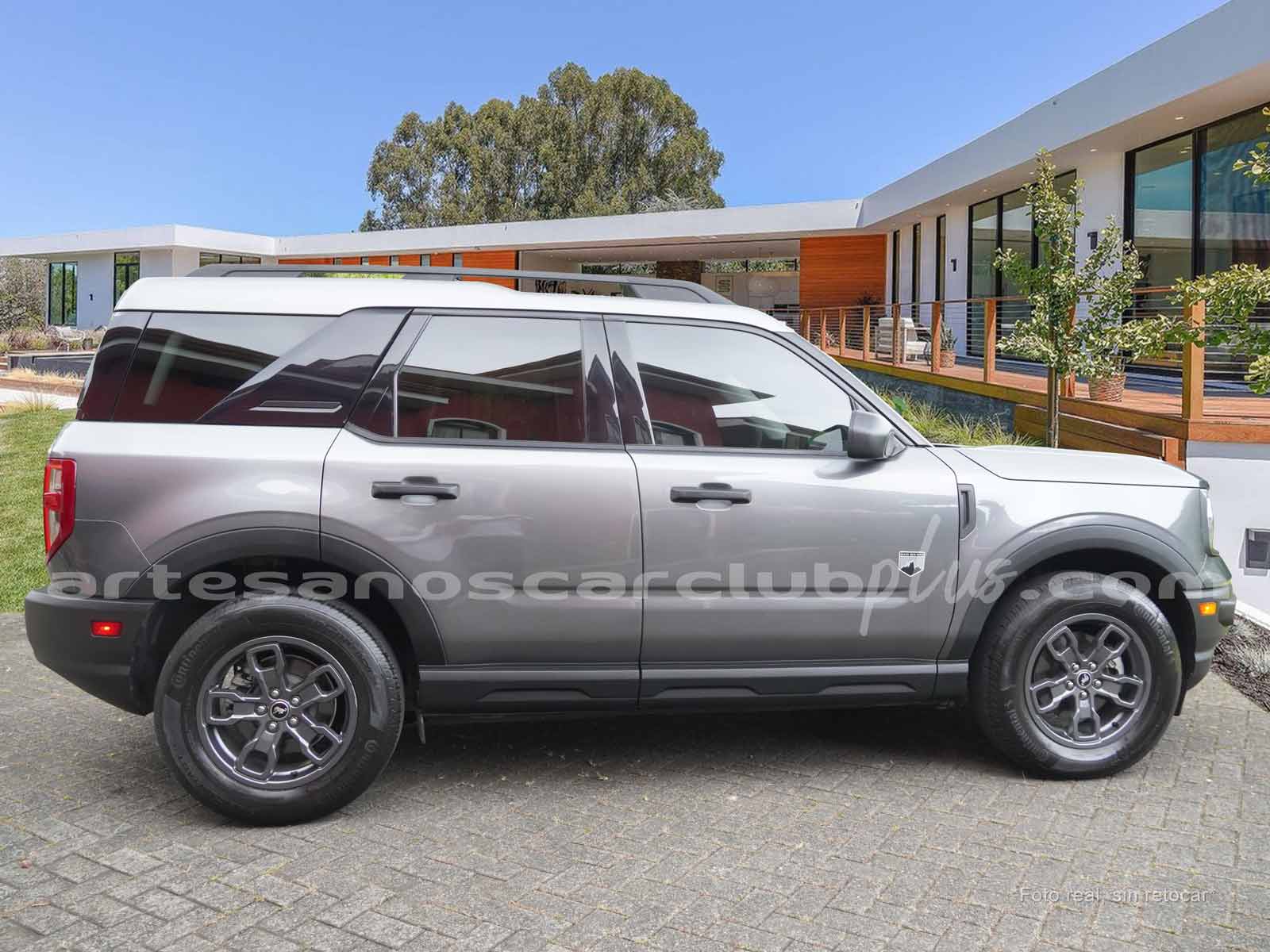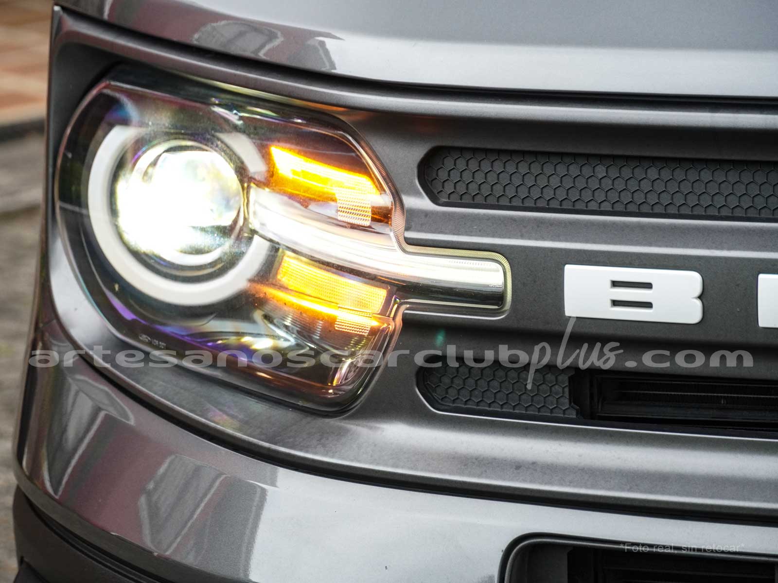 - Parrilla frontal con marco negro y malla negra con inscripción de gran formato BRONCO.