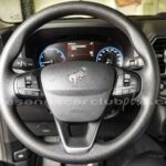 - Volante en piel negra con detalles en gris oscurecido.