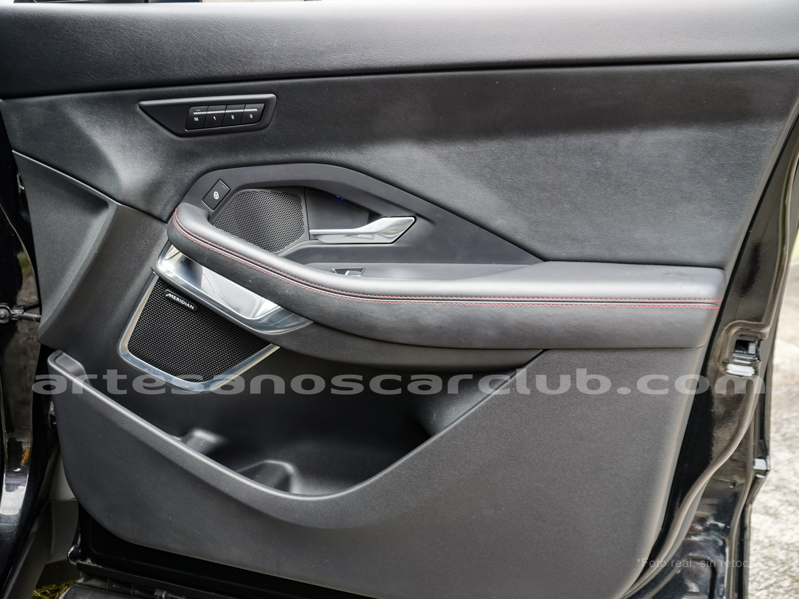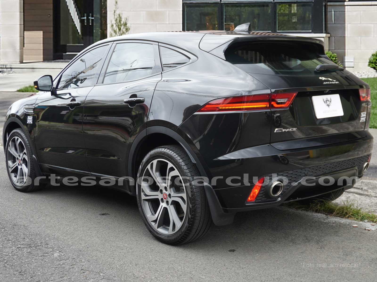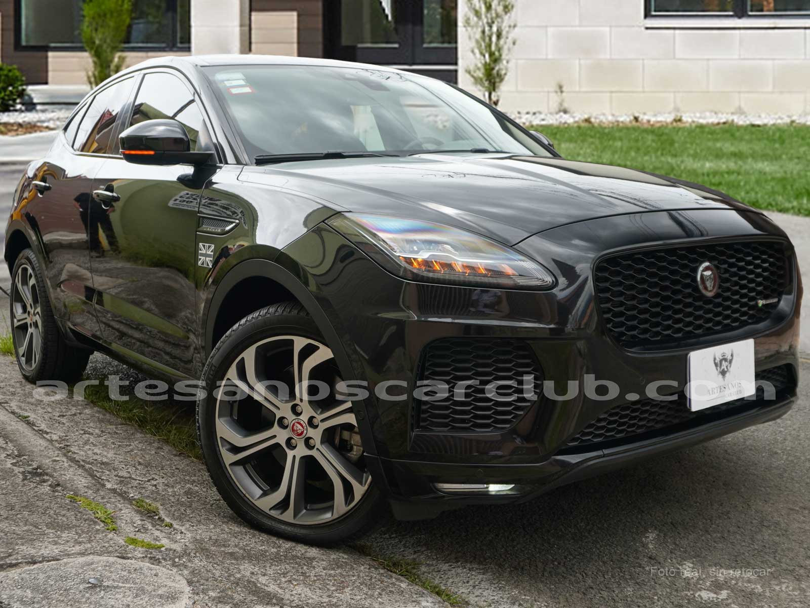 E PACE con paquete «R DYNAMIC»: Carrocería R-Dynamic (parachoques delantero único y rejilla delantera con acabado en negro brillante), Volante de cuero granulado y levas de cambio de marchas R-Dynamic, Tubos de escape dobles con acabados, Asientos de malla deportiva en Ebony con costuras de contraste, Faros antiniebla delanteros, Tomas de aire laterales en Satin Chrome, Rejilla en Gloss Black con contorno en Satin Chrome, Pedales de metal brillante, Revestimiento del techo en gamuza Ebony, recubrimiento de puertas en gamuza negra «Ebony».