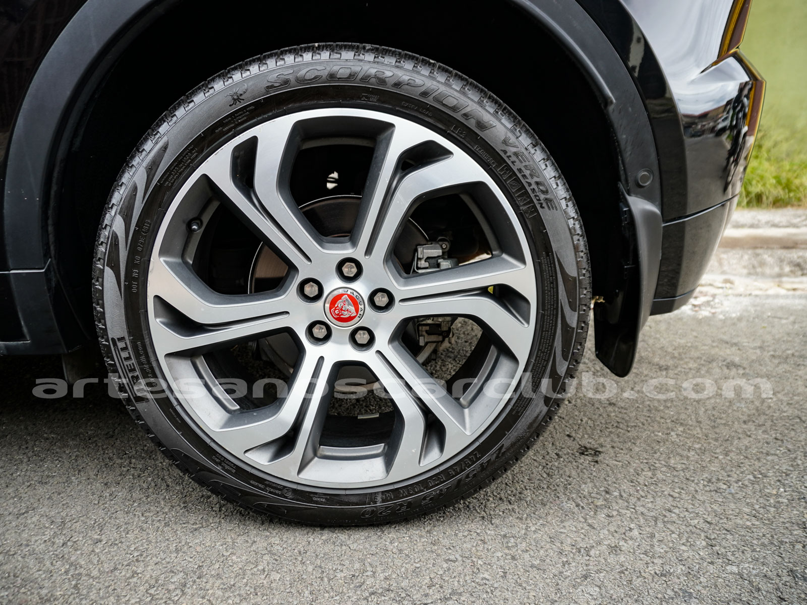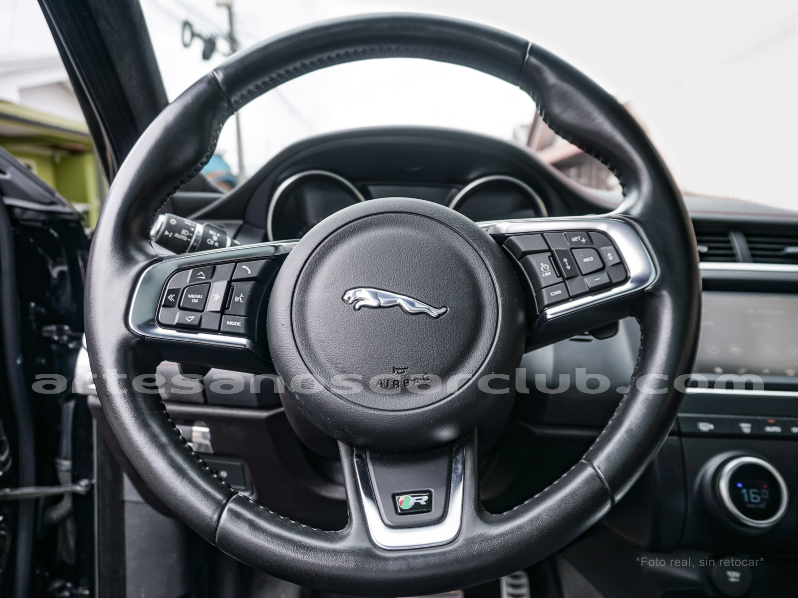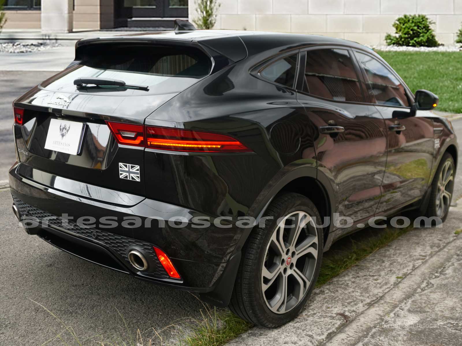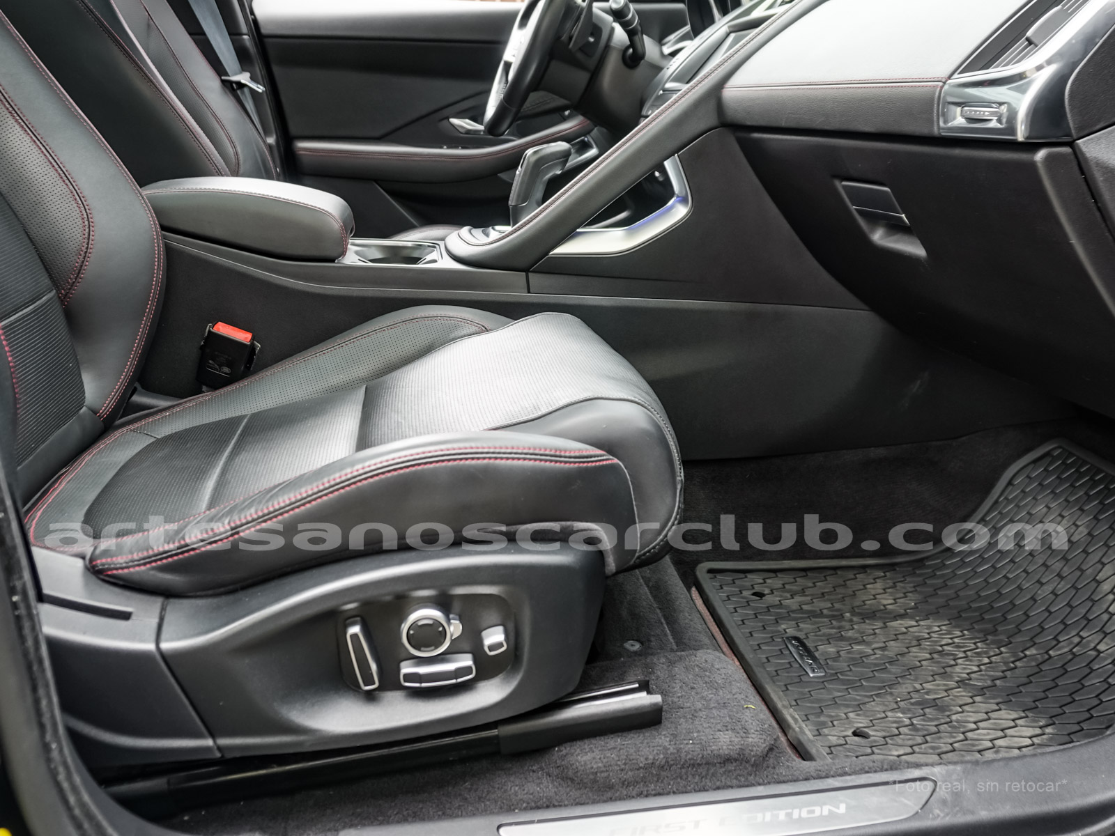 E PACE con paquete «R DYNAMIC»: Carrocería R-Dynamic (parachoques delantero único y rejilla delantera con acabado en negro brillante), Volante de cuero granulado y levas de cambio de marchas R-Dynamic, Tubos de escape dobles con acabados, Asientos de malla deportiva en Ebony con costuras de contraste, Faros antiniebla delanteros, Tomas de aire laterales en Satin Chrome, Rejilla en Gloss Black con contorno en Satin Chrome, Pedales de metal brillante, Revestimiento del techo en gamuza Ebony, recubrimiento de puertas en gamuza negra «Ebony».