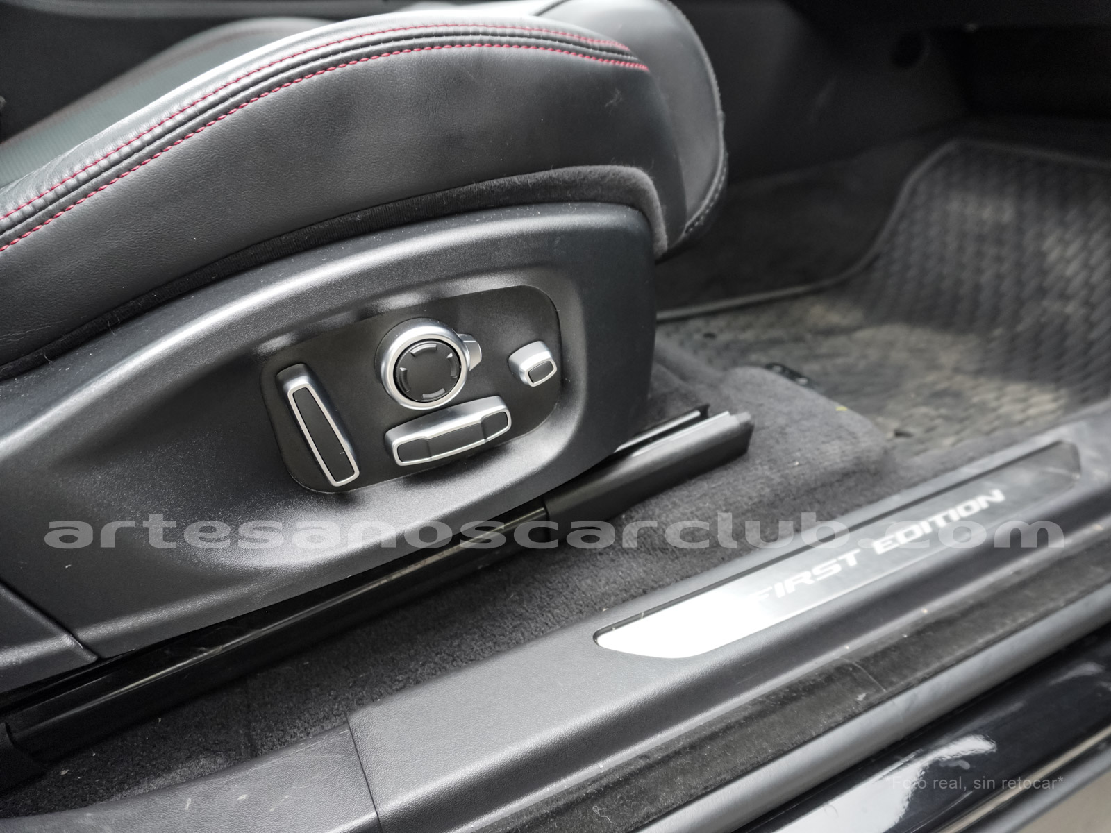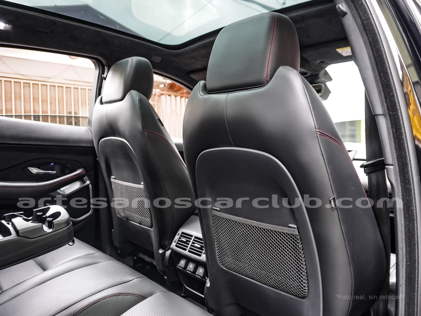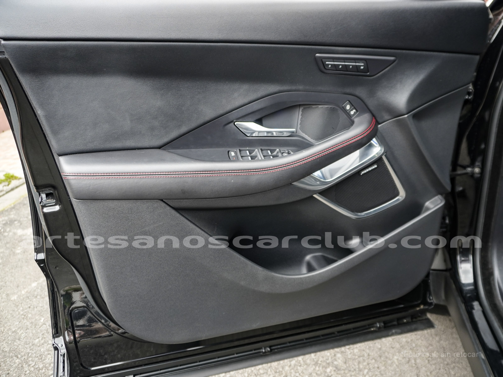 Paquete FIRST EDITION: (todas las características del R DYNAMIC +) Aros de aleación de 20″ con 6 rayos dobles «Style 6014» con un acabado en Satin Grey Diamond Turned, Black Pack, sillas en piel «Windsor» en Ebony con costuras dobles en rojo «Flame Red», interior de techo en gamuza negra, sistema de pantalla central de visión ampliada, iluminación ambiente interior configurable, rieles de almacenamiento del espacio de carga con conjunto de retención de equipaje, tomas de alimentación adicionales, pantalla frontal, pulsera de acceso remoto, puerta trasera accionada por movimiento, acceso sin llave.