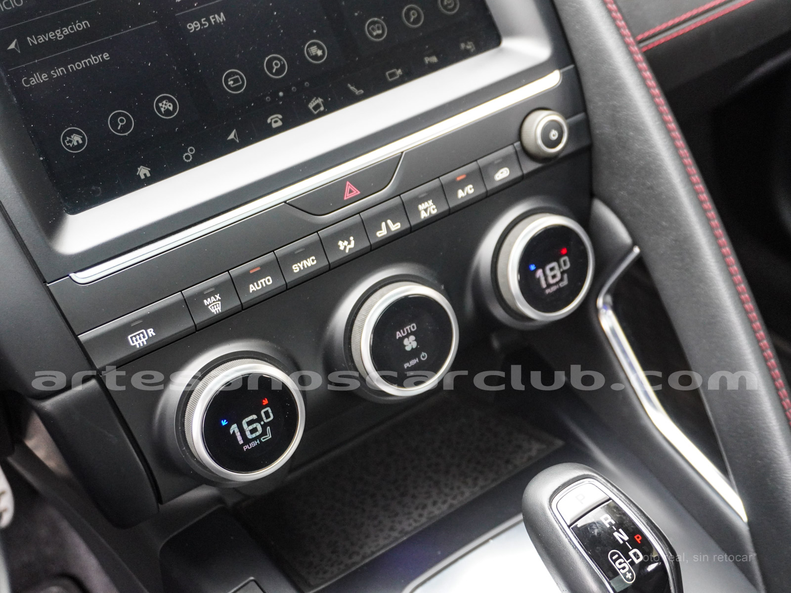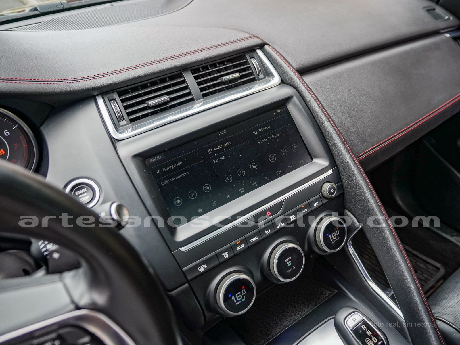 Sutil huella de Jaguar en el compartimento portaobjetos y en la consola central.