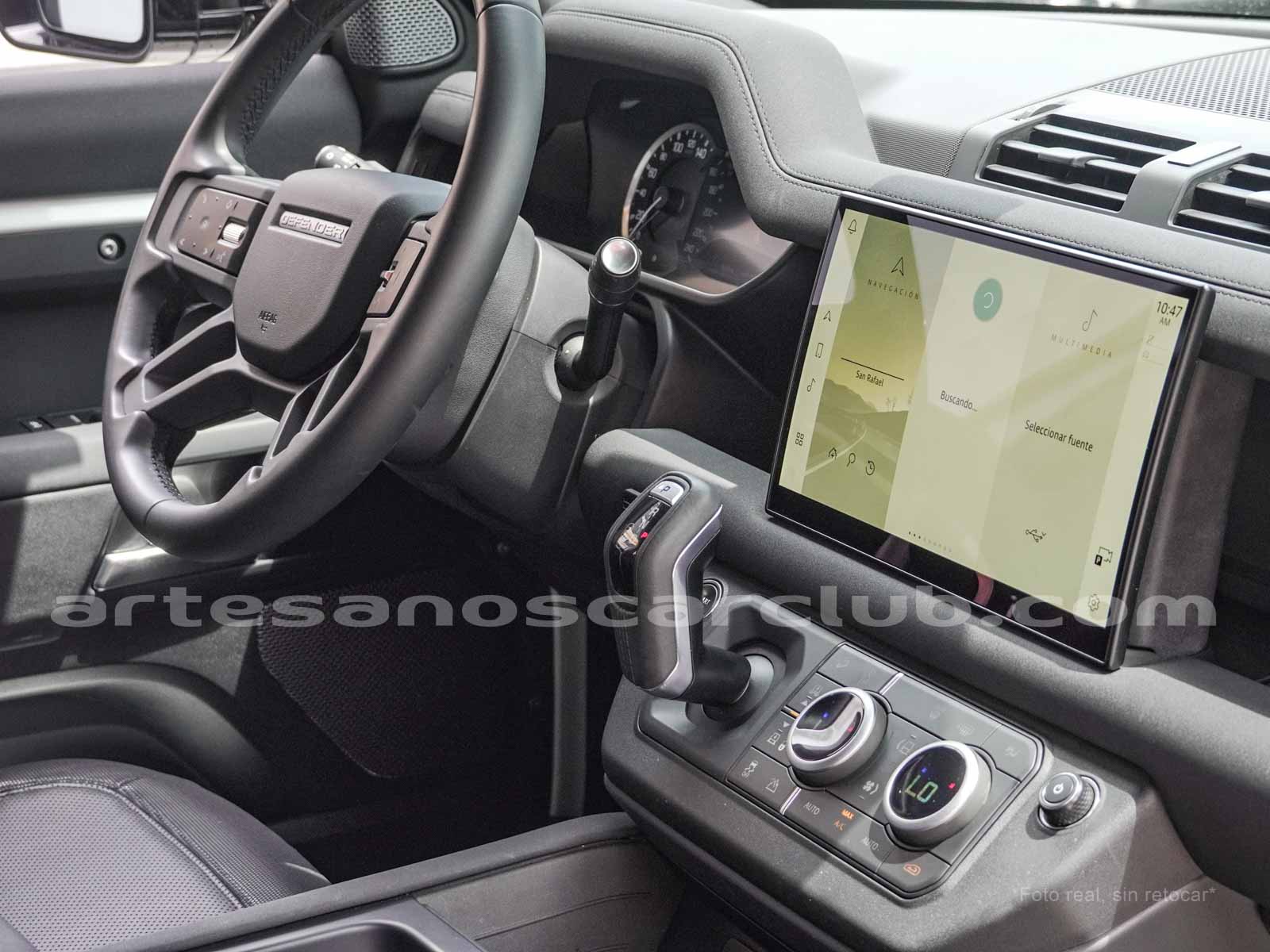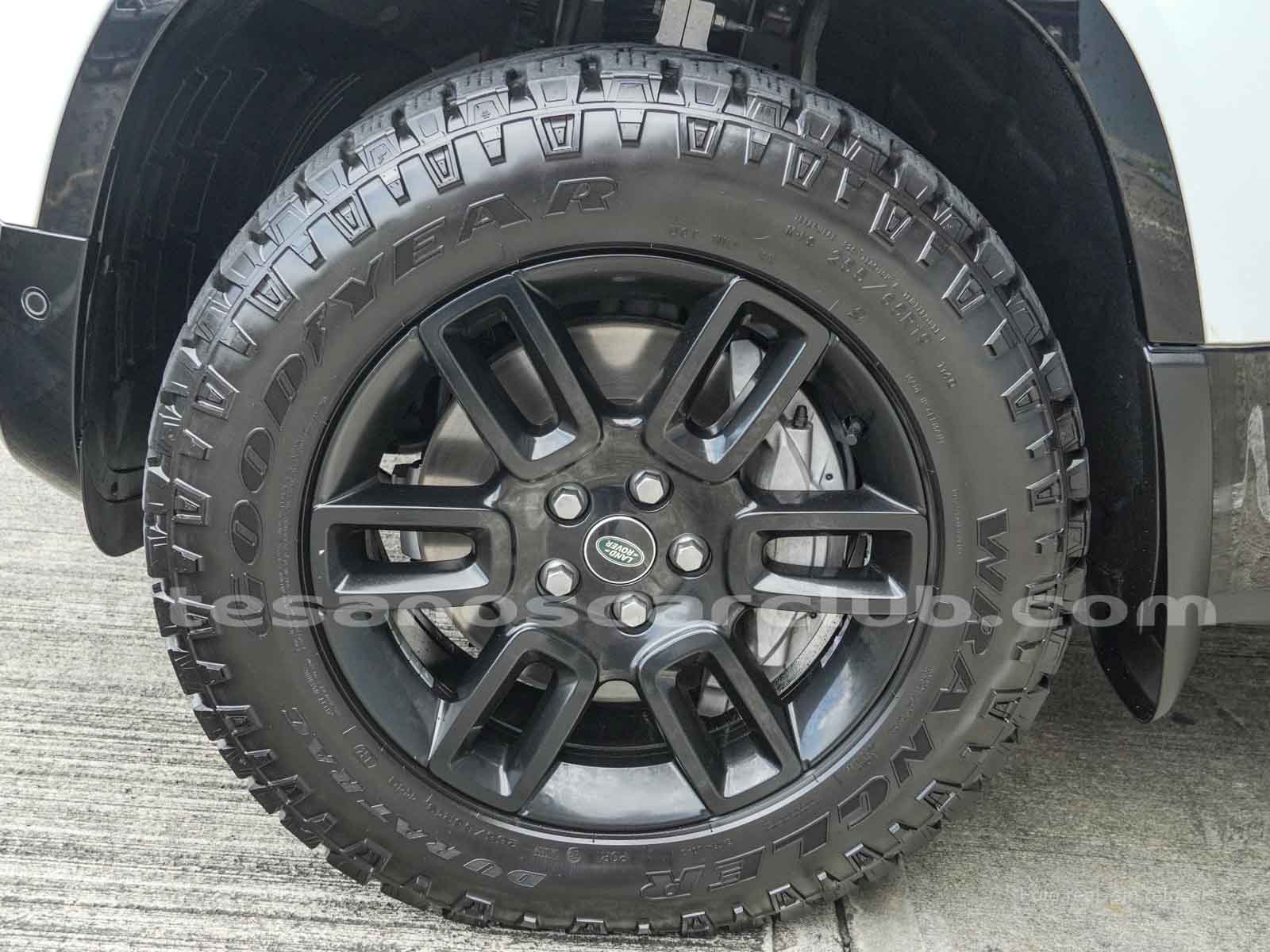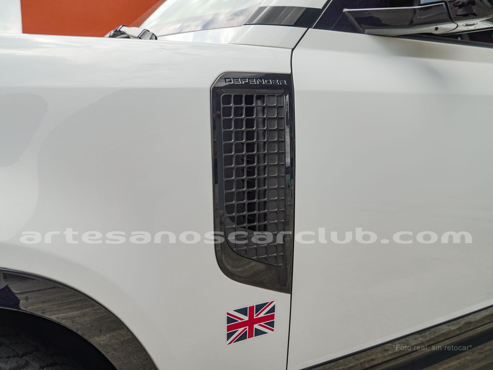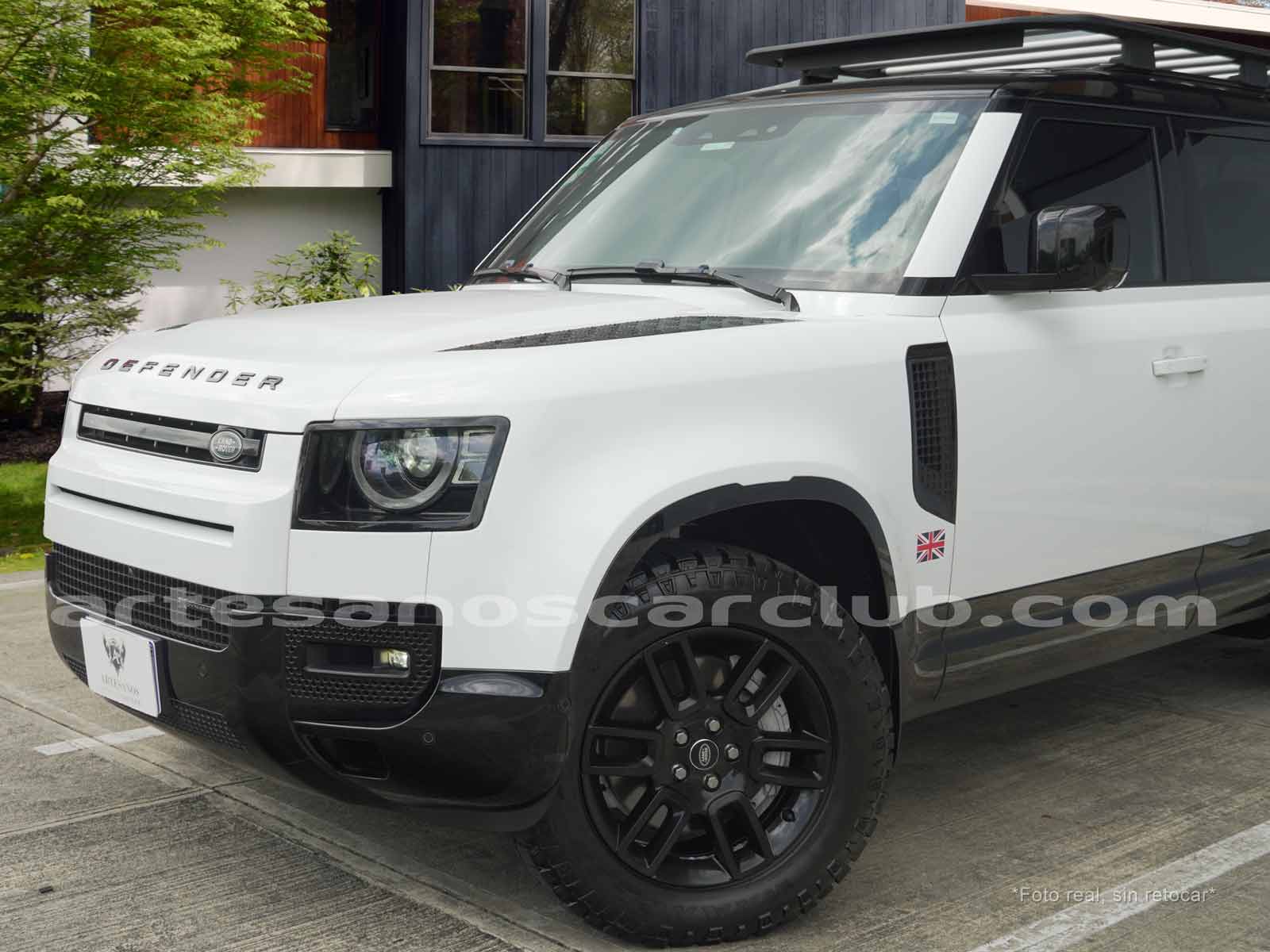Branquias laterales de guardabarros en negro, e inscripción DEFENDER.