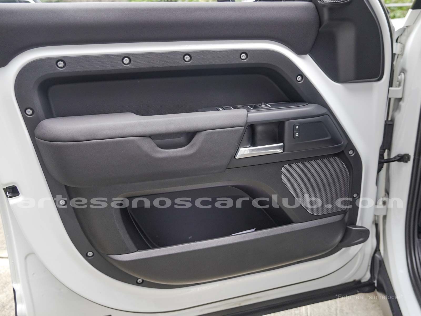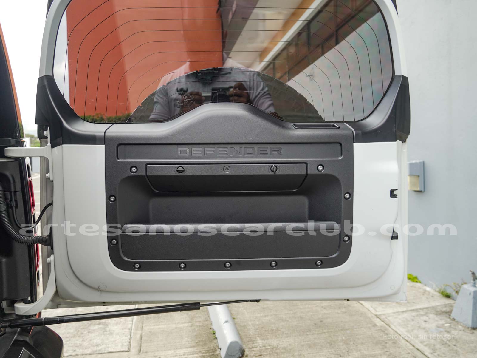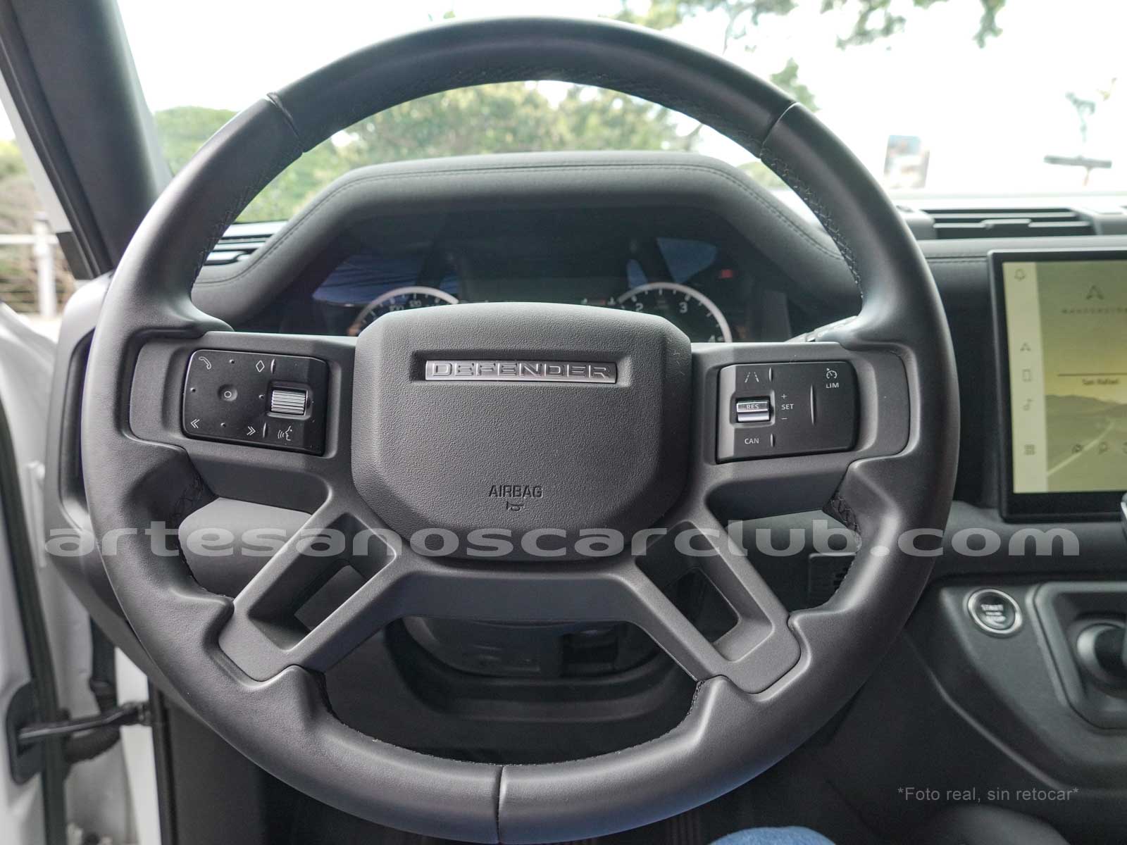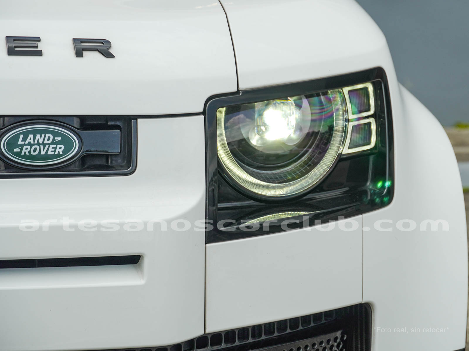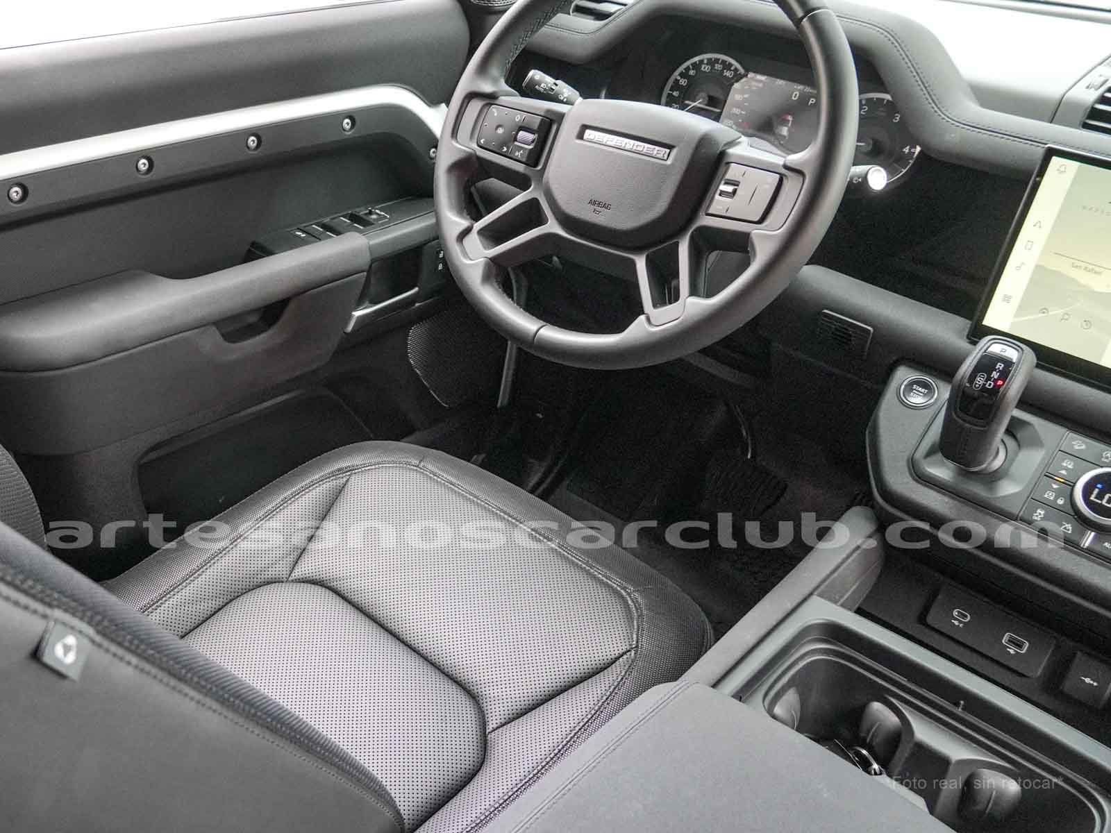 Branquias laterales de guardabarros en negro, e inscripción DEFENDER.