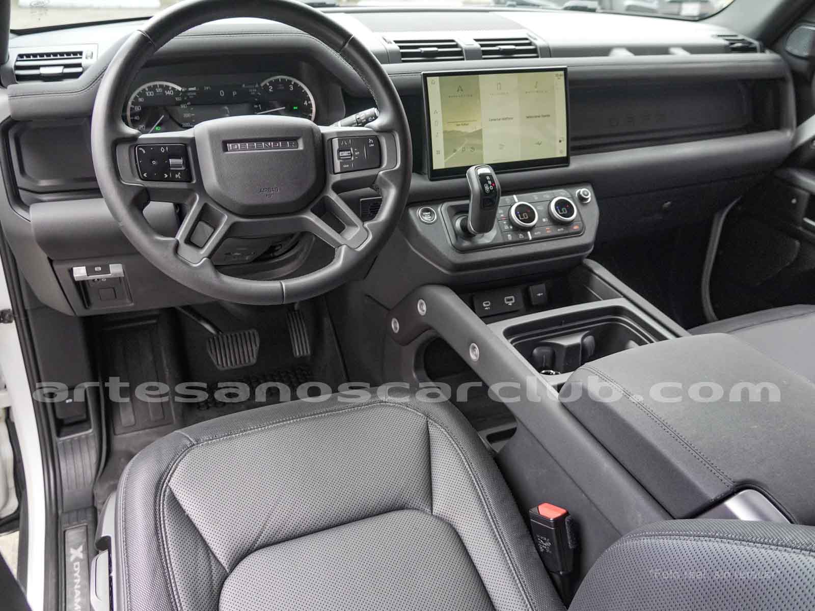 Molduras de ingreso a cabina en acero con inscripción DEFENDER retroiluminada X Dynamic.