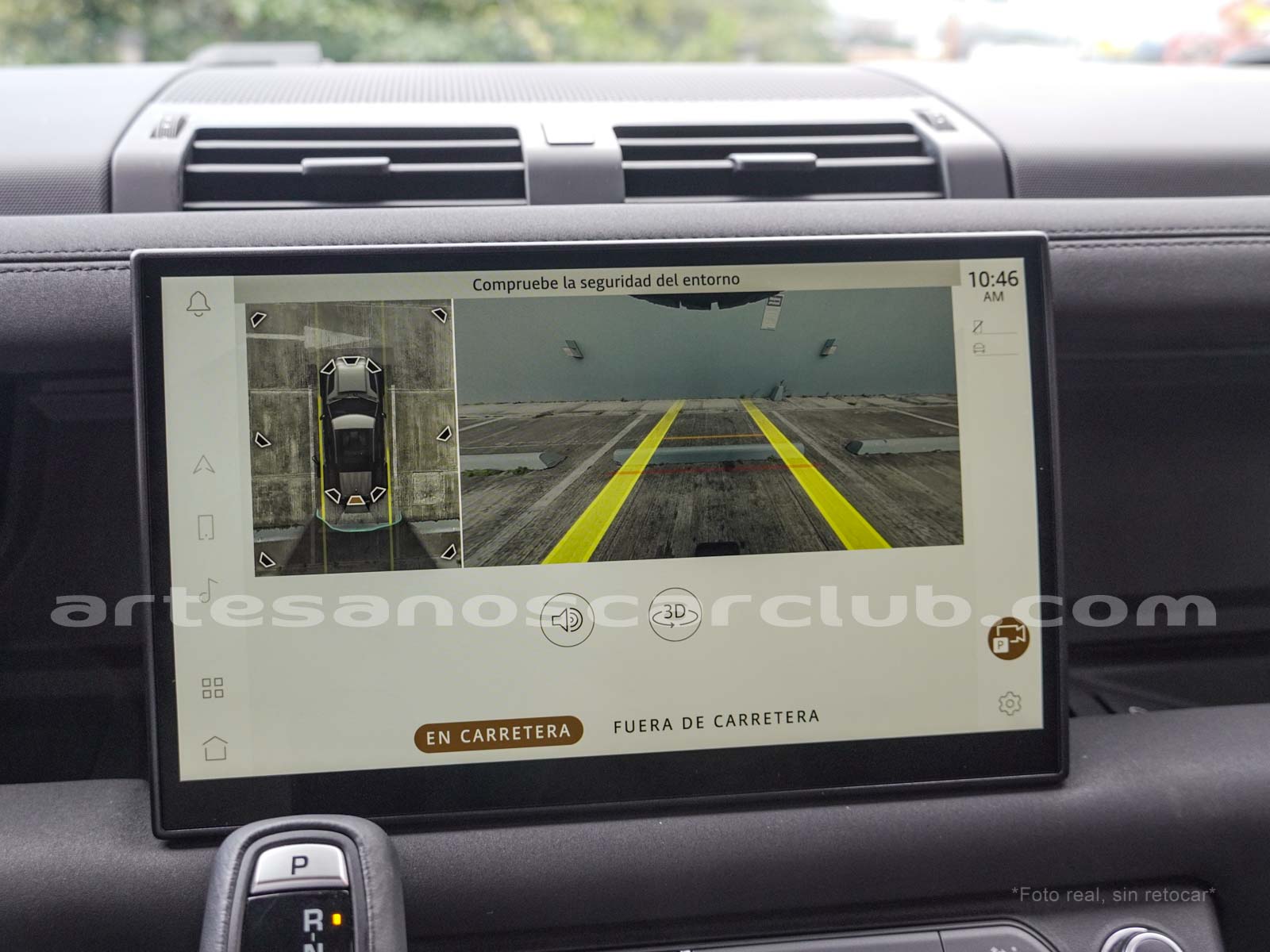 Cámara para reversa 3D – 360° con escogencia manual de múltiples ángulos y sistema de piso de cristal, incluye guías de dirección).